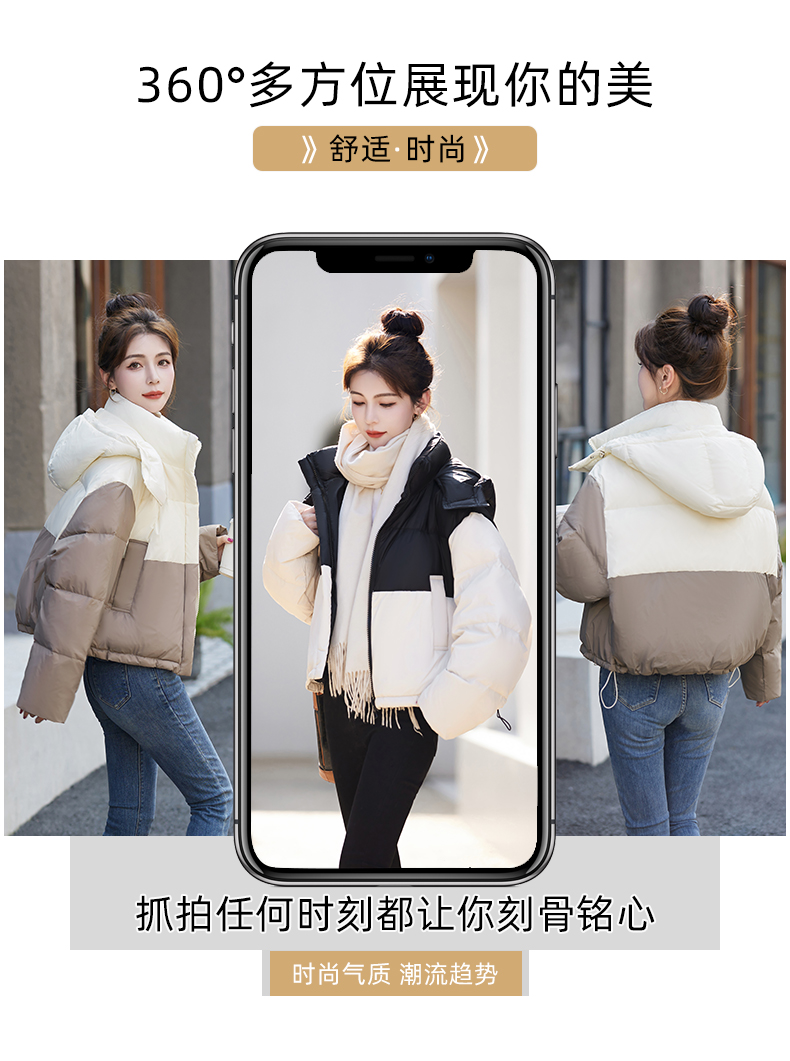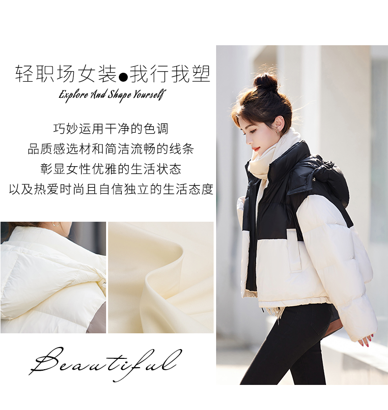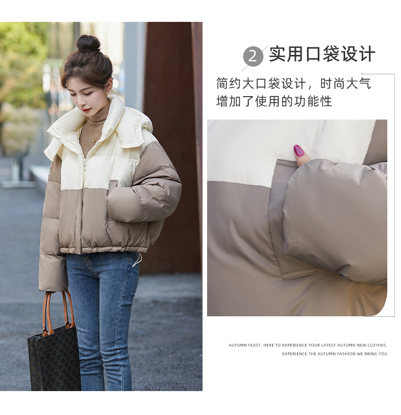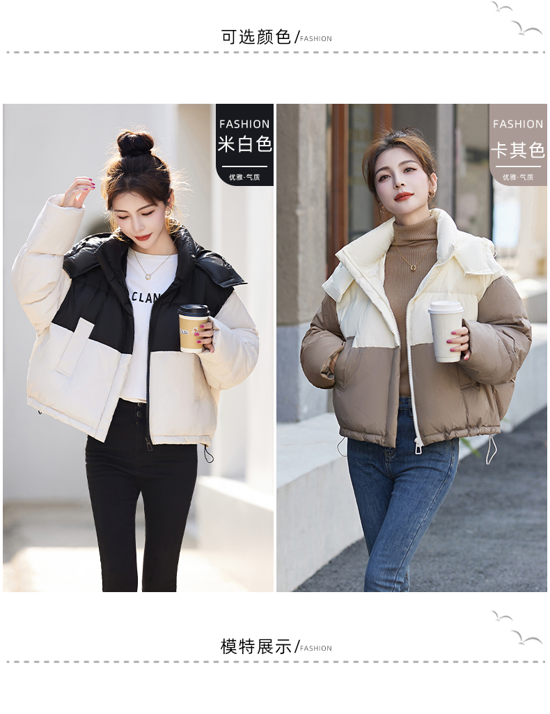 冬季新款,女装时尚休闲拼接撞色冬季保暖外套HR-GJC8217