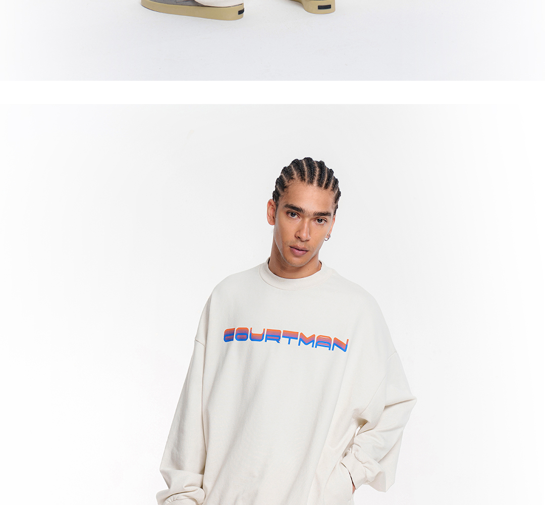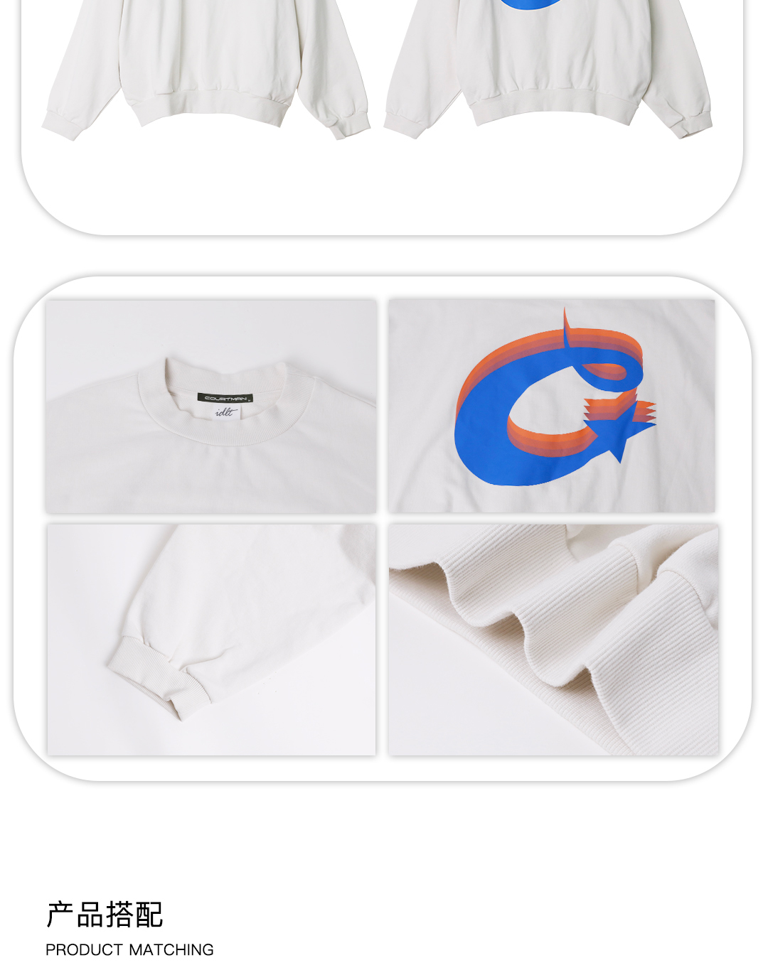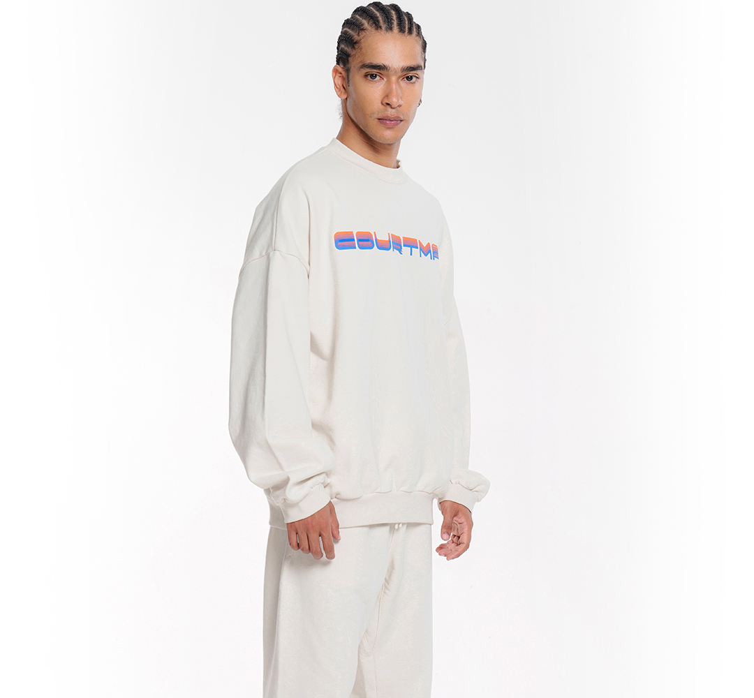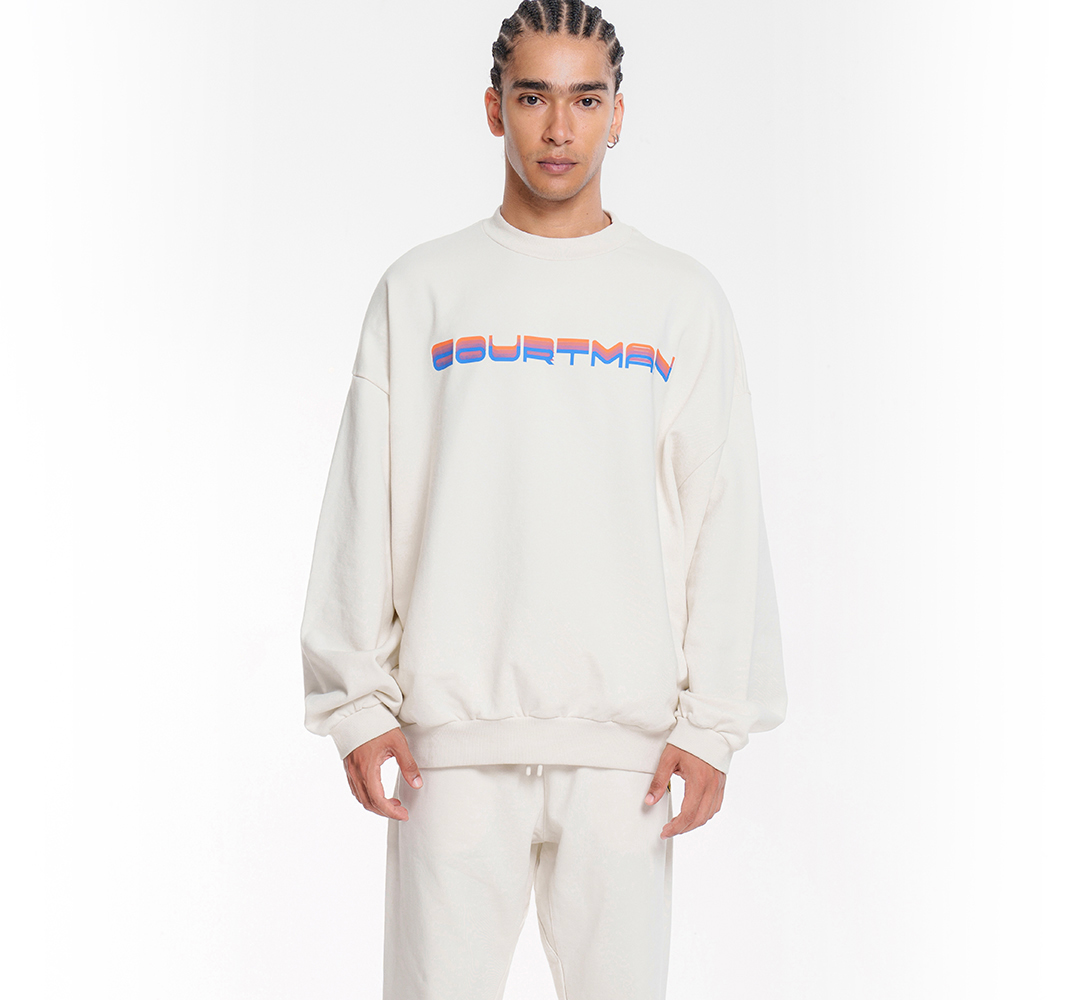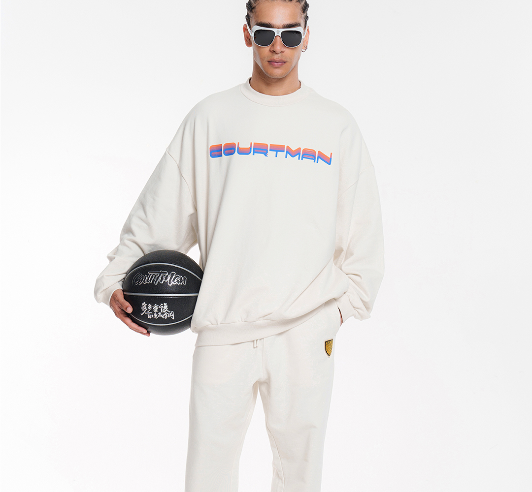 COURTMAN野球帝 叠影logo印花卫衣日潮男女宽松圆领运动外套上衣