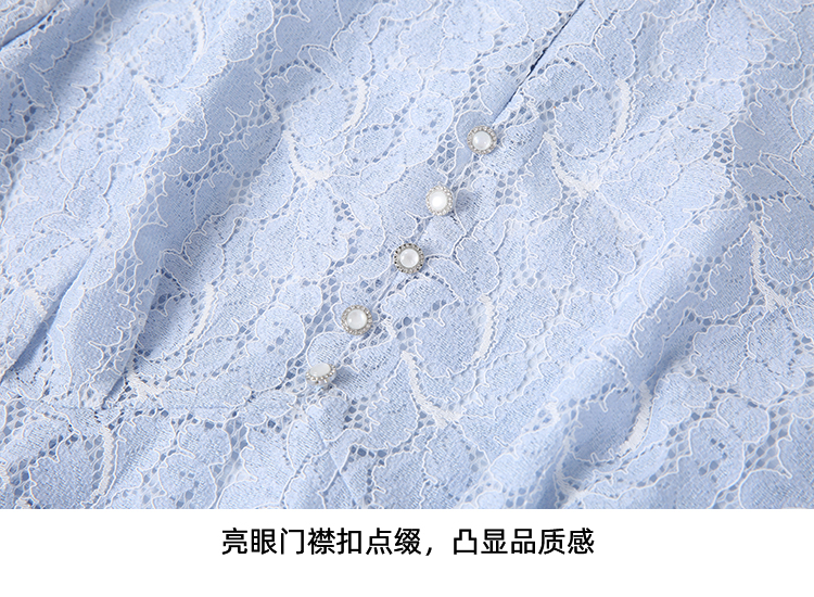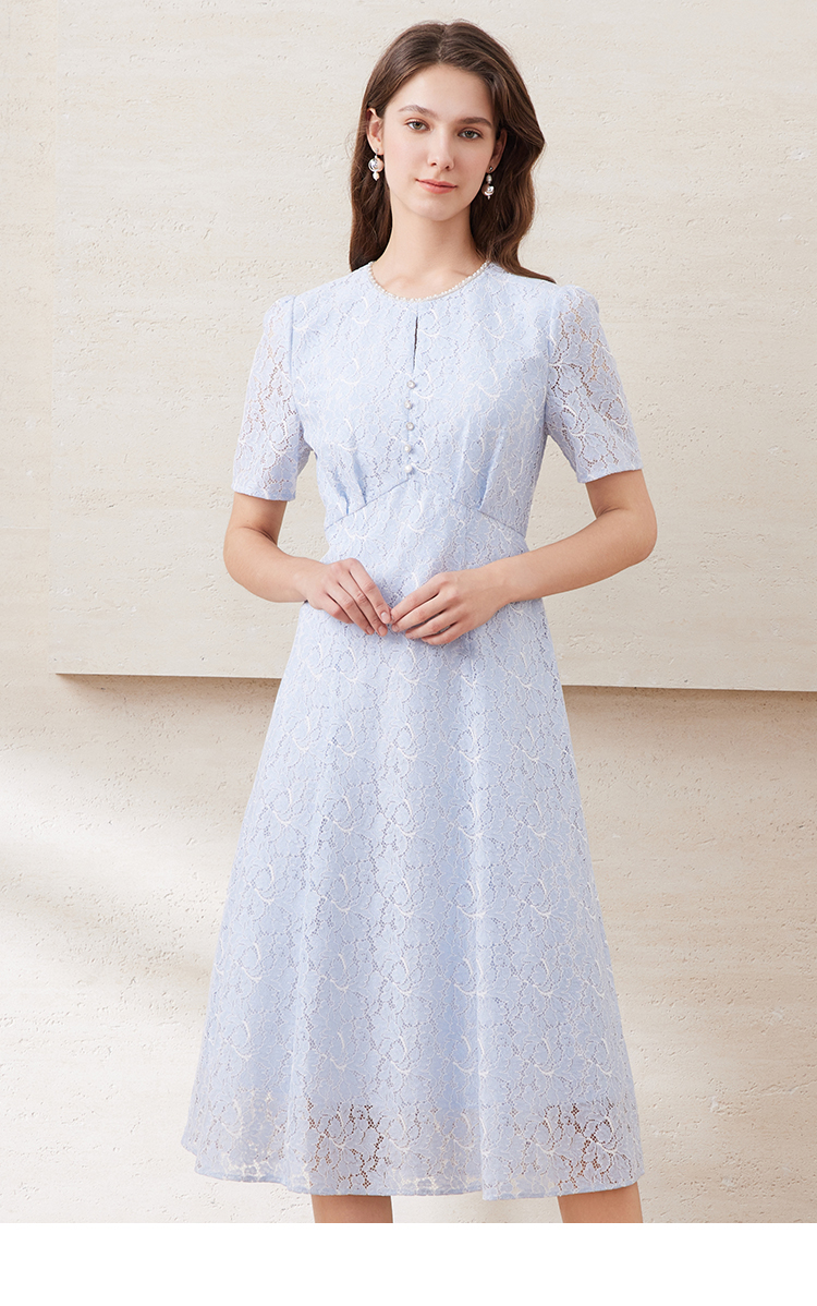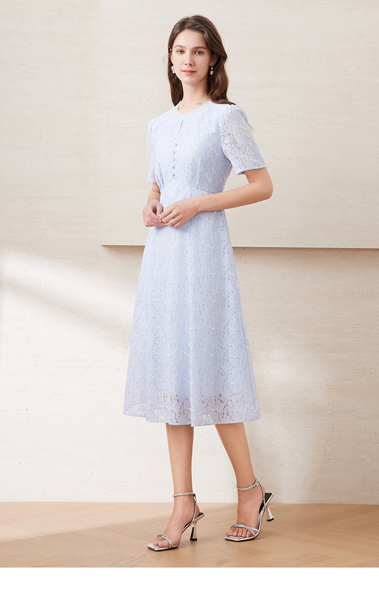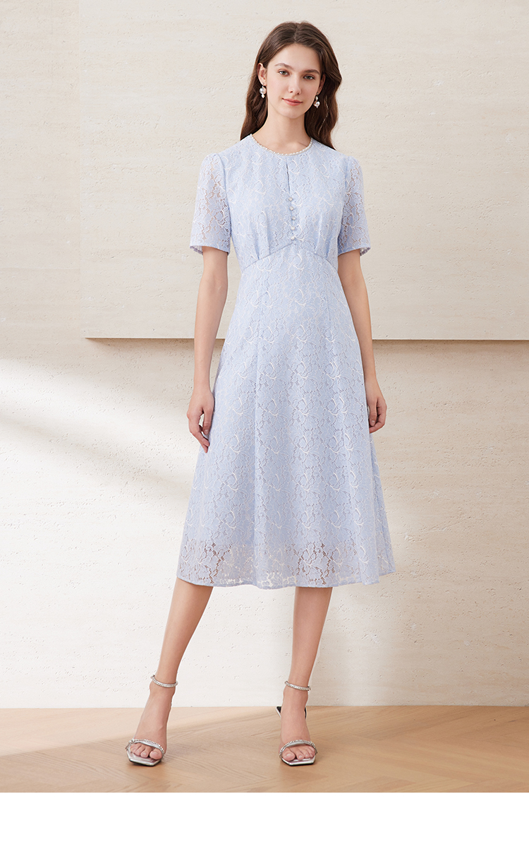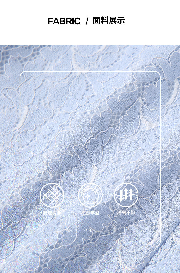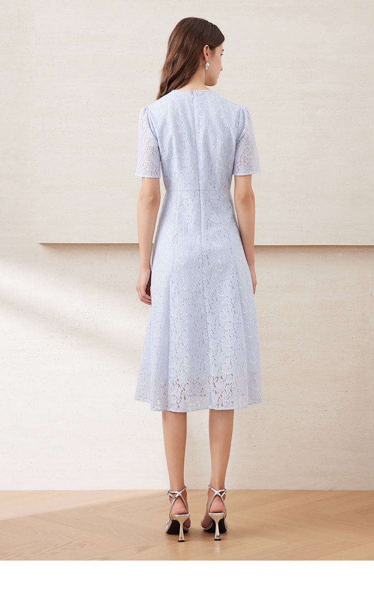 EITIE爱特爱浅蓝色丝绒绣花重工蕾丝收腰显瘦连衣裙2025夏季新款B2507630