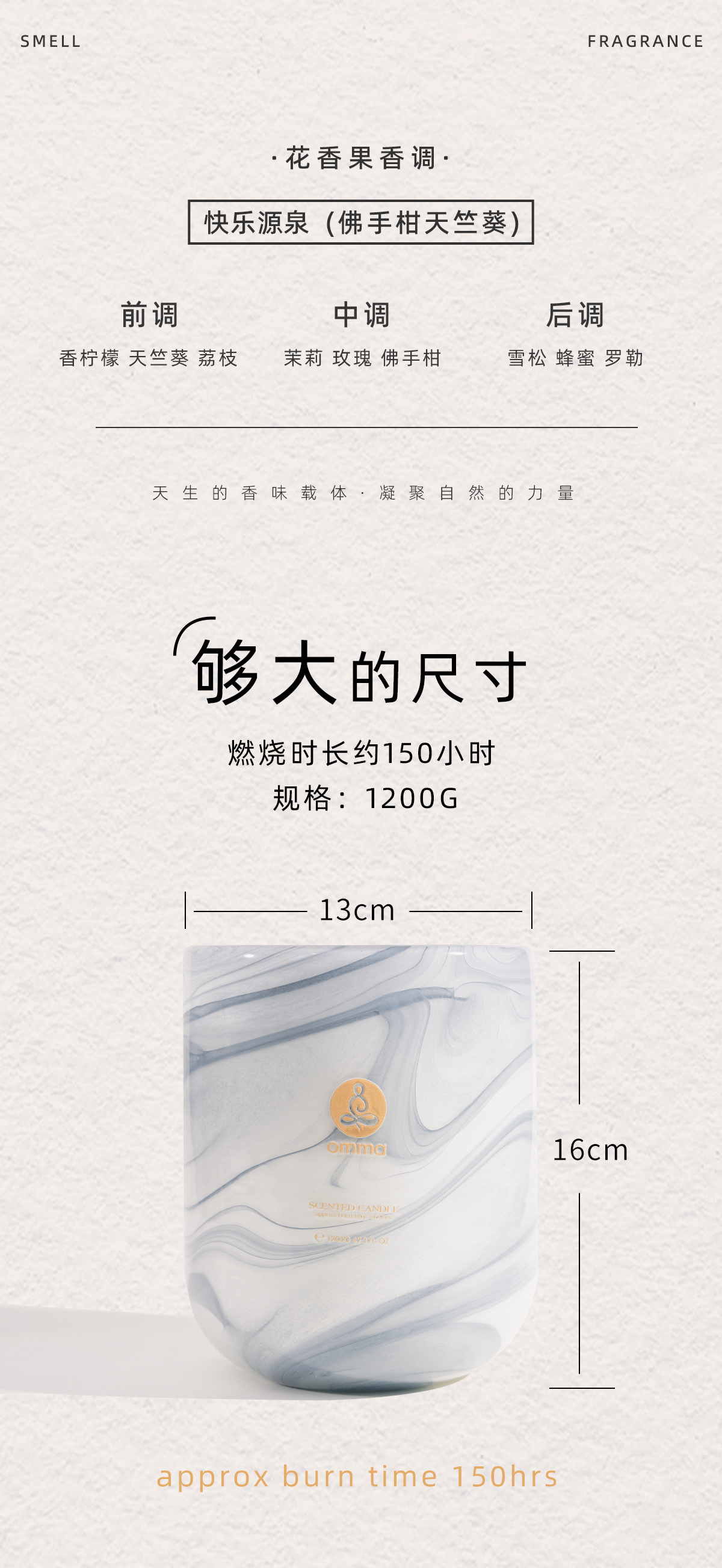 omma香氛限定系列-1200G超大香氛快乐源泉佛手柑天竺葵