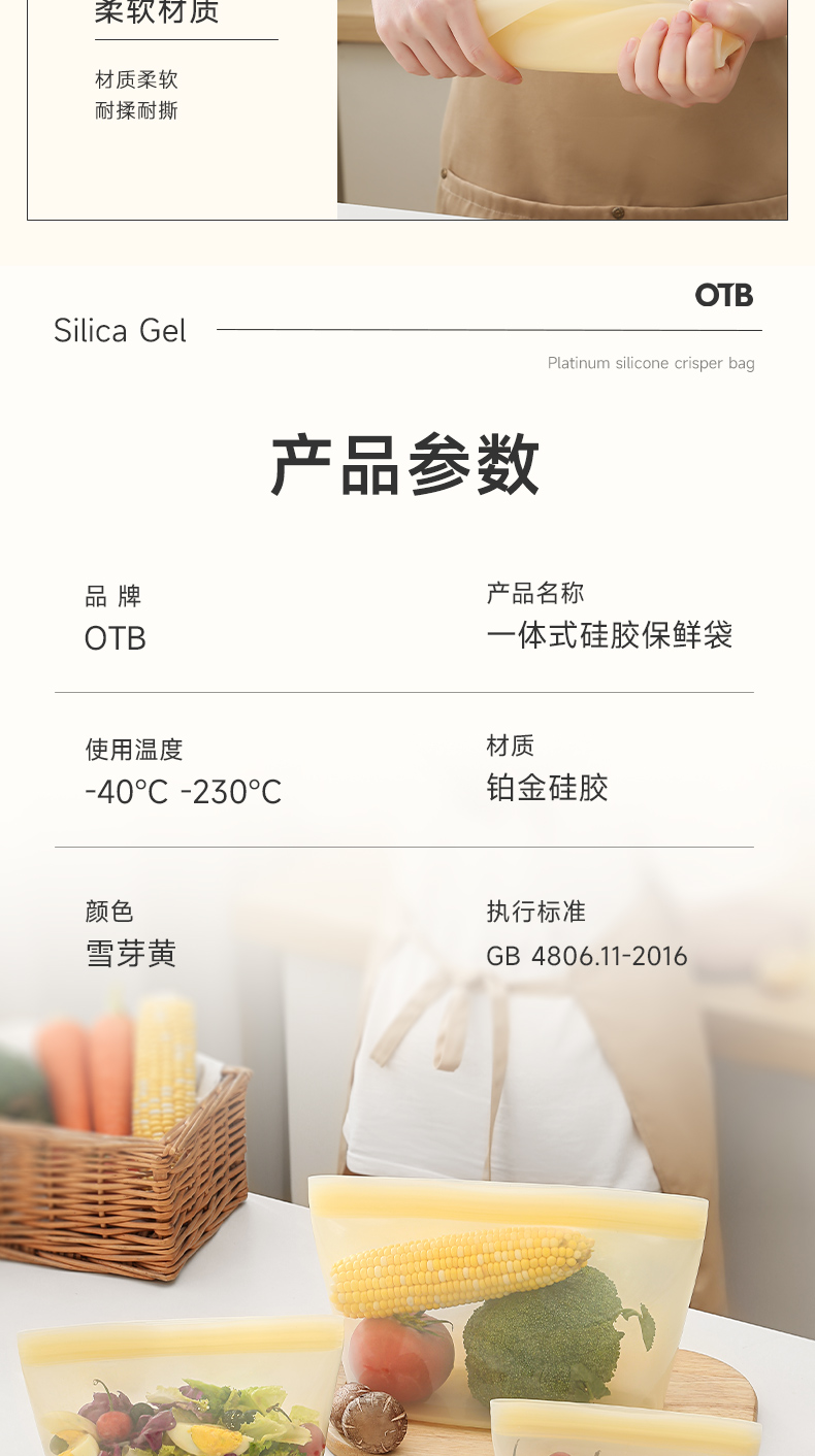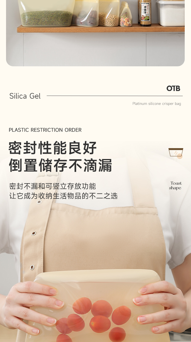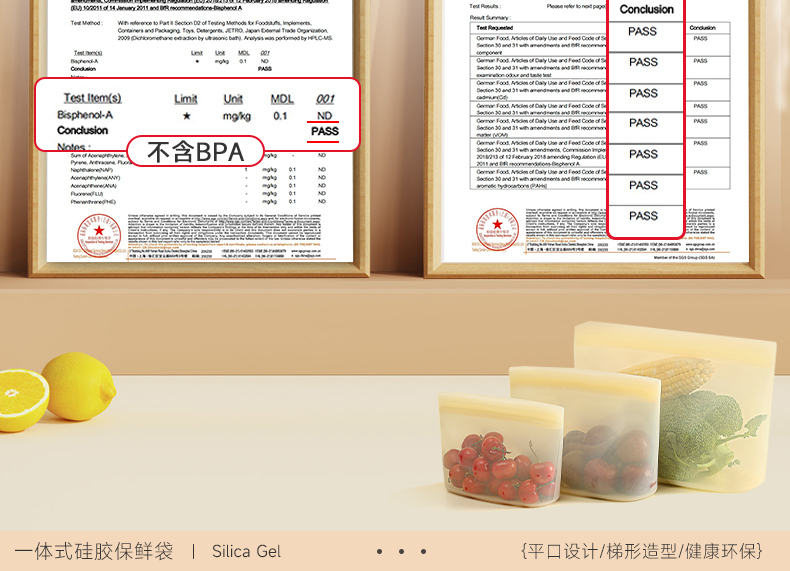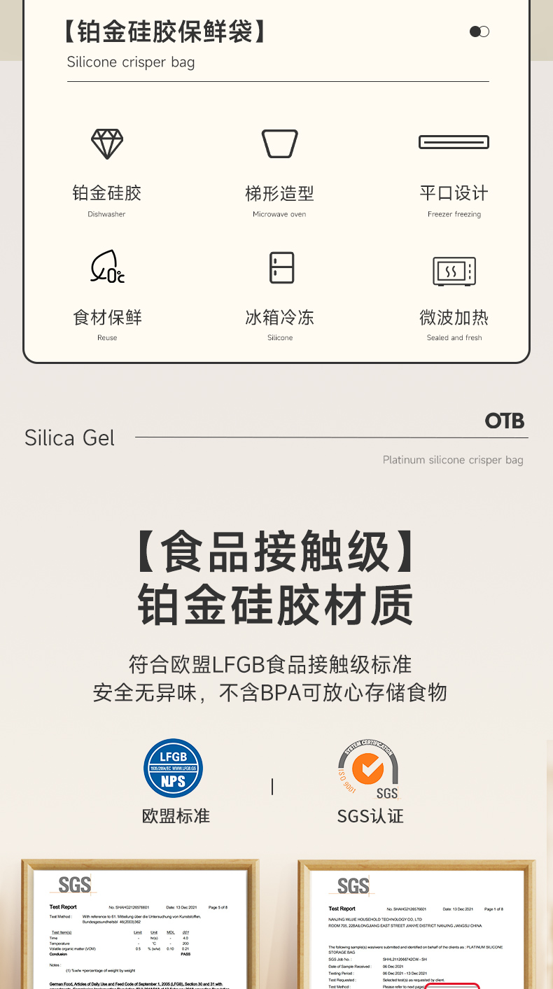 OTB铂金硅胶袋封口保鲜袋 德国LFGB食品接触标准认证
