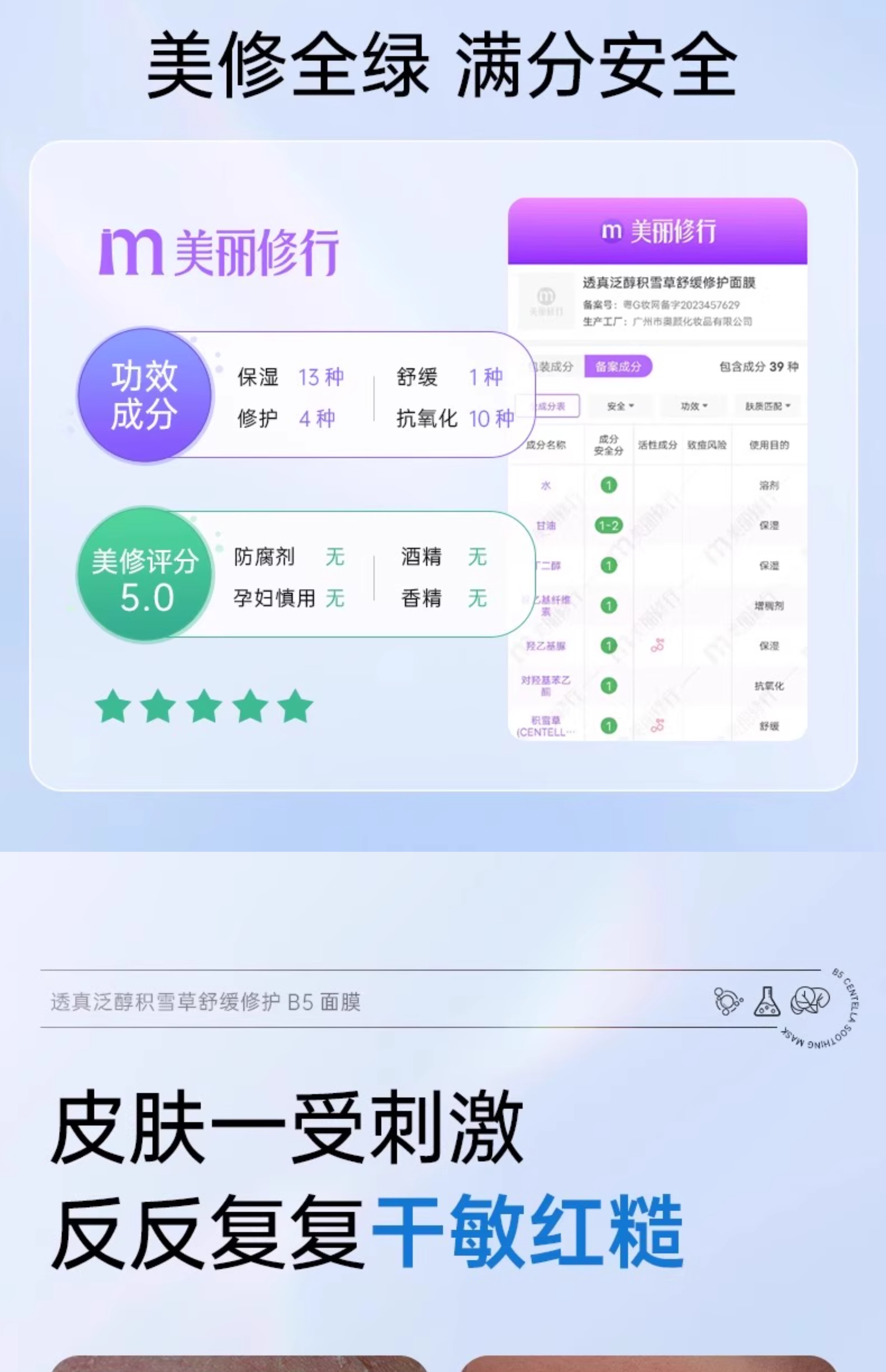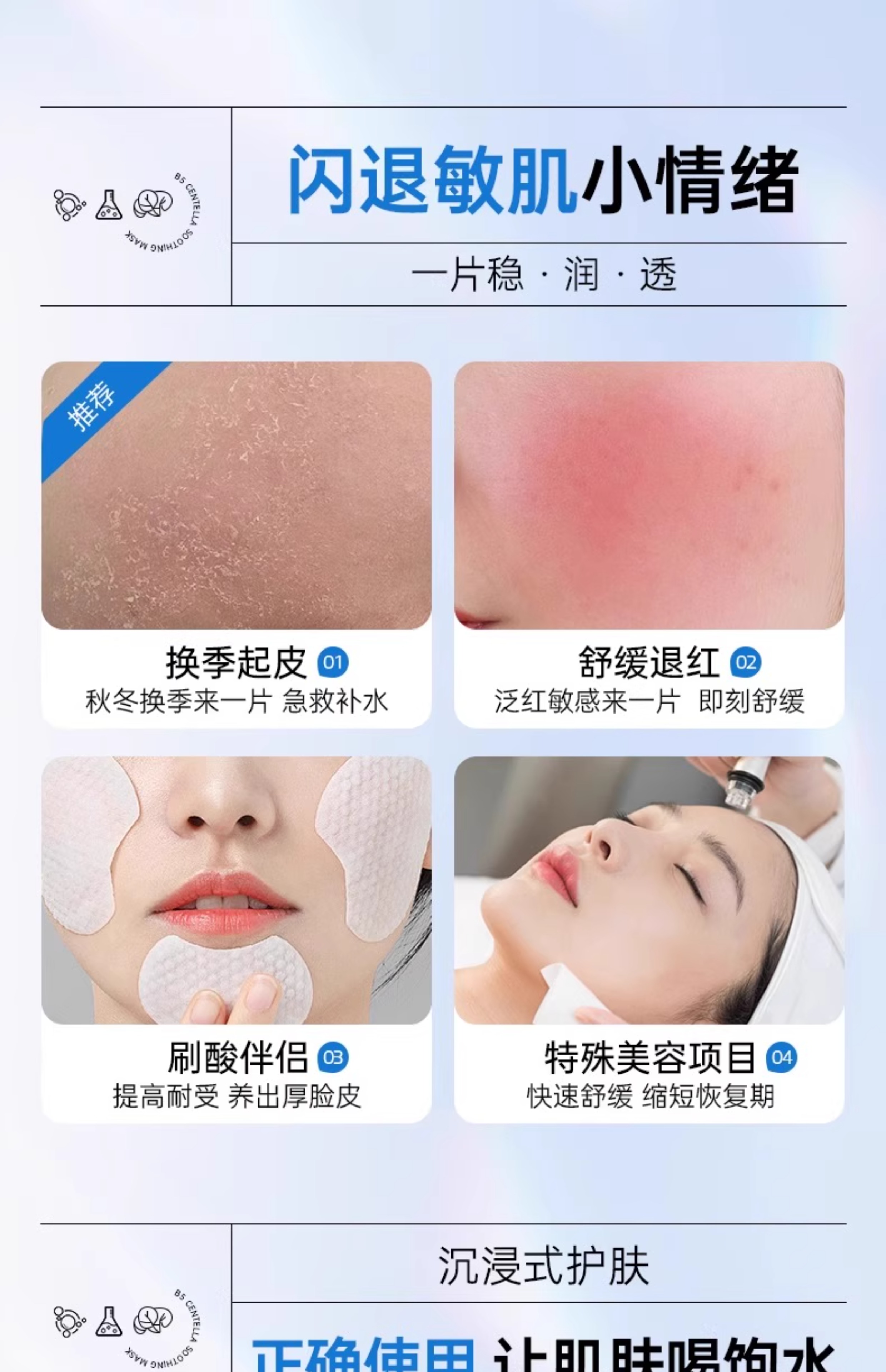 【ko干敏红】透真泛醇积雪草舒缓修护面膜10片