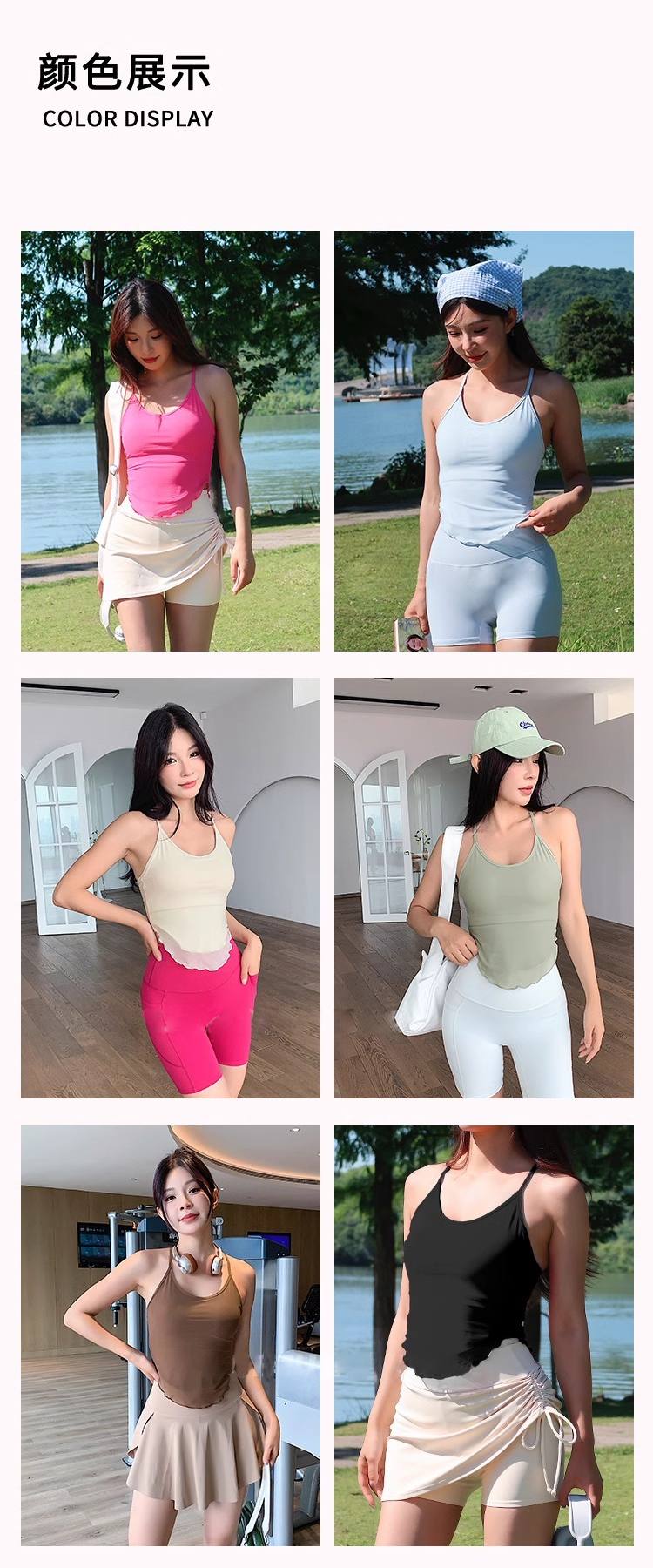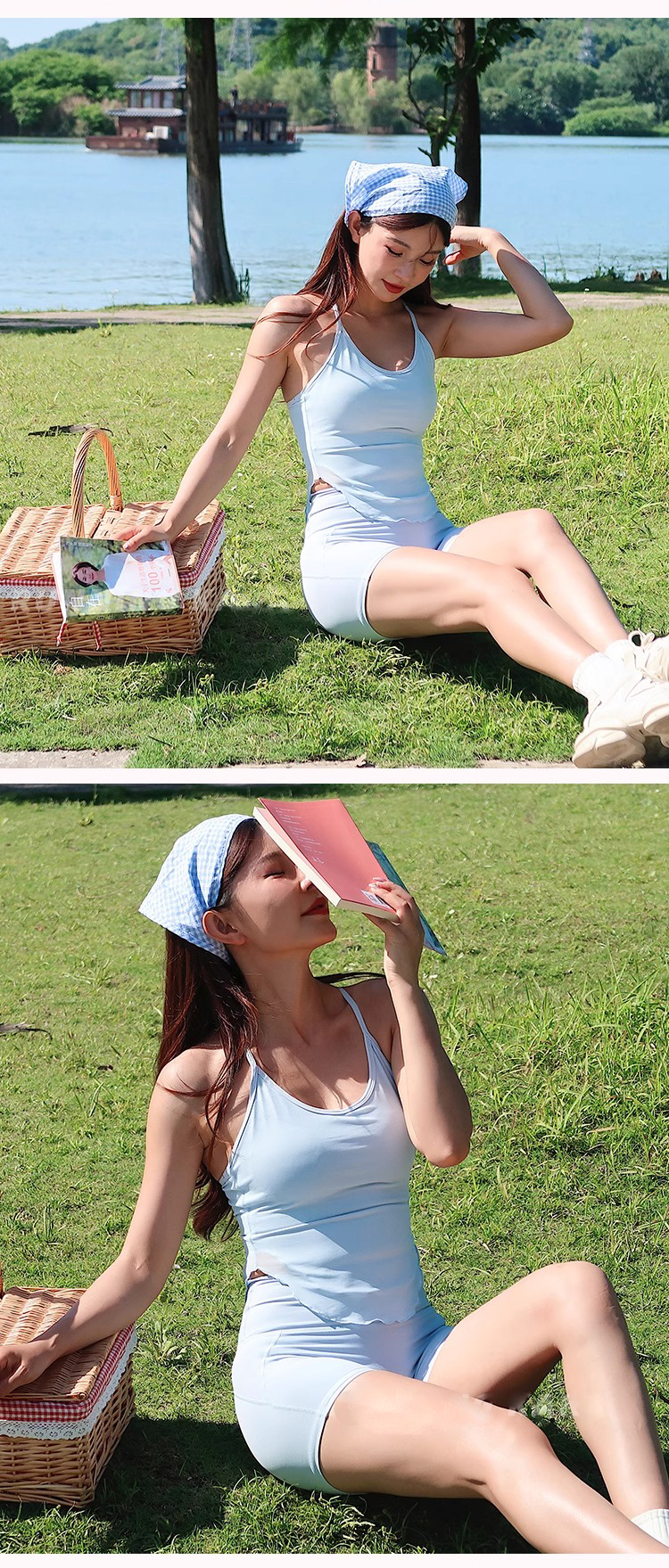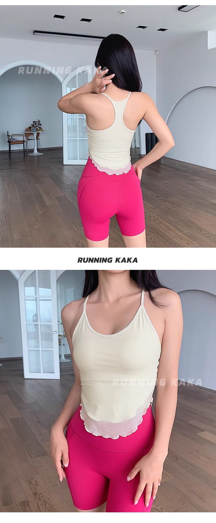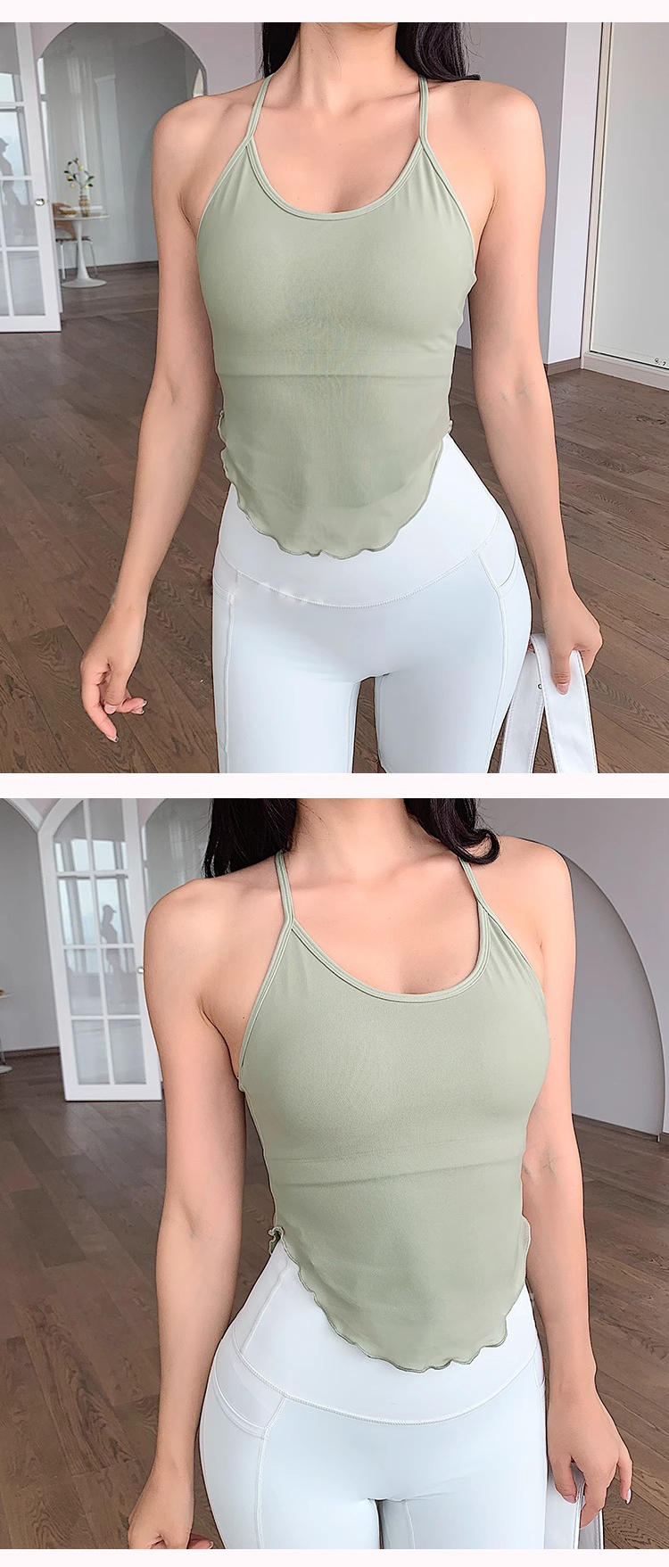 跃牌【禅语梵心】 新运动拼纱背心固定杯瑜伽上衣WX2723