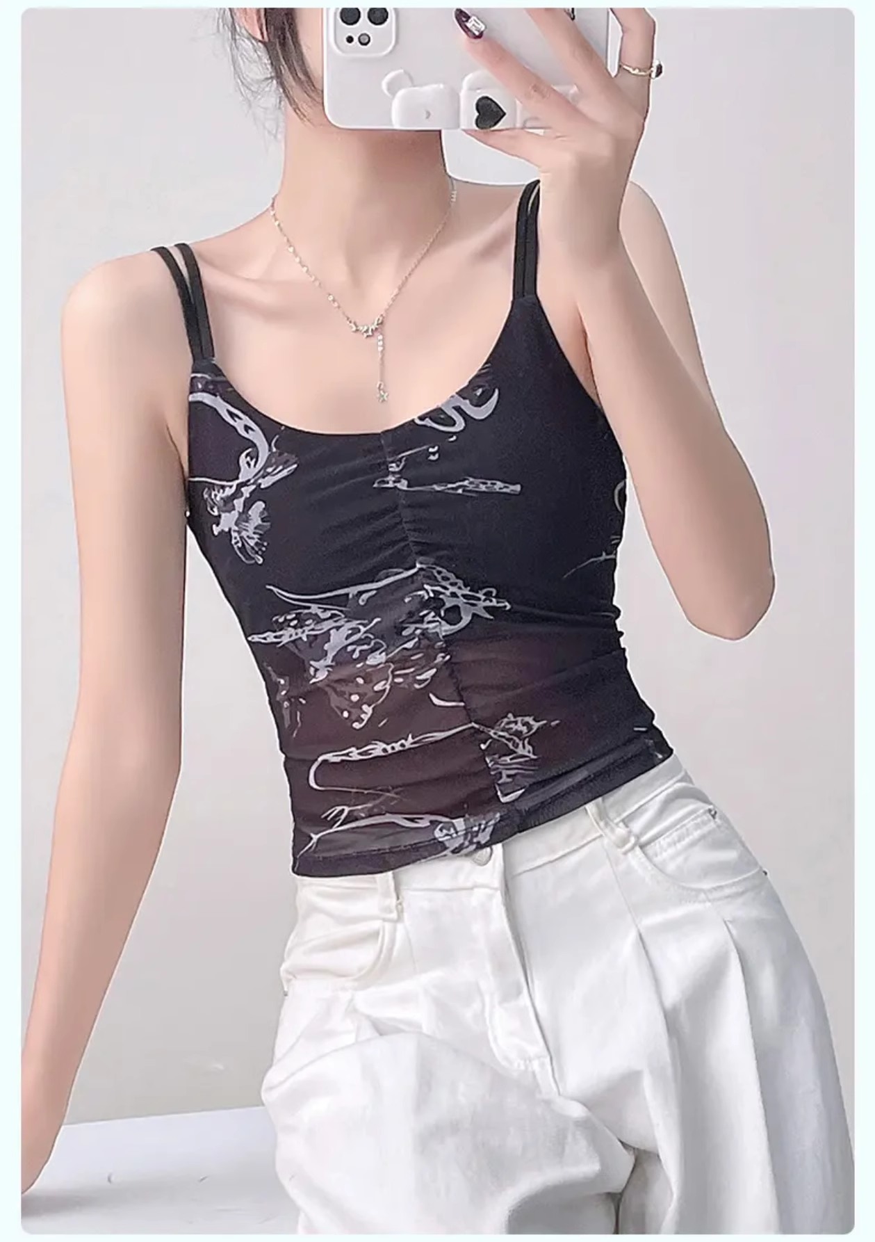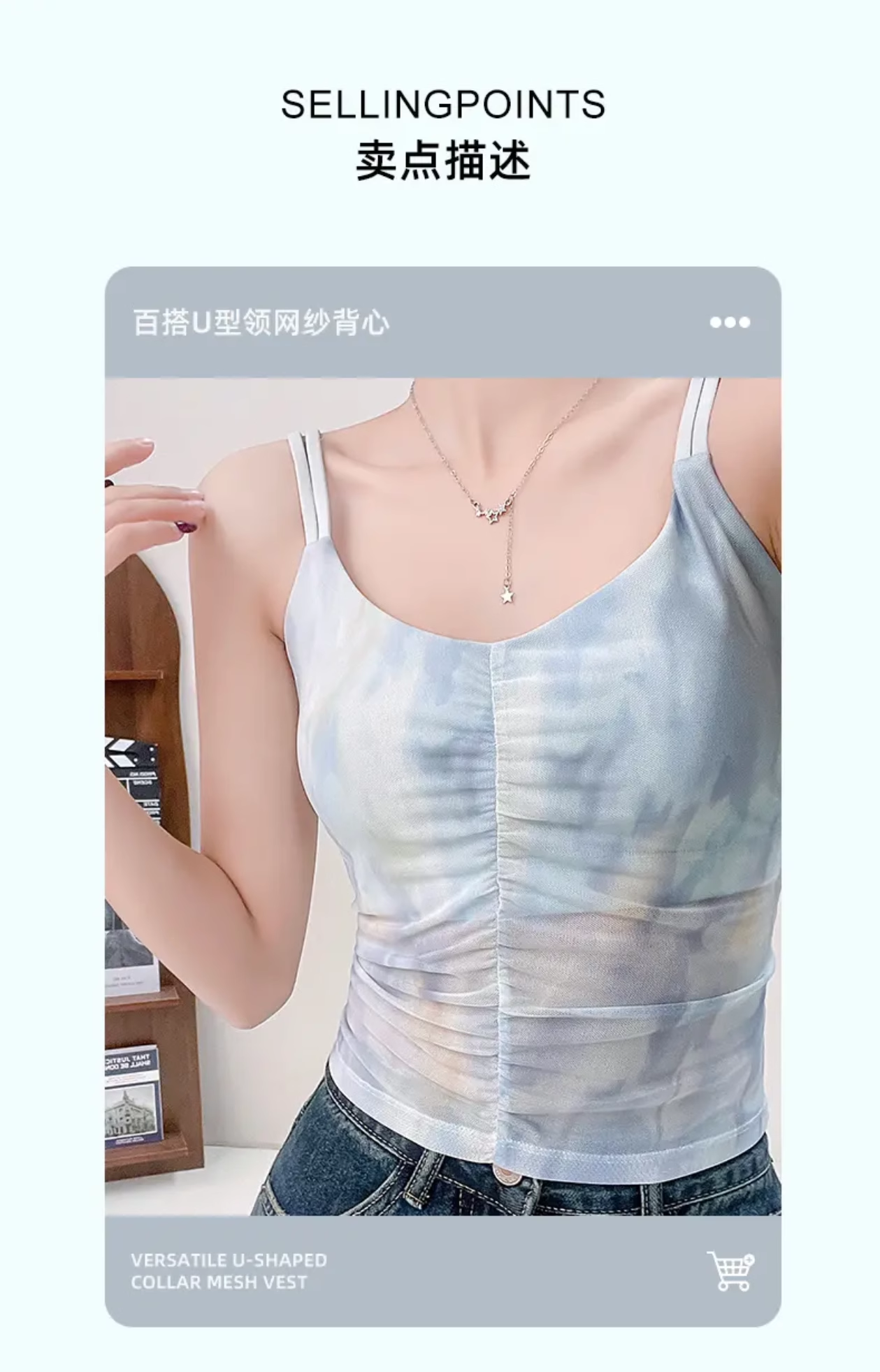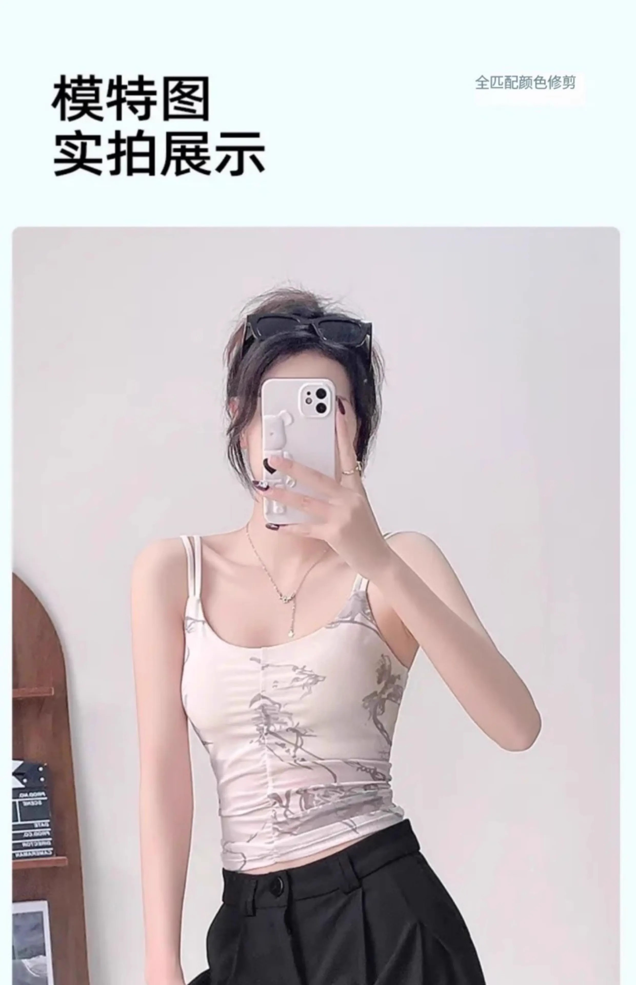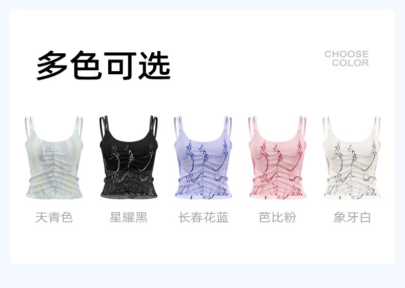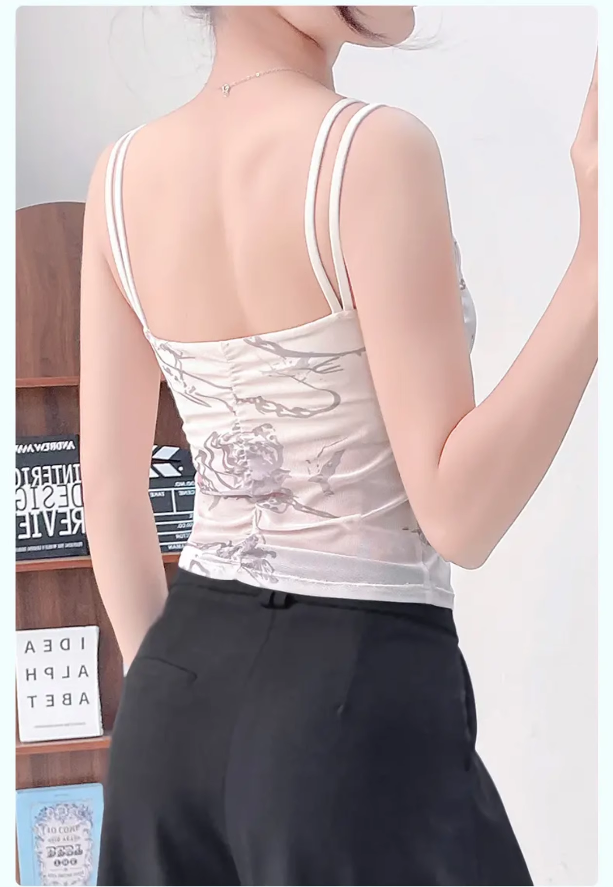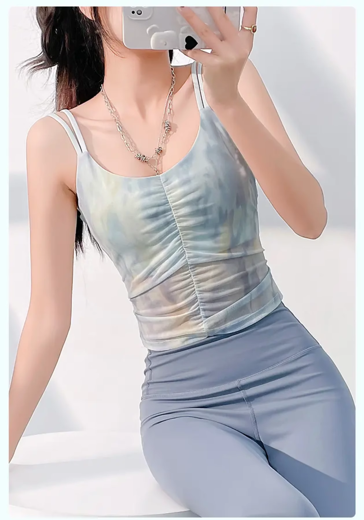 跃牌【瑜堂系列】新款国风印花背心网纱一体固定杯吊带外穿运动内衣女JYMB062