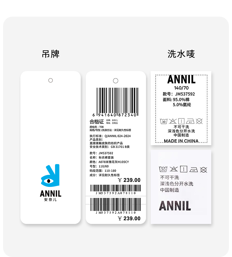 【磨毛棉感套装】男女童秋衣裤套装秋季新款安奈儿童装JM537592