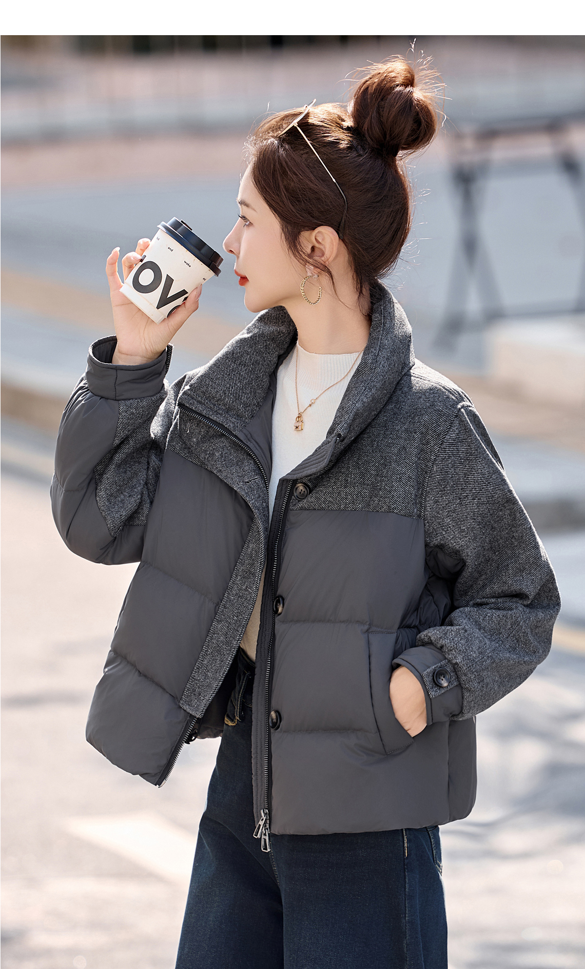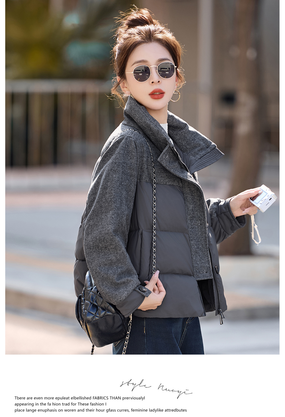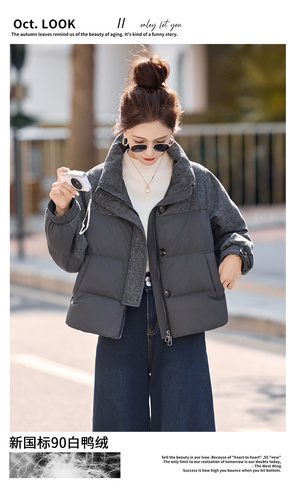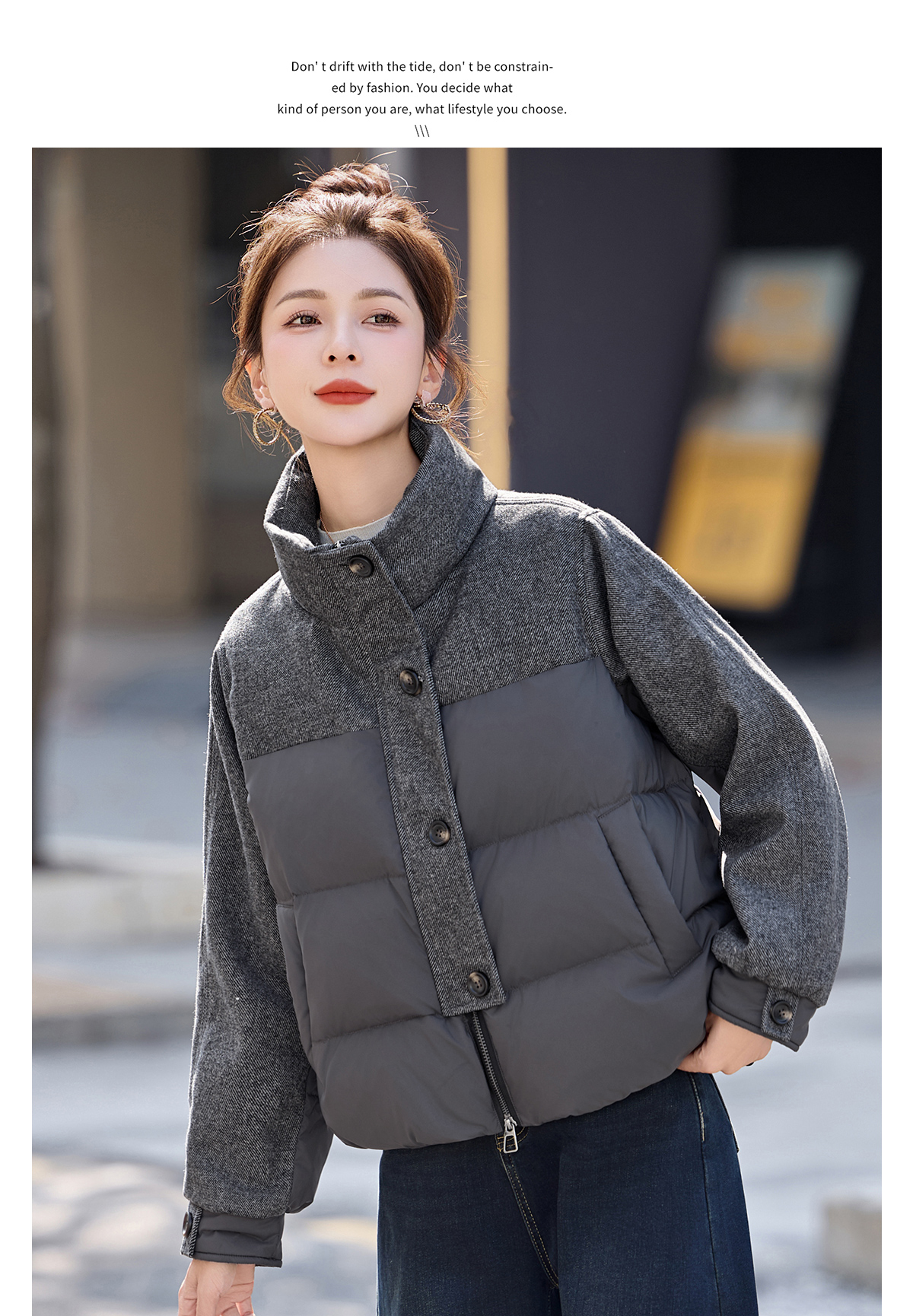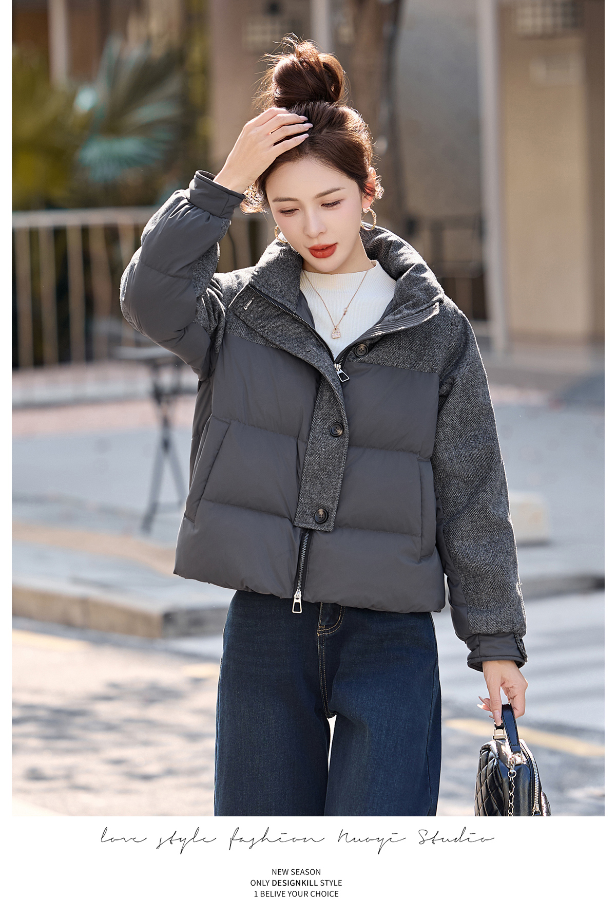 休闲时尚立领羽绒服,爆款毛呢拼接高端洋气外套HR-ZYF8896