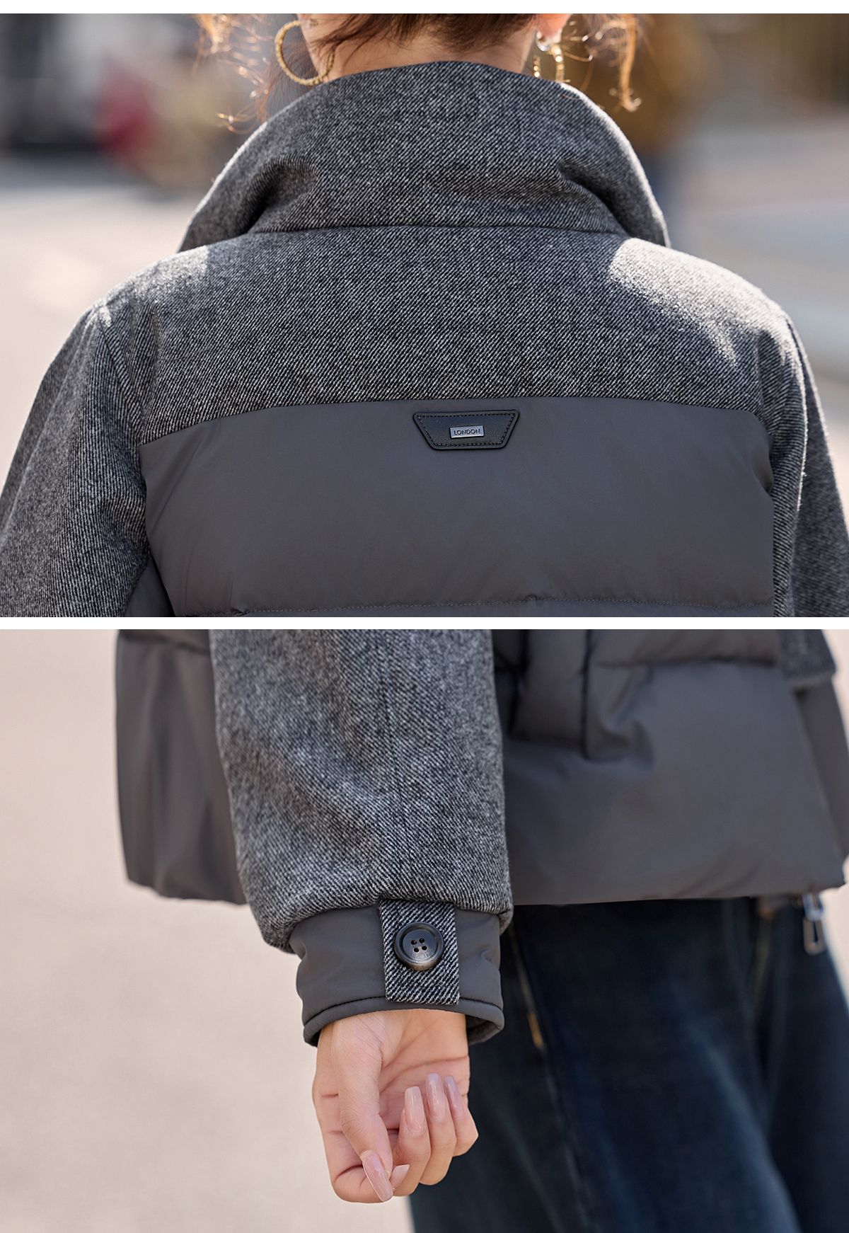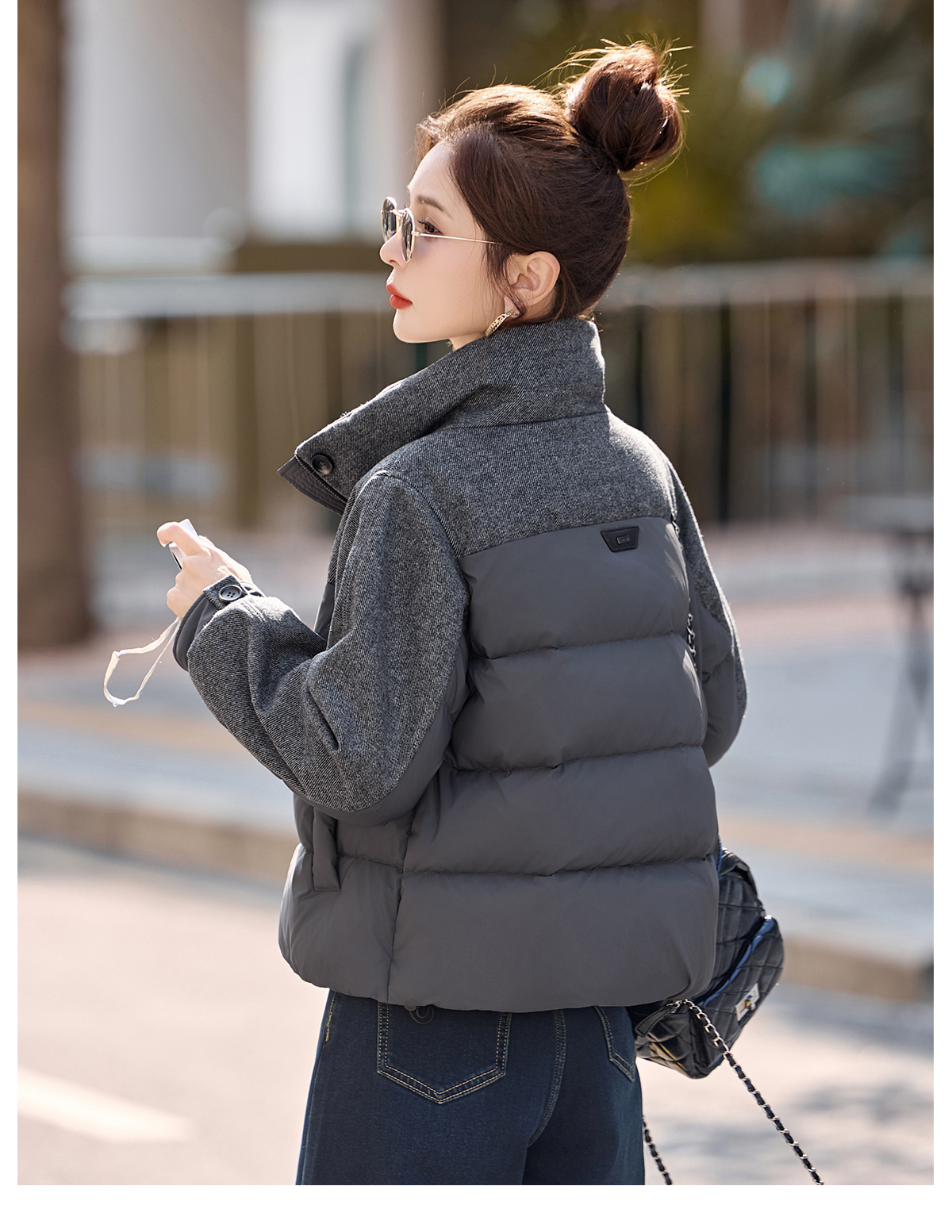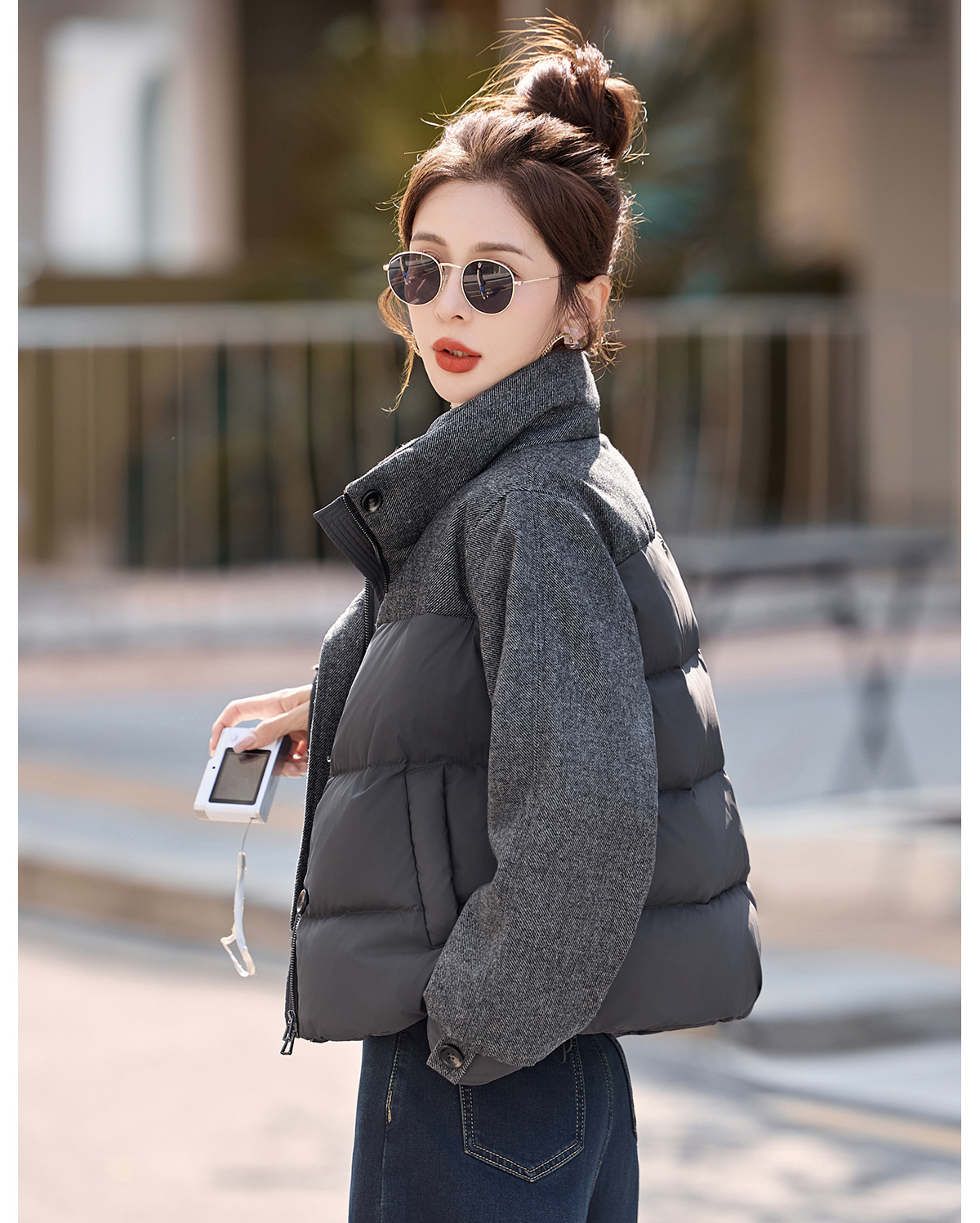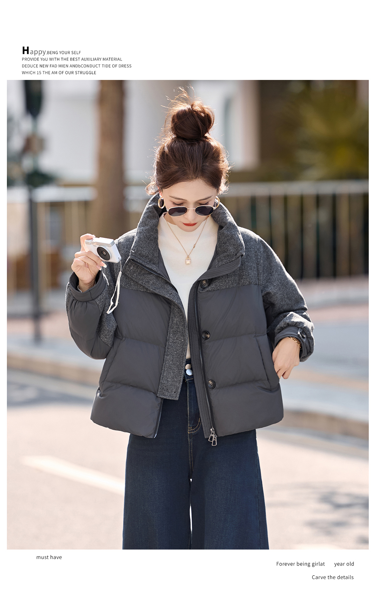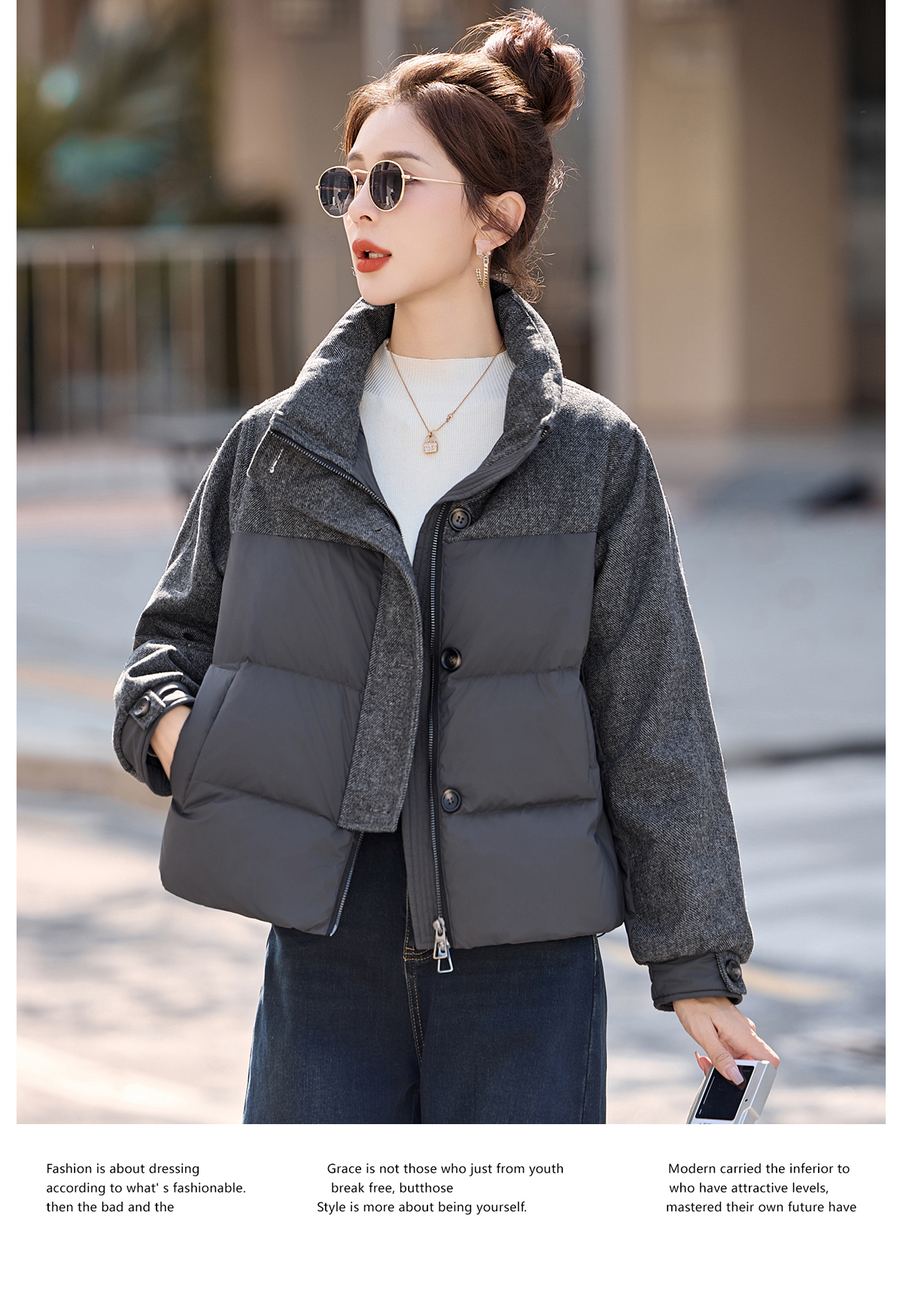 休闲时尚立领羽绒服,爆款毛呢拼接高端洋气外套HR-ZYF8896
