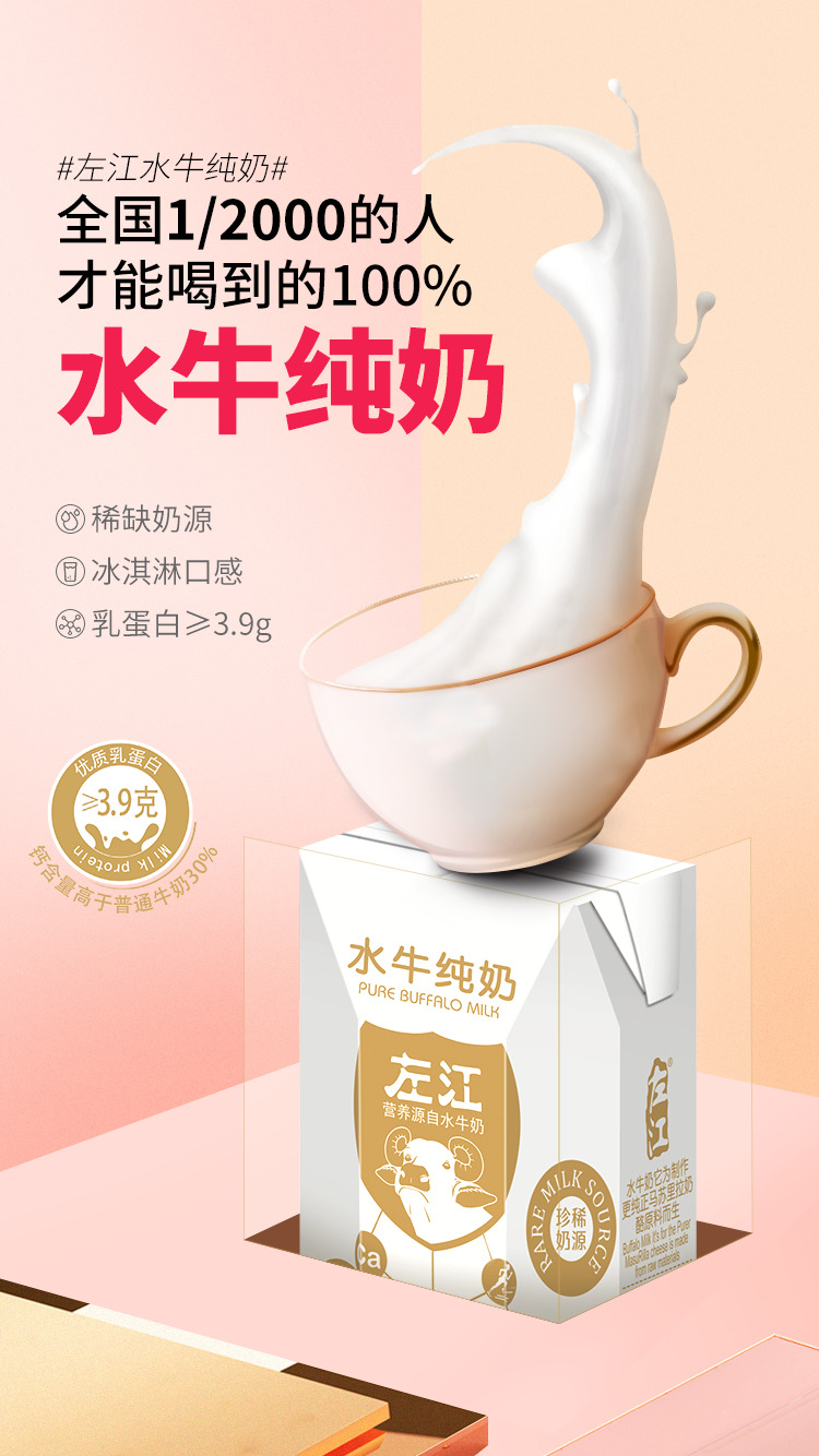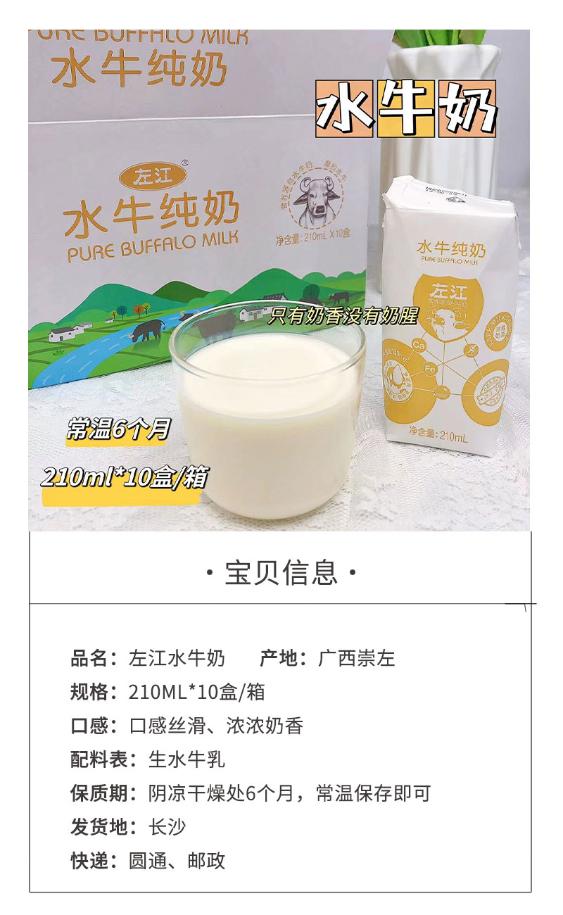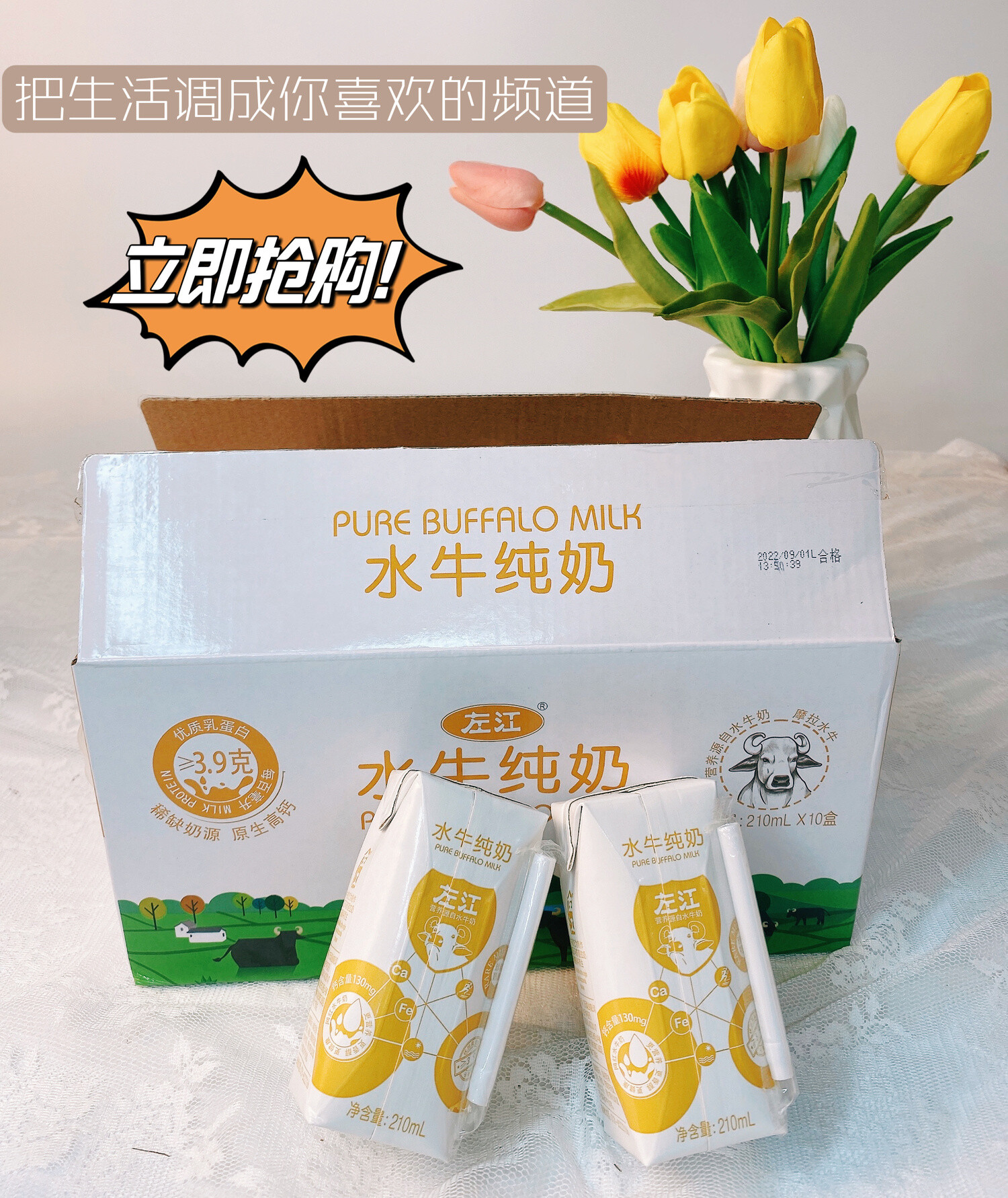 热卖!!【左江水牛奶】珍稀奶源,原生牧场的乳中珍品纯奶,3.9克乳蛋白,100%的纯水牛乳0添加剂0腥味0糖,口感堪称“减糖版旺仔”,醇甜丝滑如冰淇淋喝一口就爱上!
