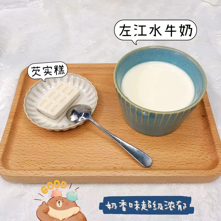 和普通牛奶相比,它带着一股的鲜甜,口感就像是化掉的冰淇淋一样,舀起来的一瞬间,水牛纯奶会挂在勺子上,倒在杯子里,边问边闻真的太绝了!