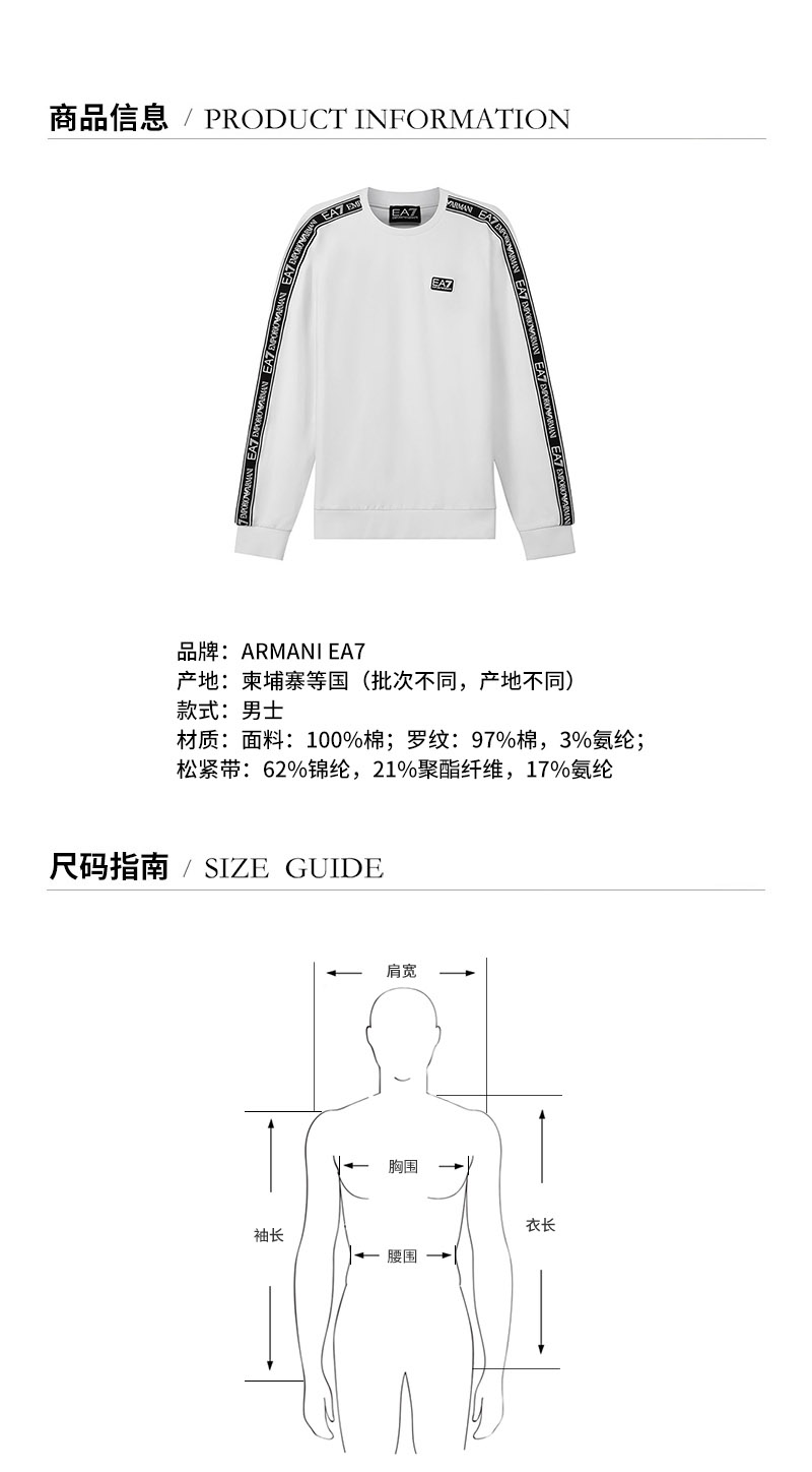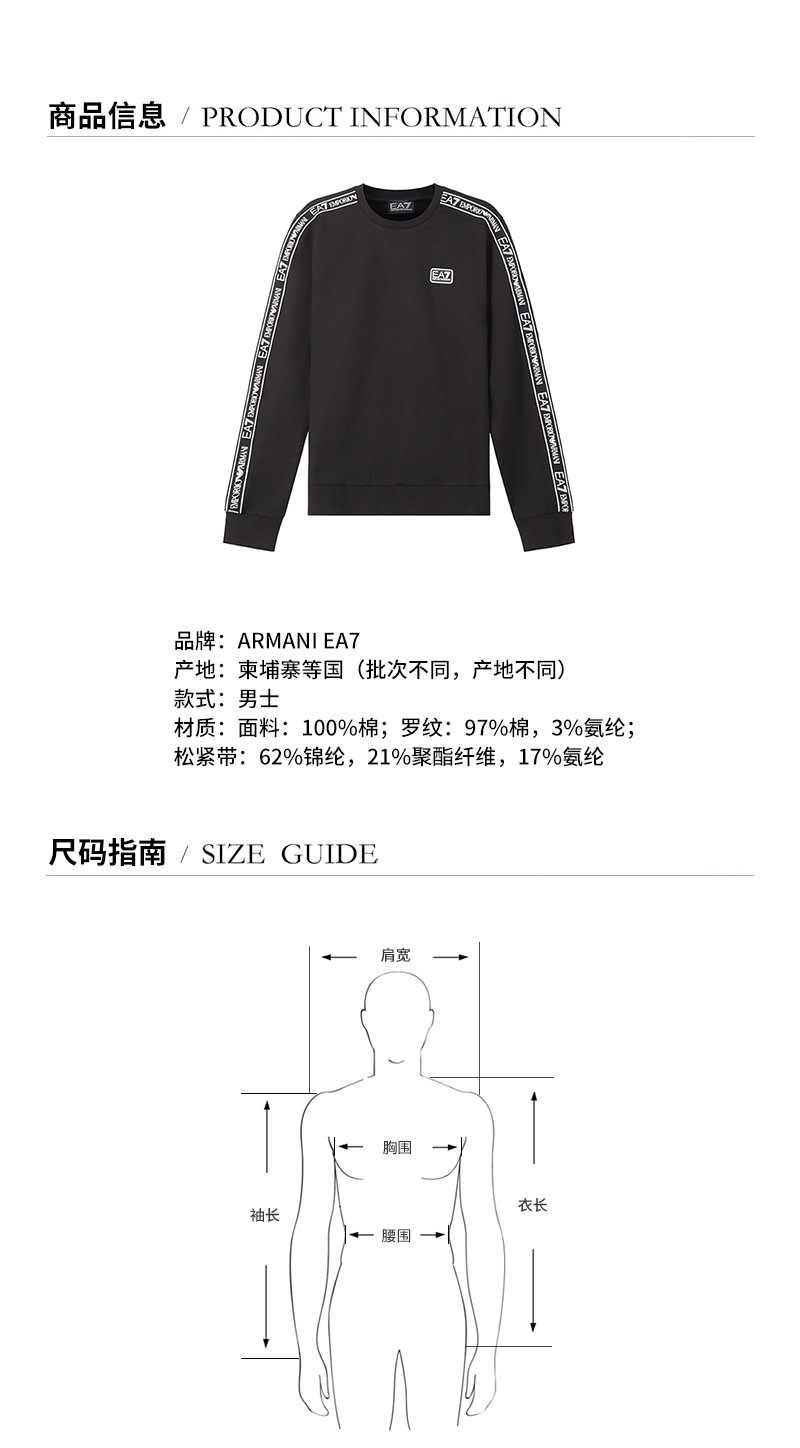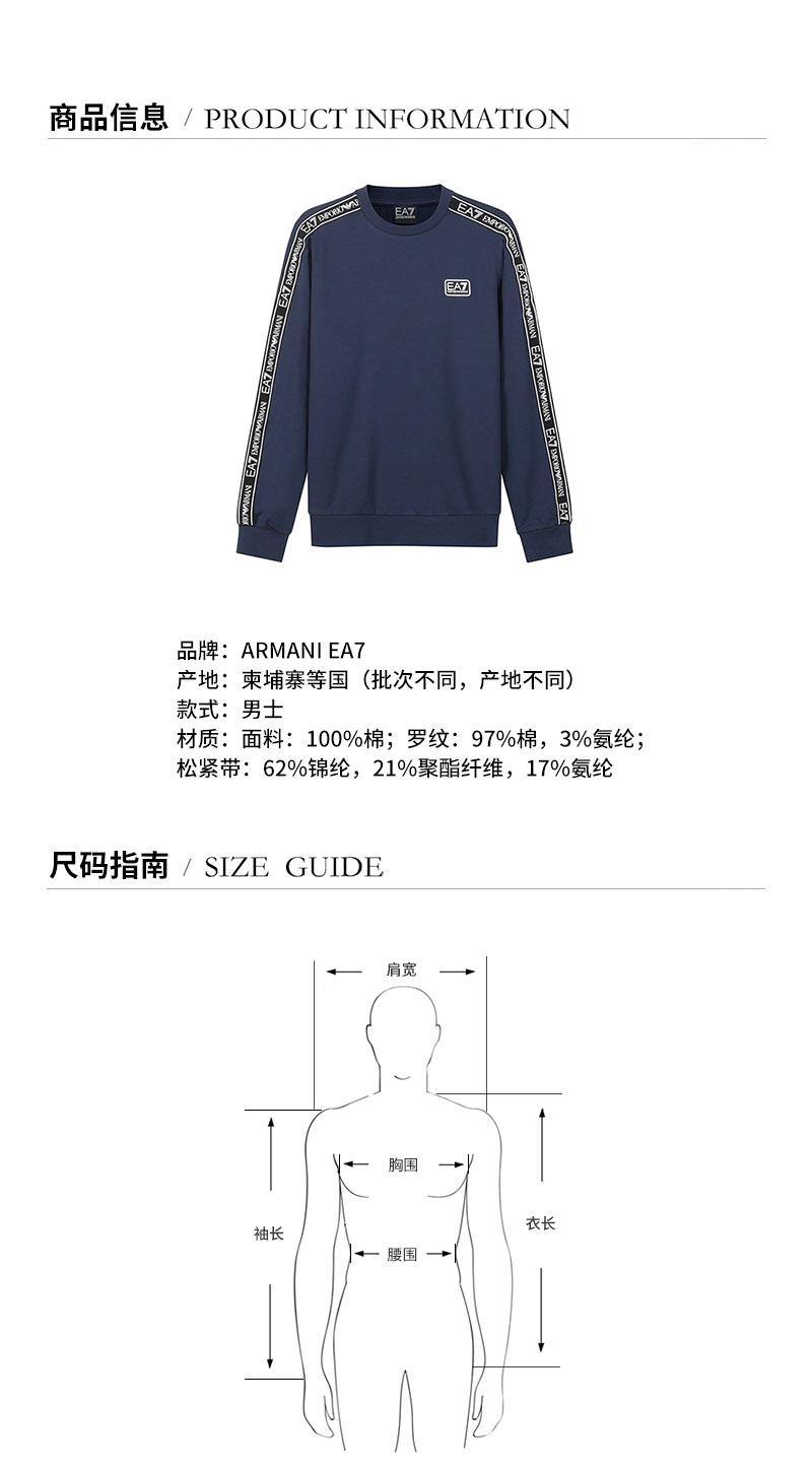 EA7阿玛尼【22春夏新款】男士LOGO系列棉质圆领长袖卫衣运动衫 3LPM39 PJ05Z