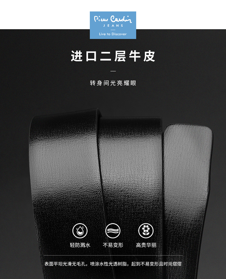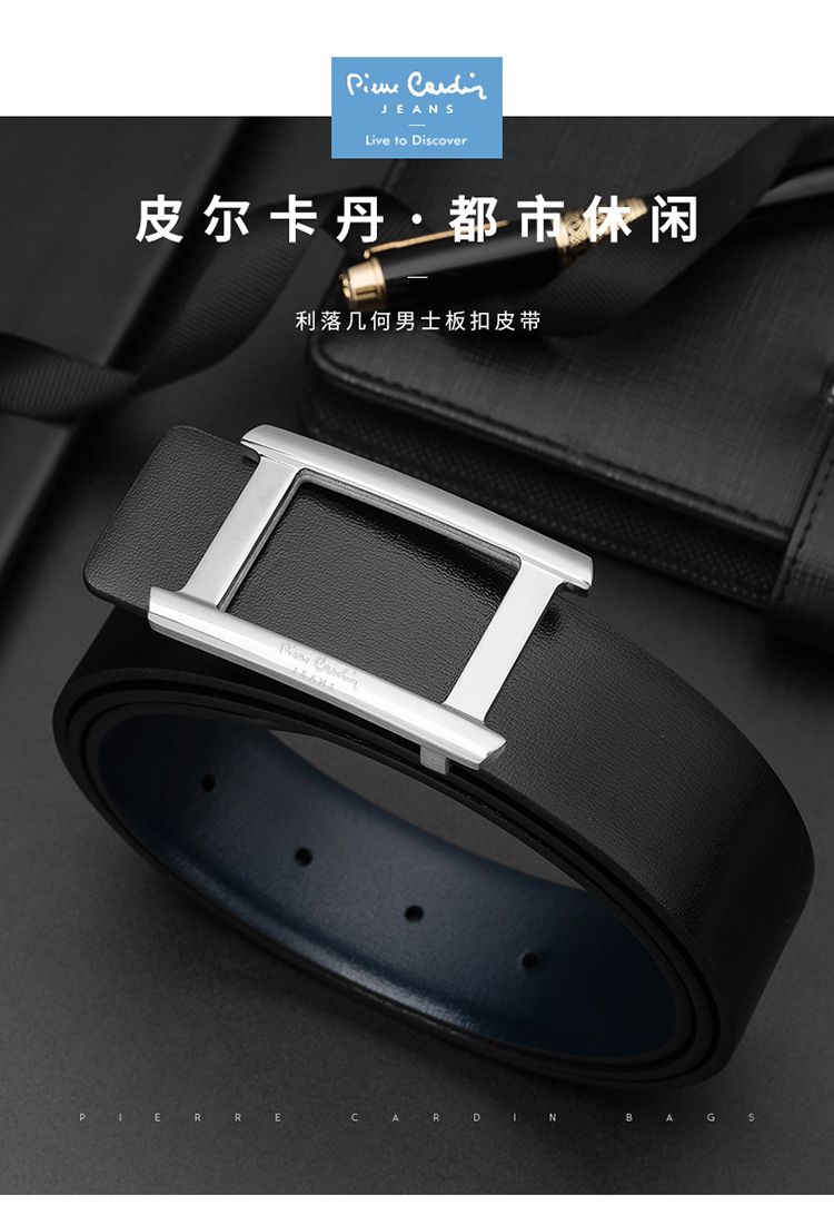 皮尔卡丹皮带男真皮都市休闲不锈钢板扣高级轻奢裤腰带商务牛皮裤带