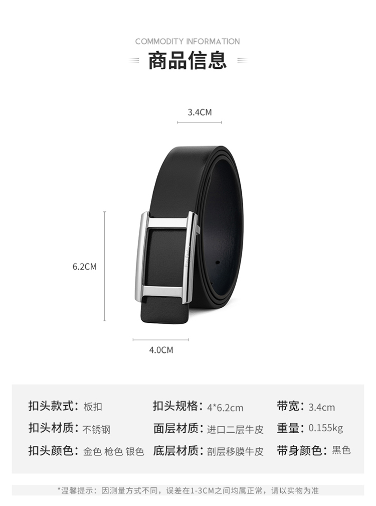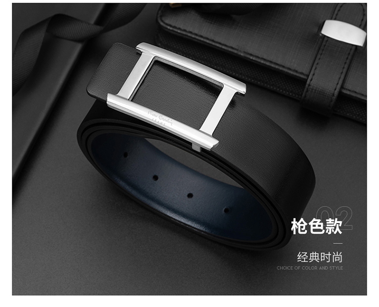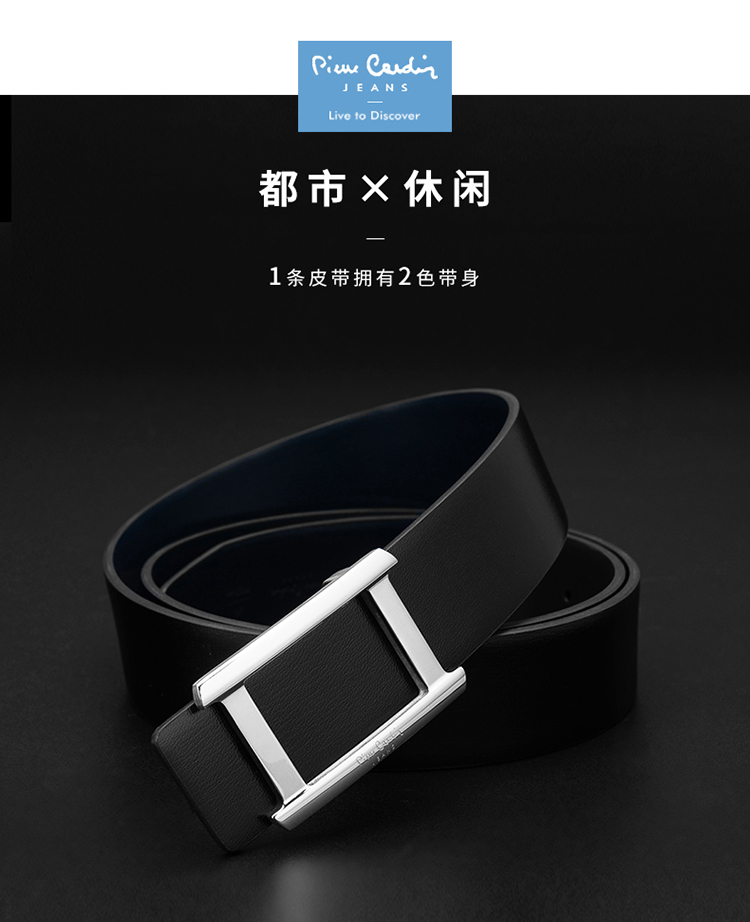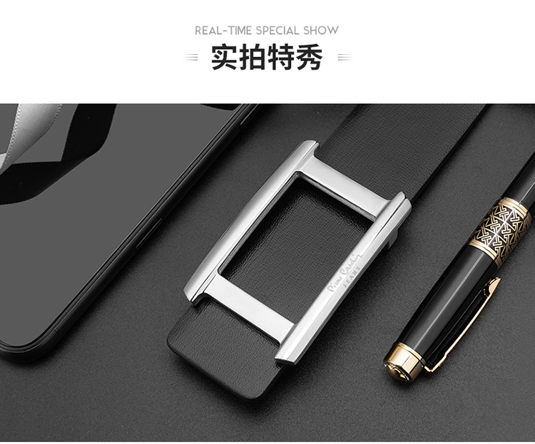 皮尔卡丹正品皮带男头层牛皮都市时尚腰带合金自动扣裤腰带商务牛皮裤带