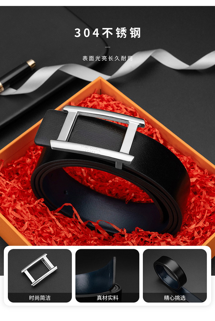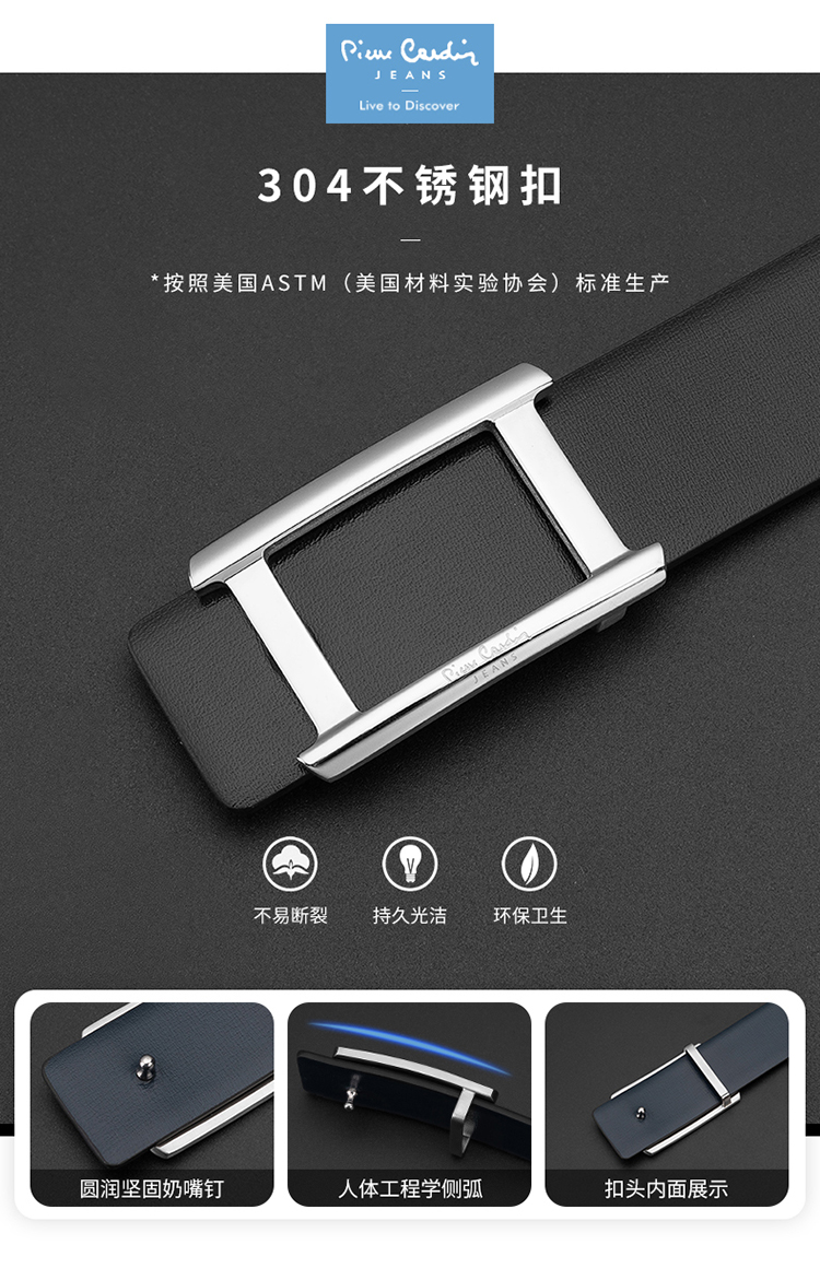 皮尔卡丹皮带男款不锈钢自动扣皮带男真皮2023新款男式裤腰带潮流
