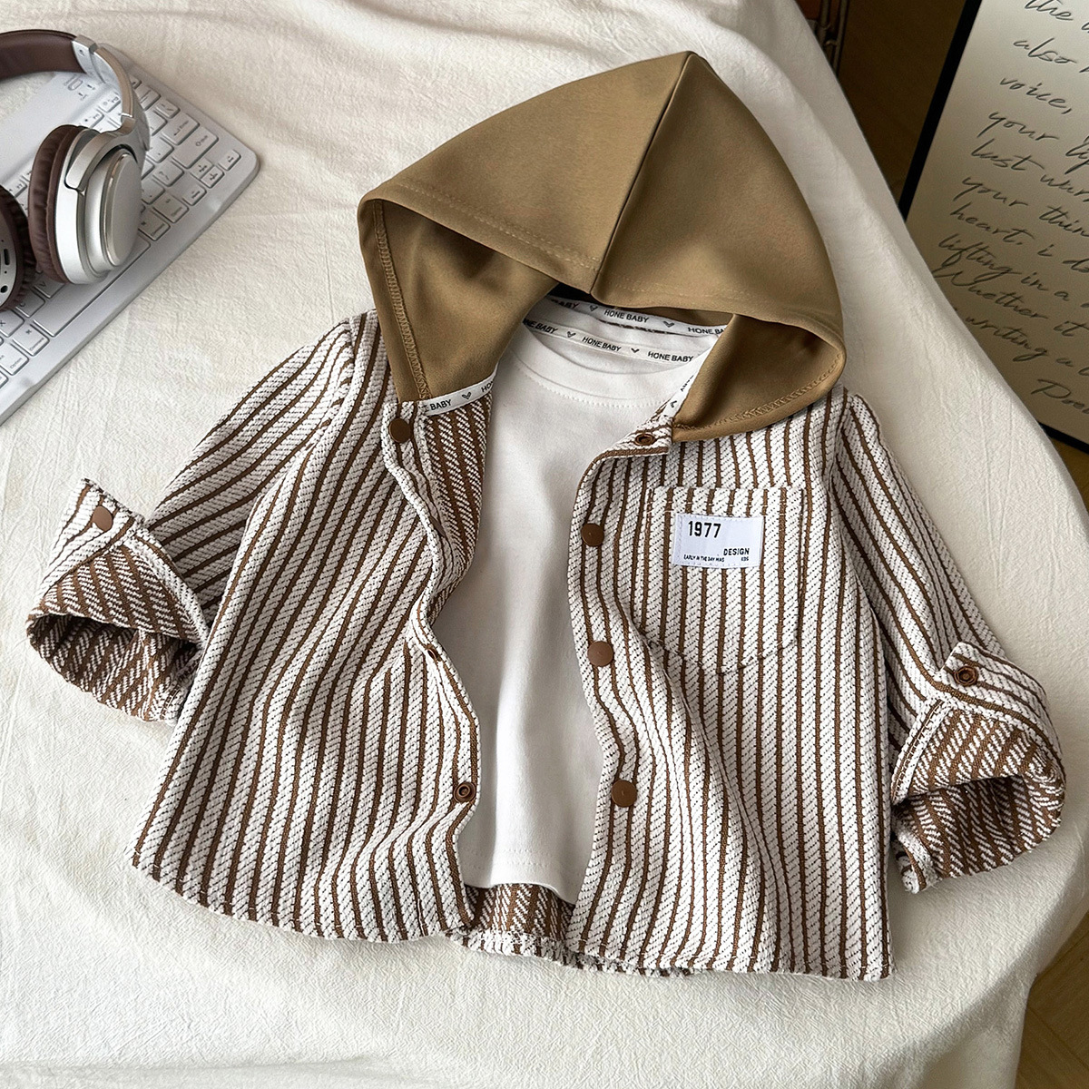 2025新款韩版百搭卡通涂鸦拼接条纹假两件T恤打底衫宝宝秋季卫衣