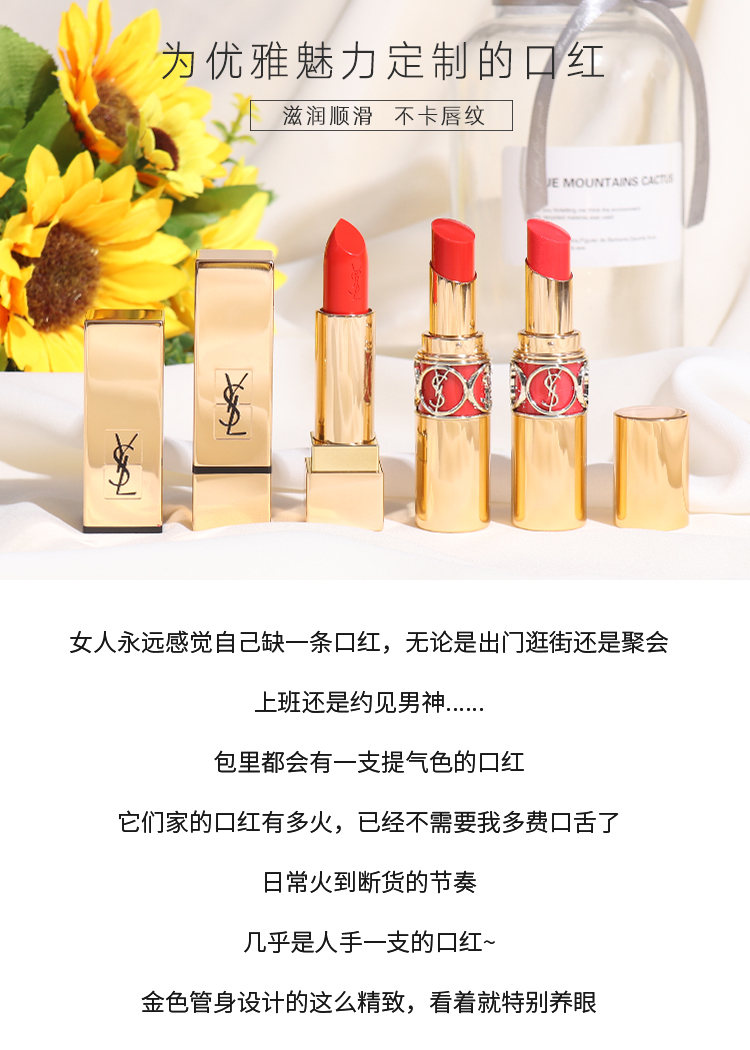 【现货】YSL 圣罗兰 新款圆管口红 Shine金管唇膏 佳琪力荐