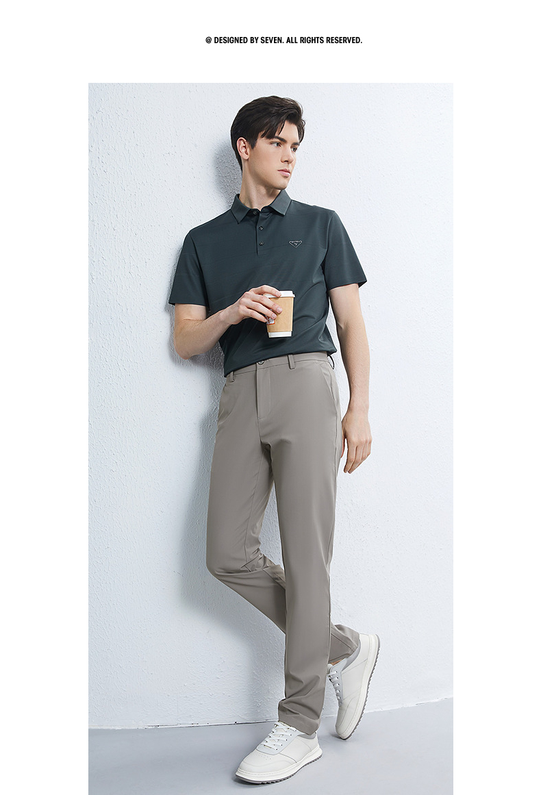 柒牌锦氨休闲裤男2024春夏新款时尚百搭条纹提花修身男士直筒长裤 126H71760