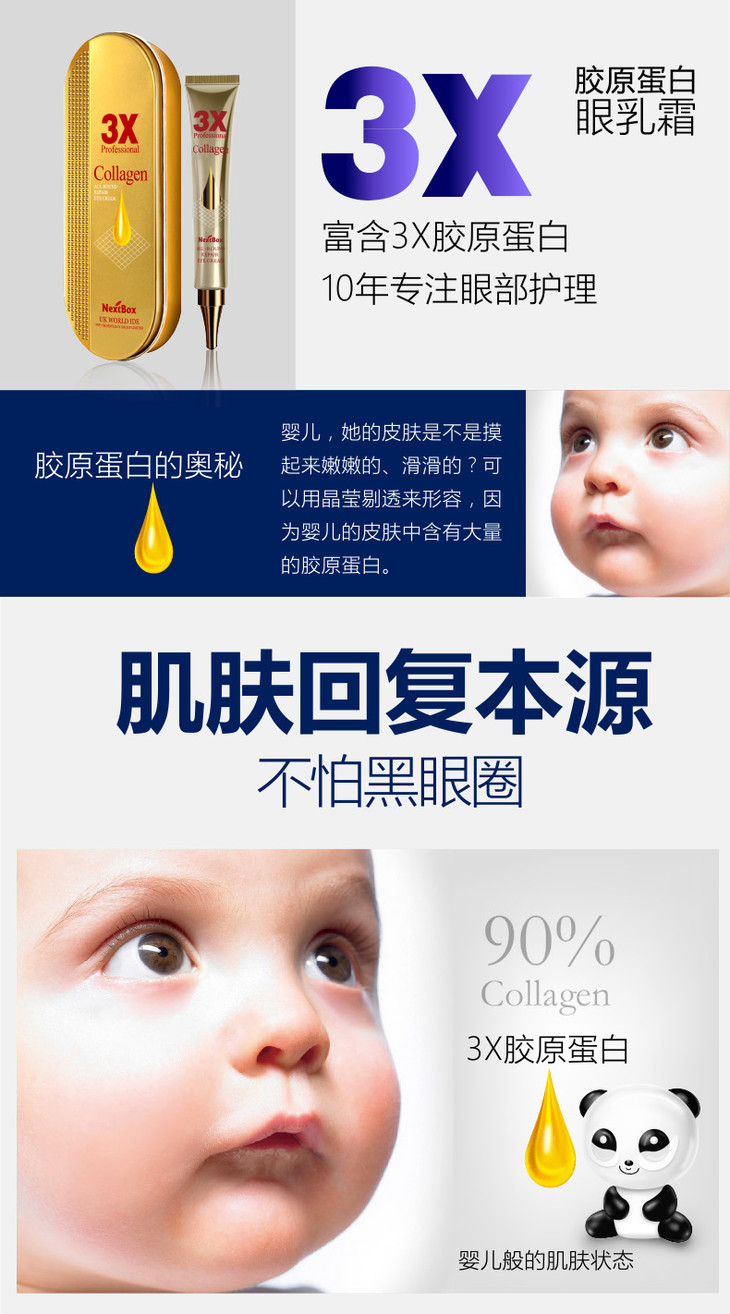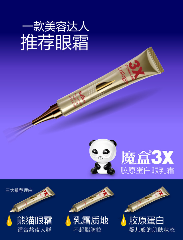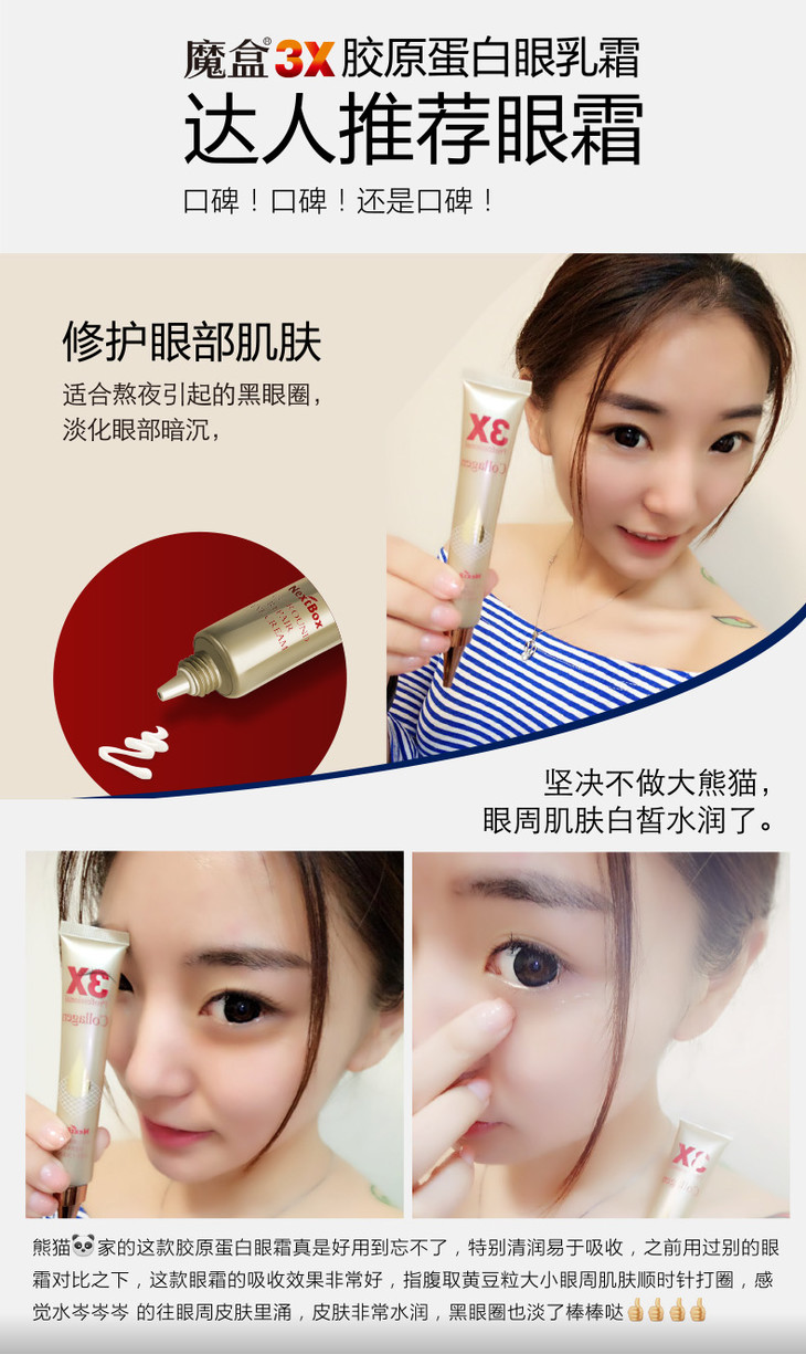 魔盒3X眼袋消修护眼霜20g 补水黑眼圈眼袋女男细纹效提拉紧致