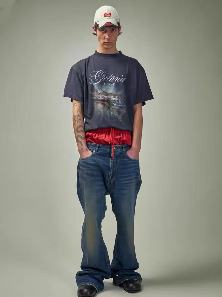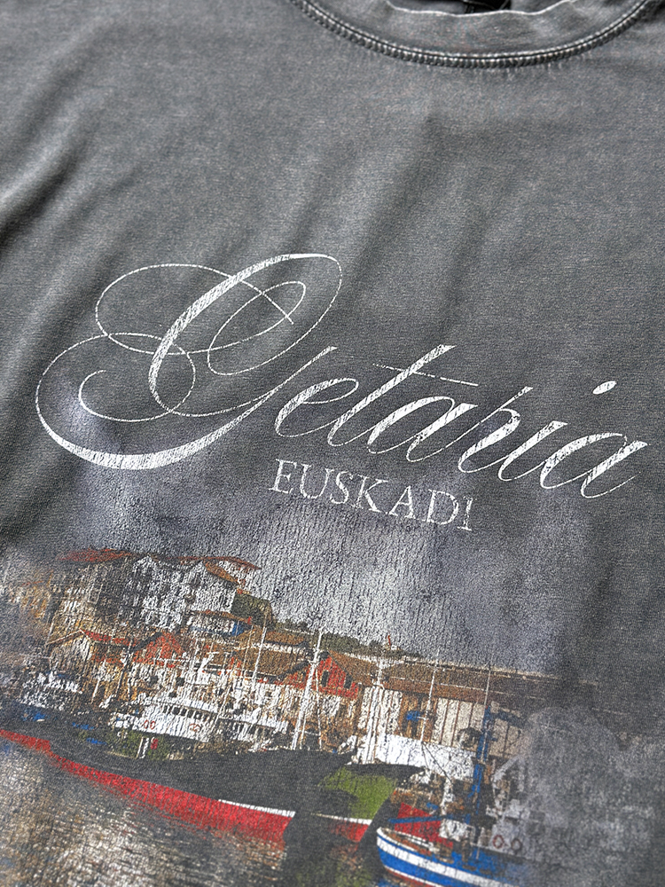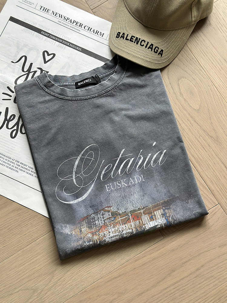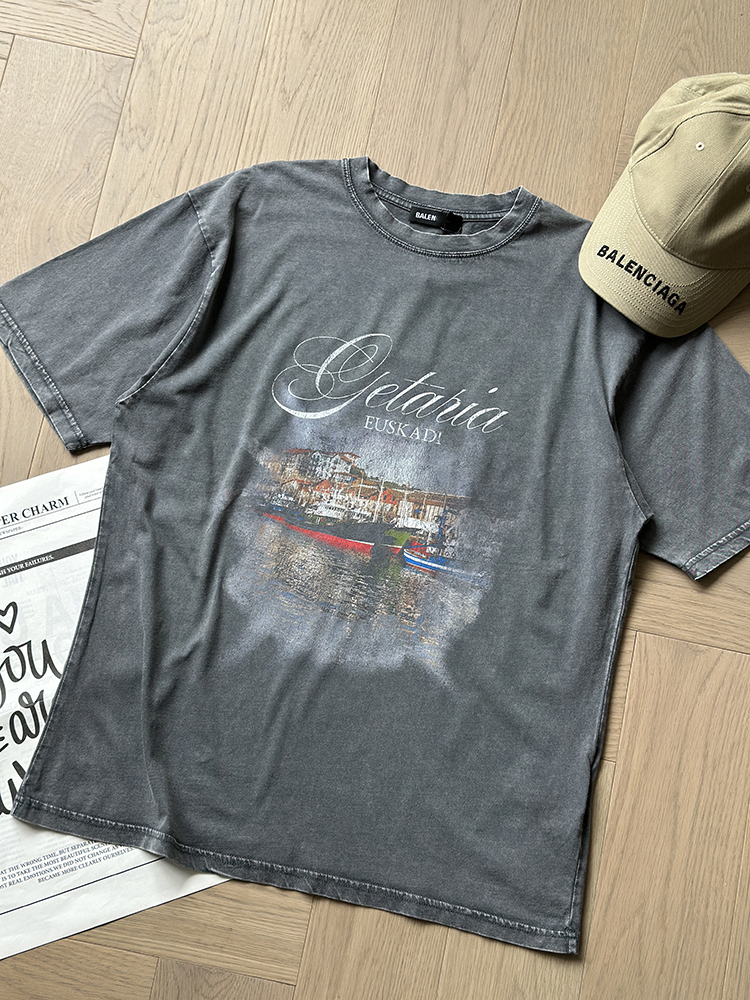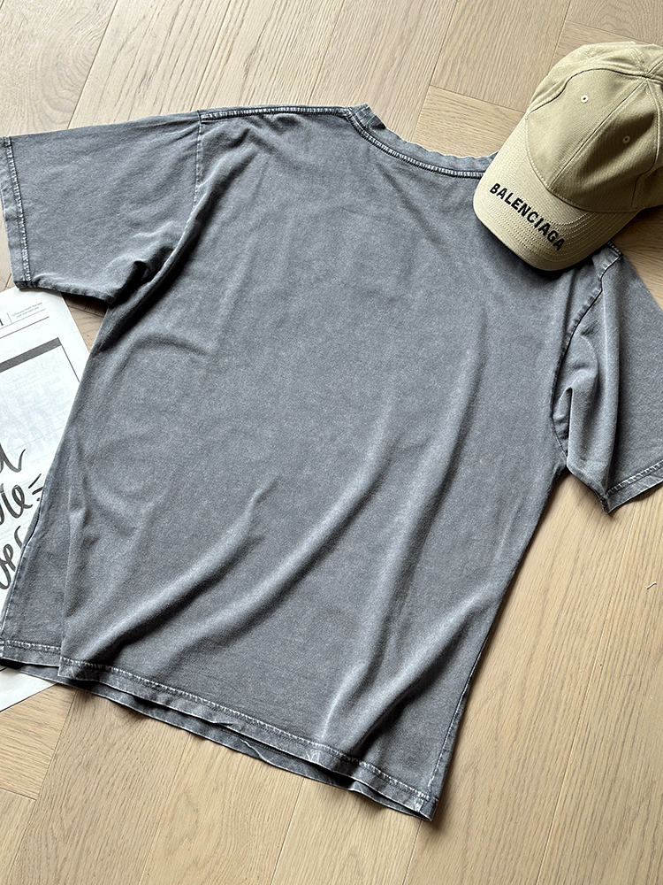 现货 THS-限时 巴黎家 情侣款 高街腔调夜景数码印花乘以染色水洗做旧T恤 QH458
