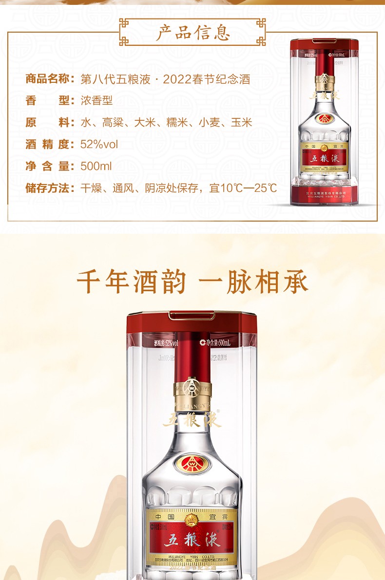 52度第八代五粮液定制酒系列(春节纪念酒) 500ml 单瓶