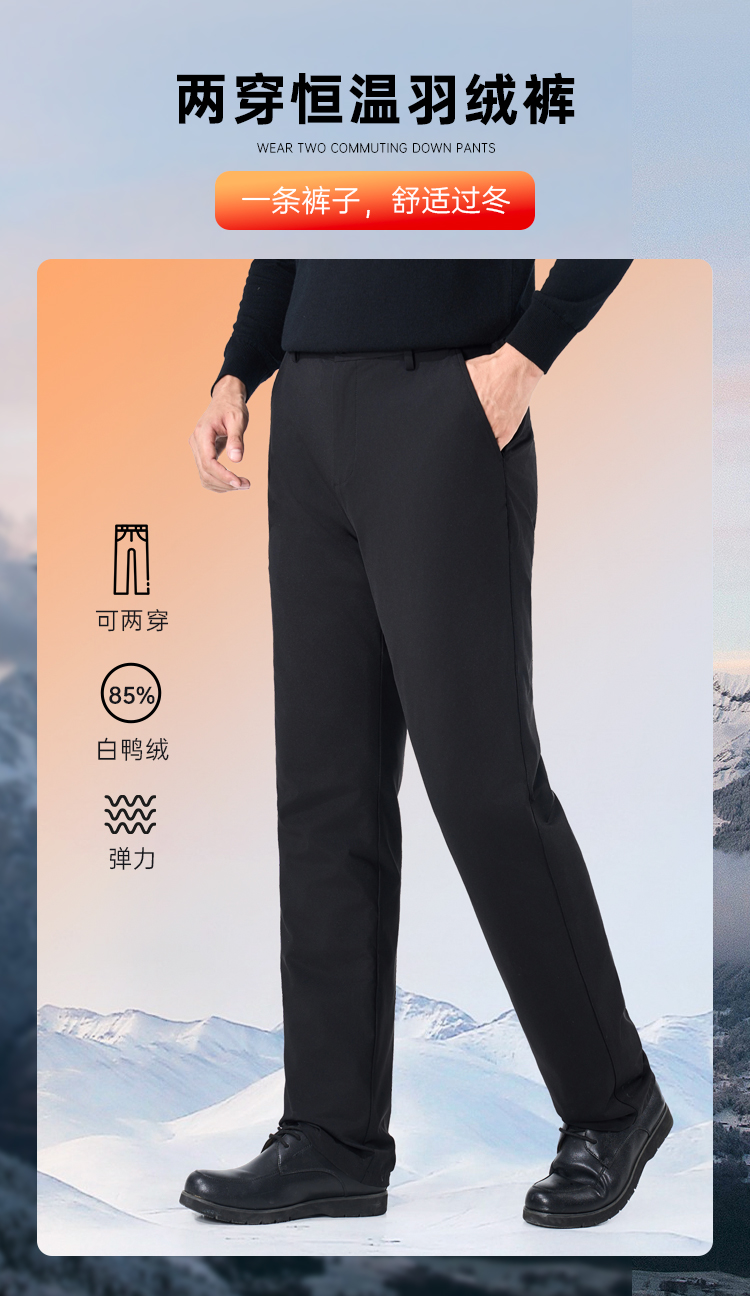 【两穿恒温羽绒裤】可脱卸内胆通勤西裤加绒保暖直筒长裤KT403
