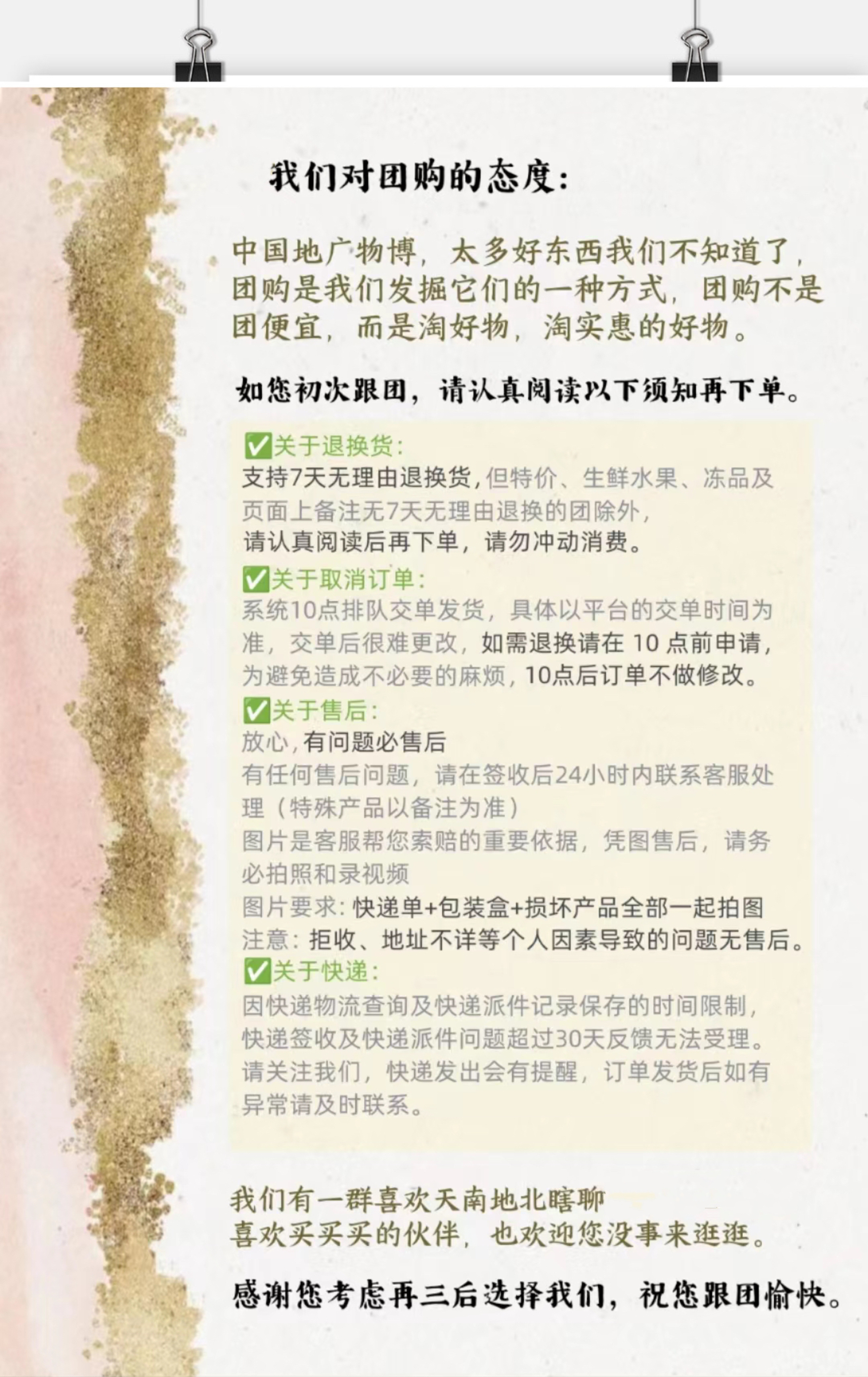 【关于售后】不影响二次销售支持7天无理由退换货,非质量问题退换货运费自理(质量问题第一时间拍照核实反馈)
