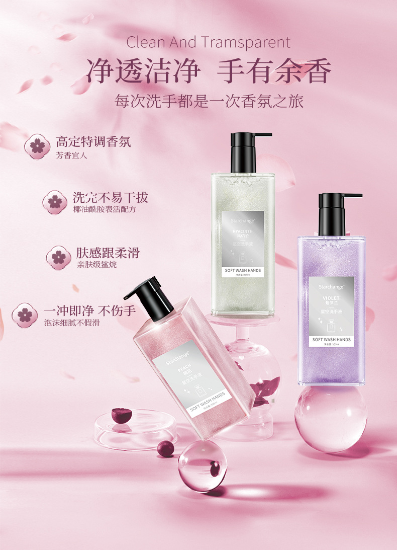 桃花星空泡沫洗手液酒店家用抑菌洗手液不伤手持久留香儿童可洗用