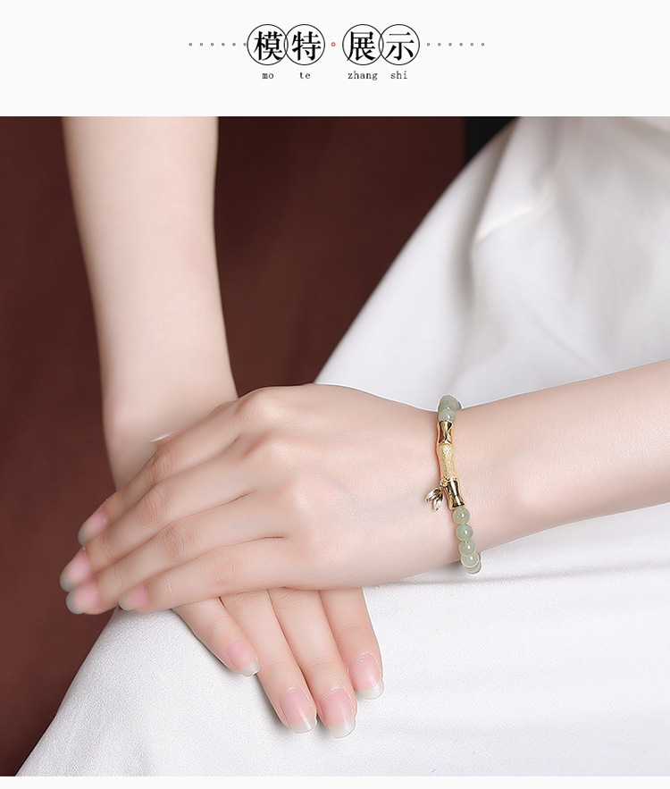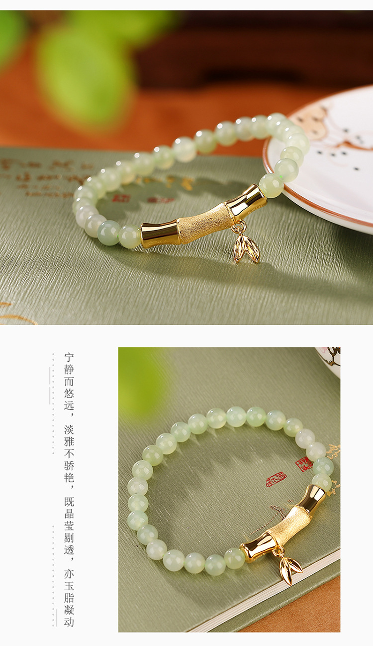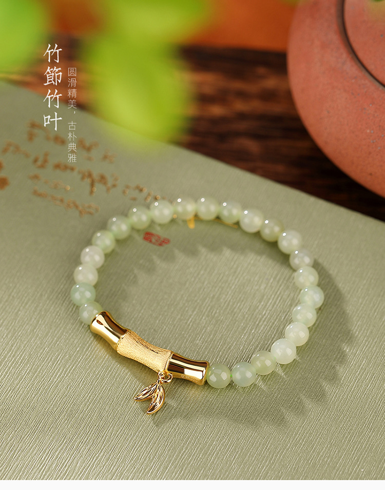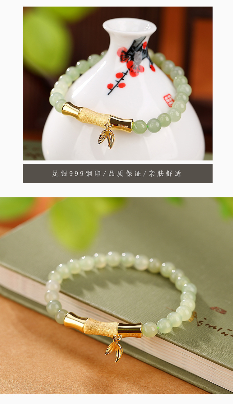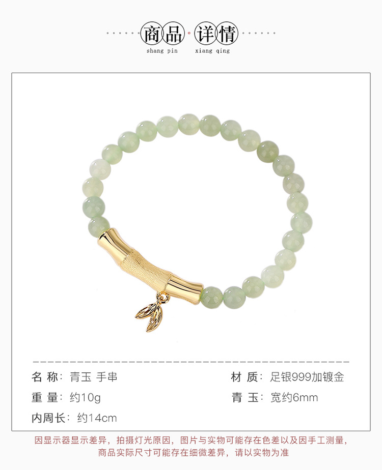 S925银镀金,和田玉青玉百搭竹节竹叶手链初春气质手串CW-SL11520