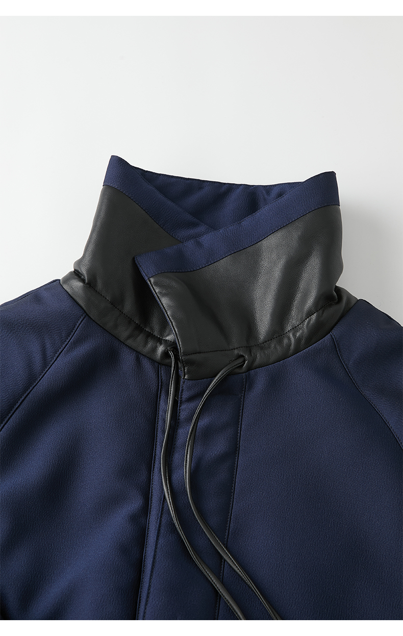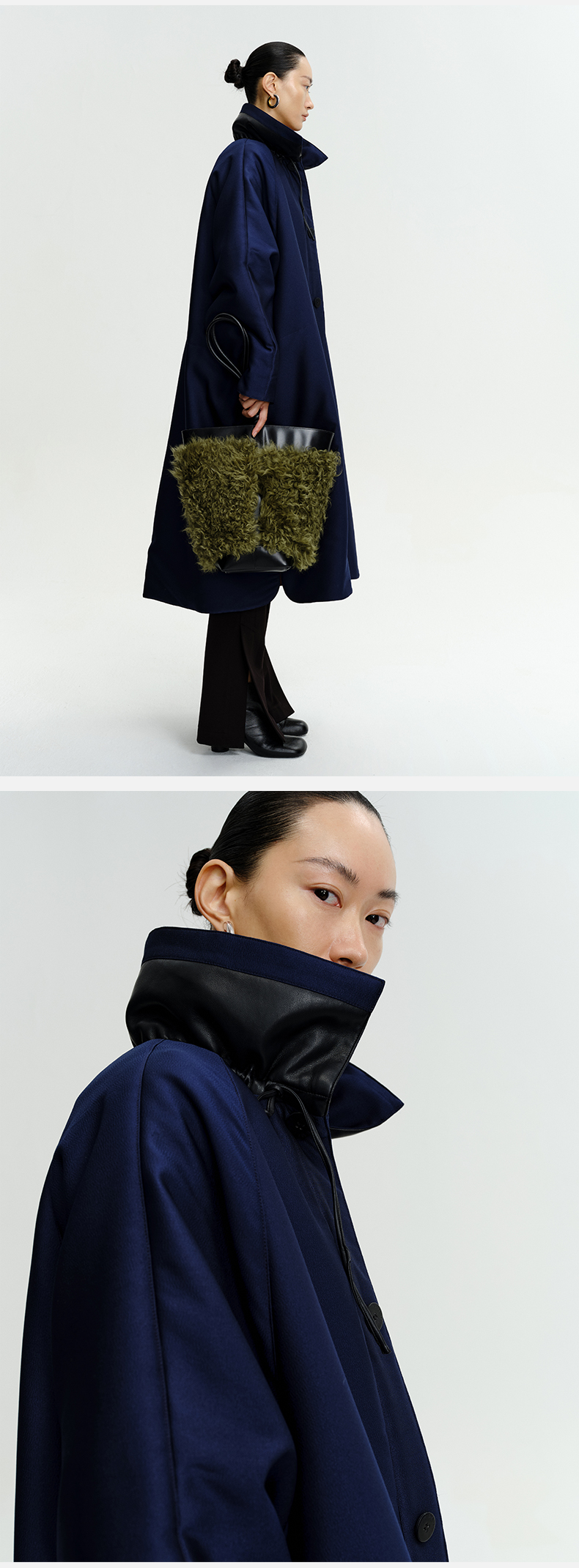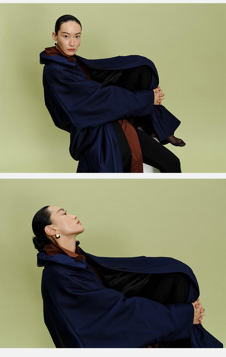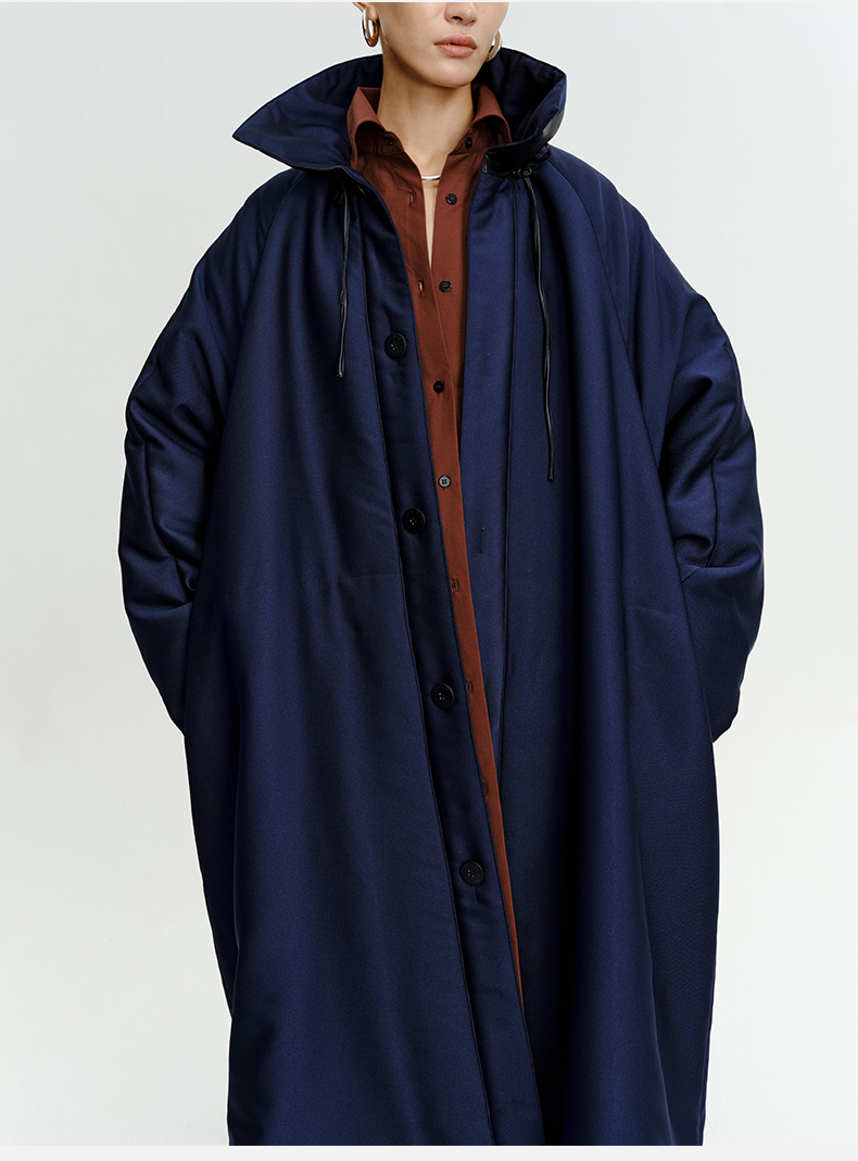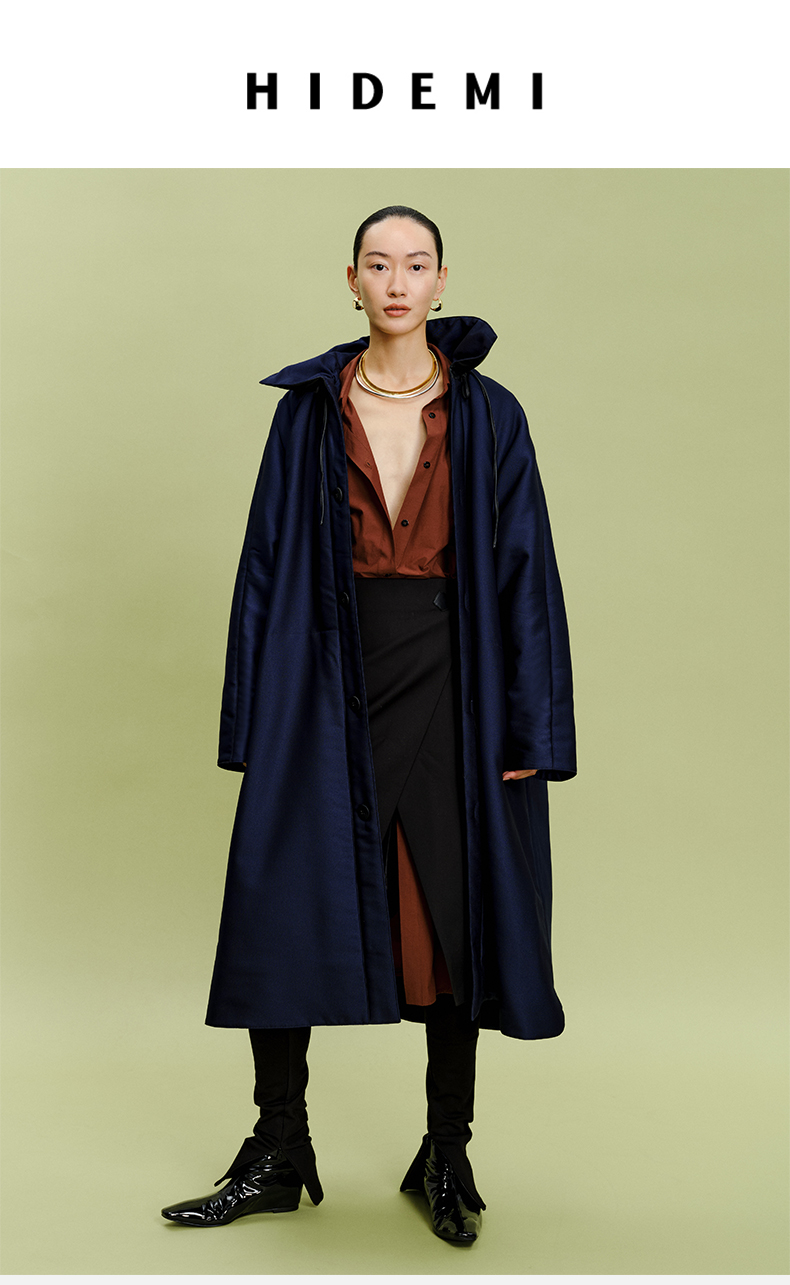HIDEMI拼皮立领极简大廓型长款棉服