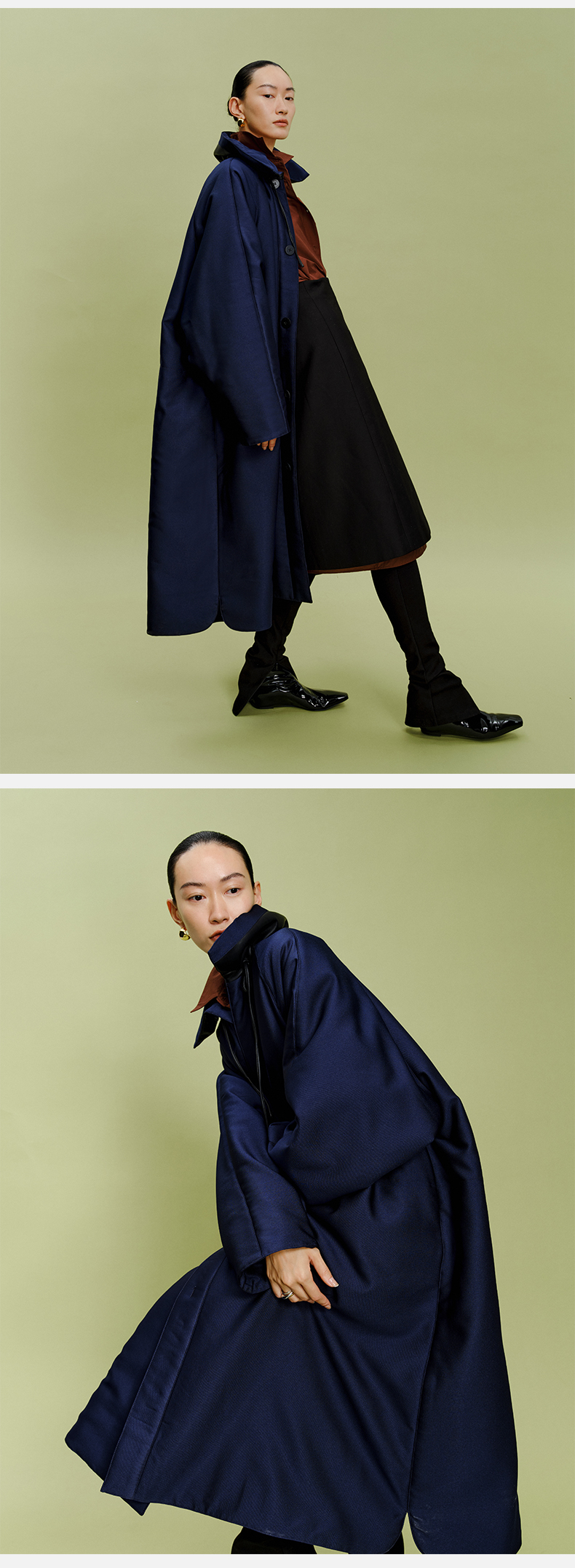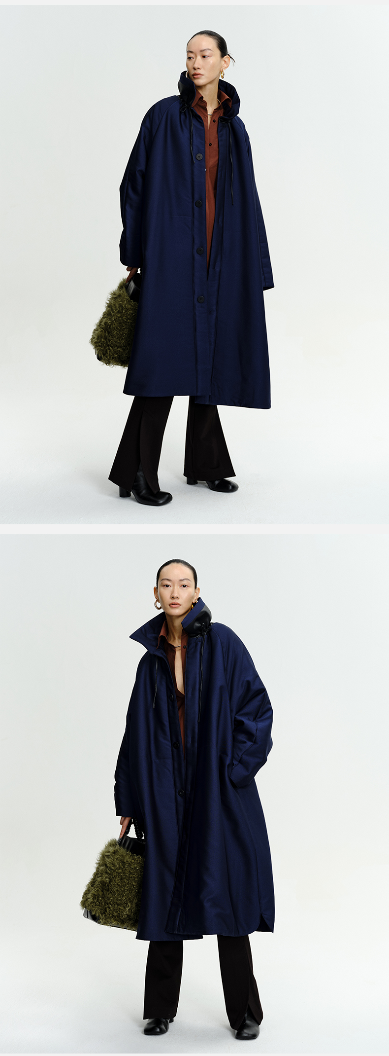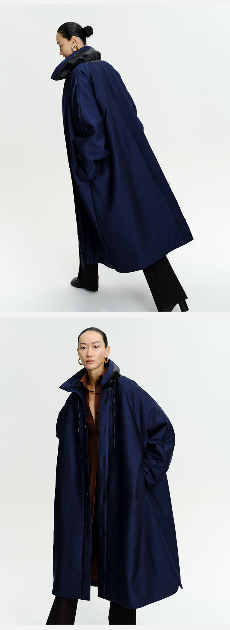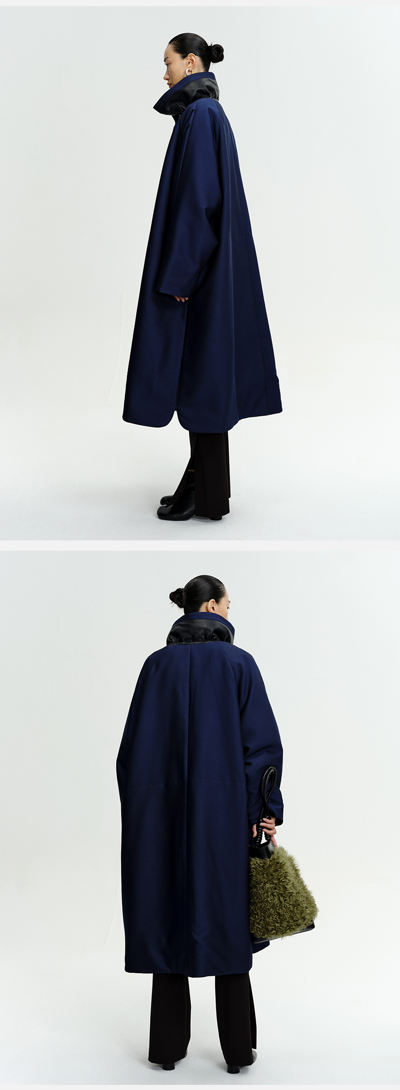 HIDEMI拼皮立领极简大廓型长款棉服