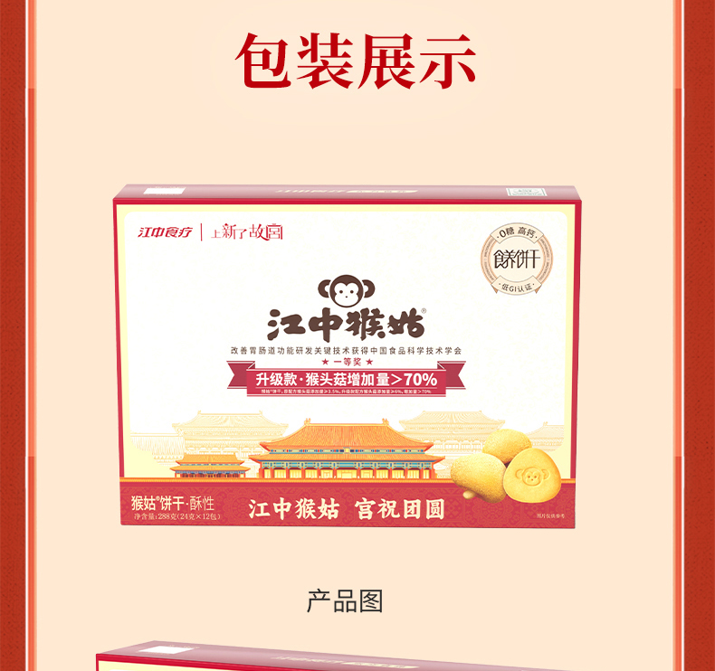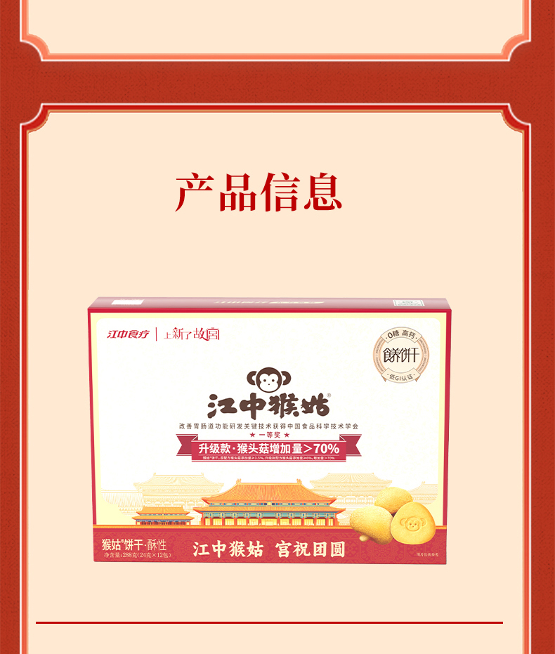 【商务冯站长】6盒装江中猴姑0糖酥性饼干陈皮酥性饼干288g/盒