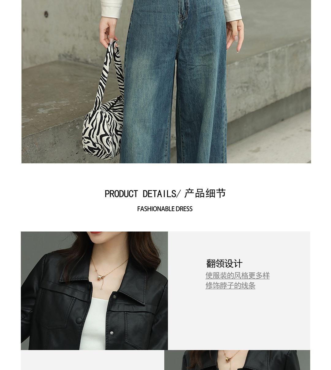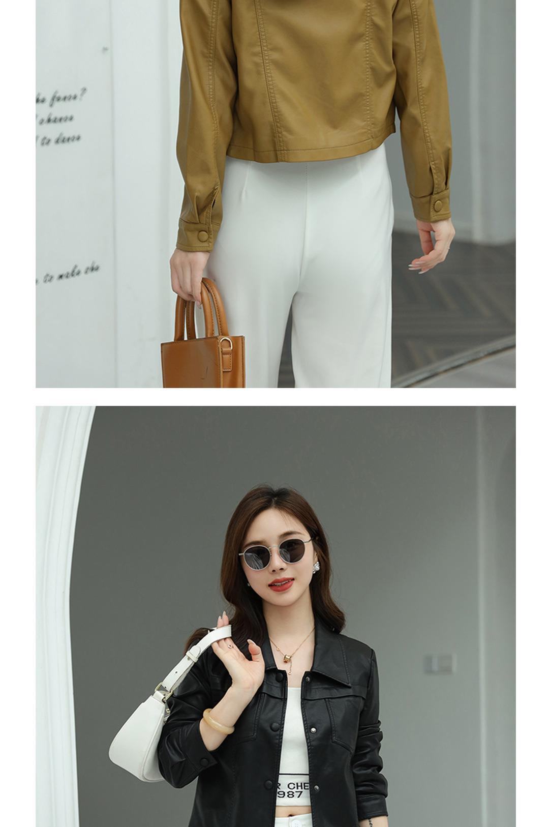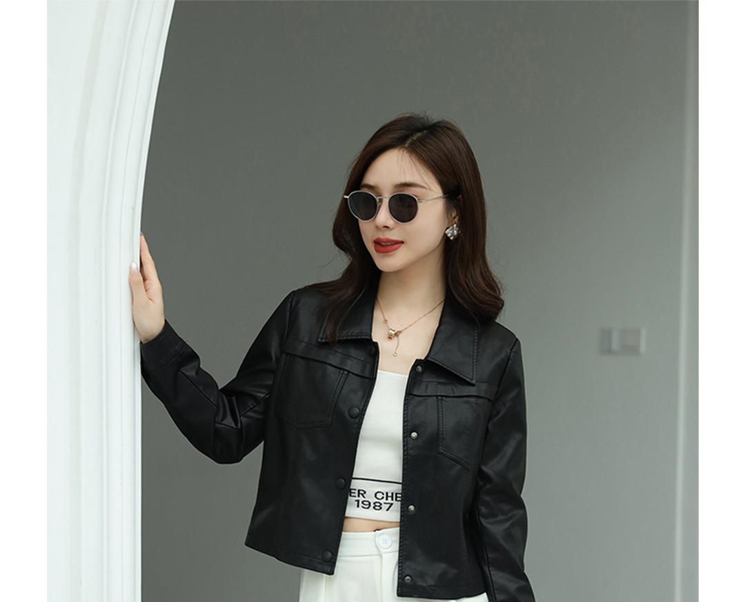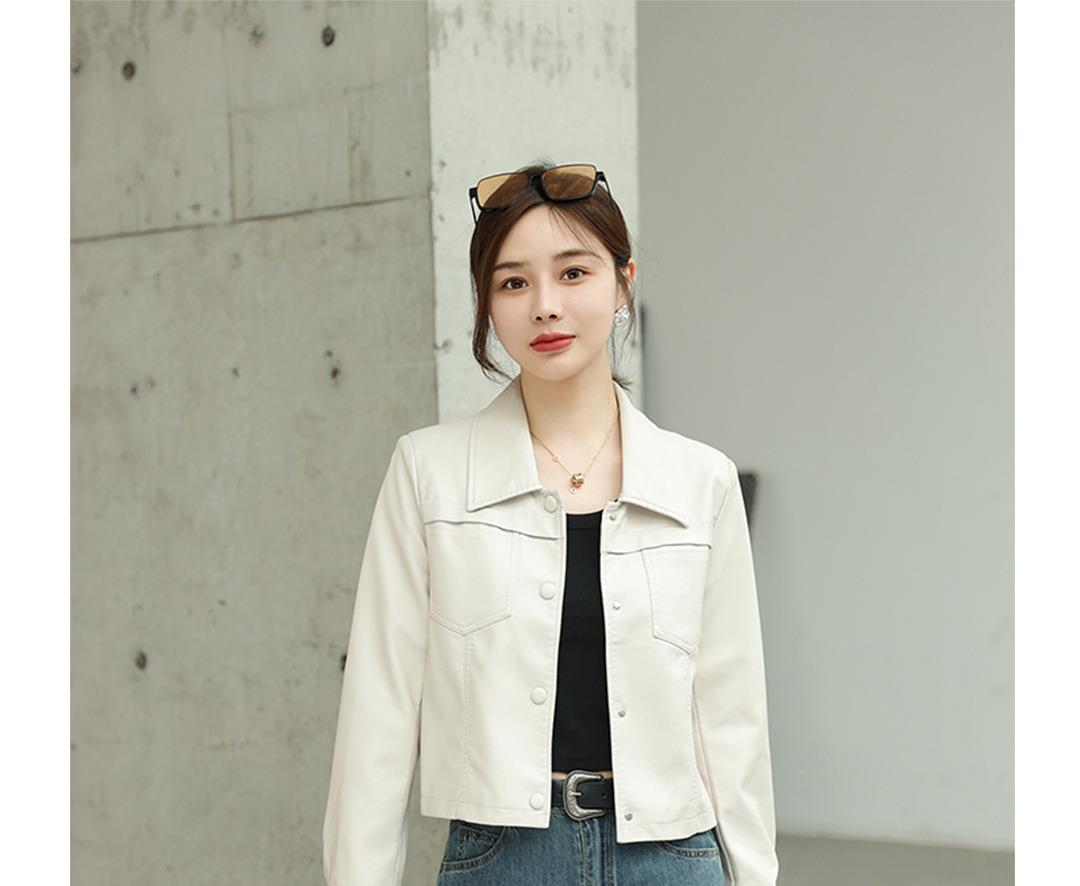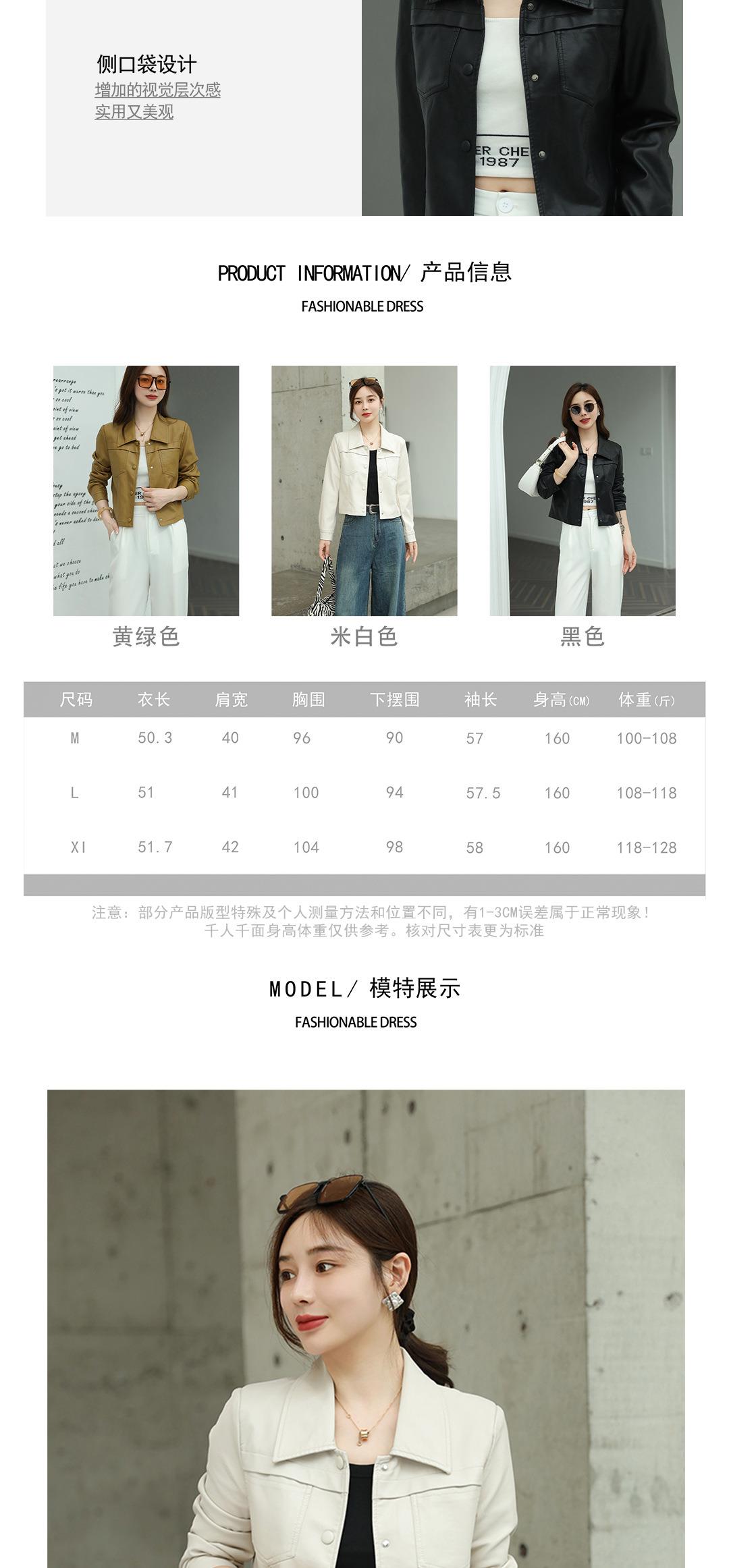2023秋季新款皮衣外套女韩版翻领短款水洗PU皮衣修身皮夹克