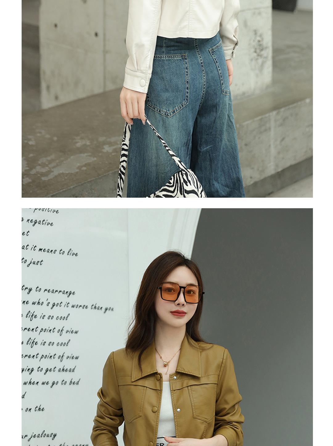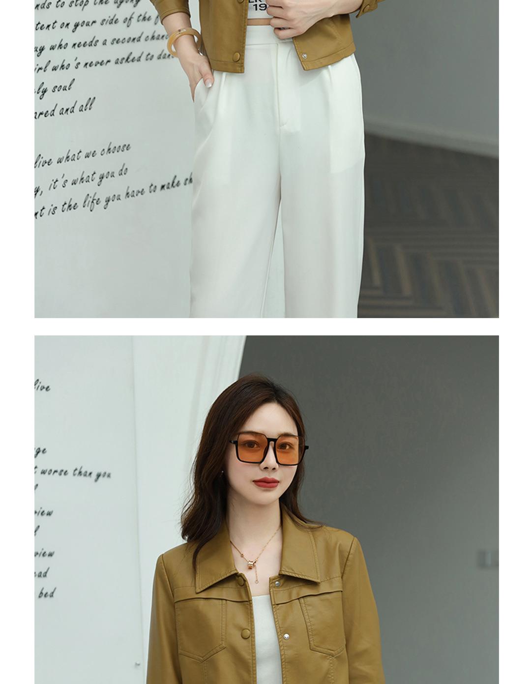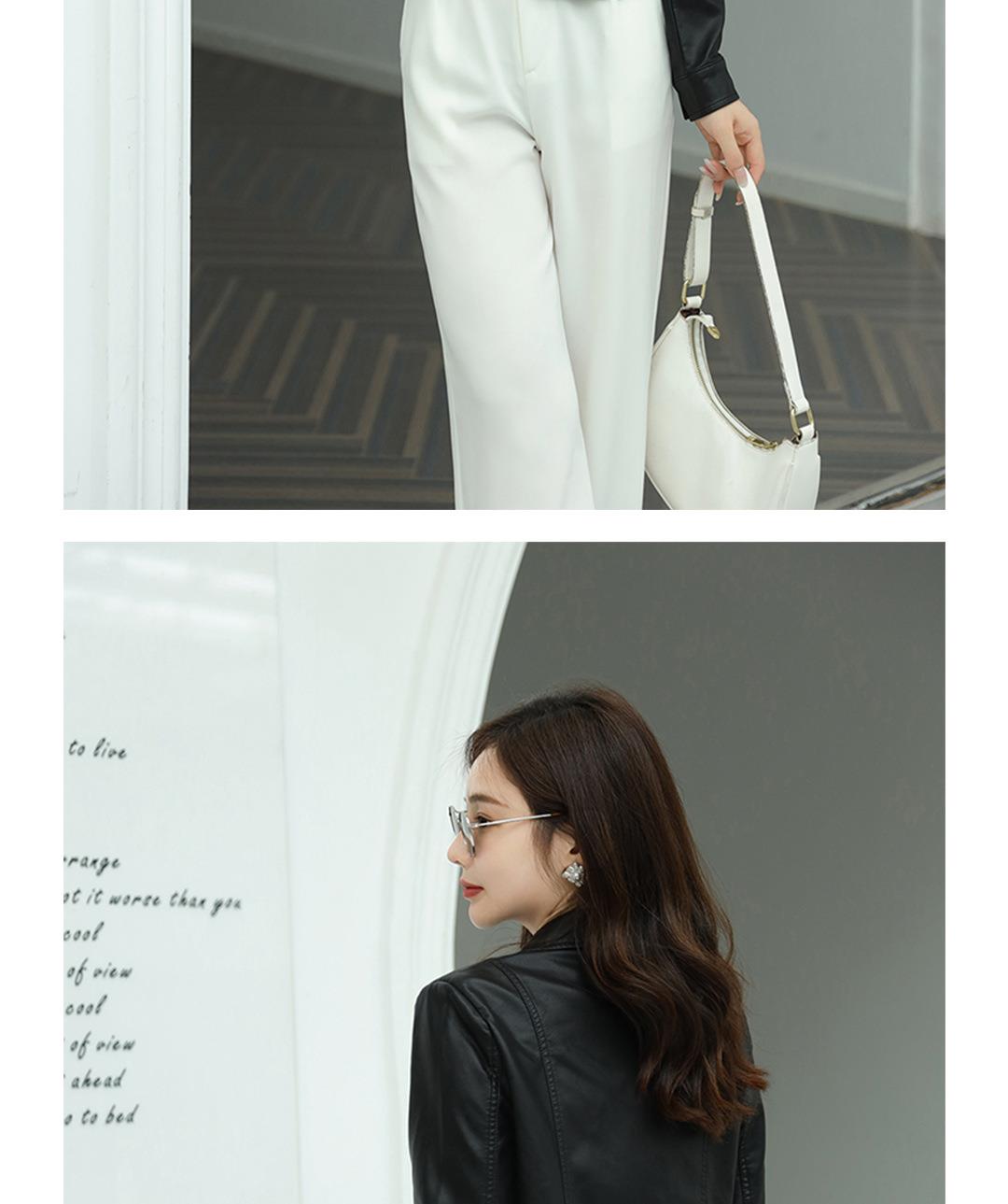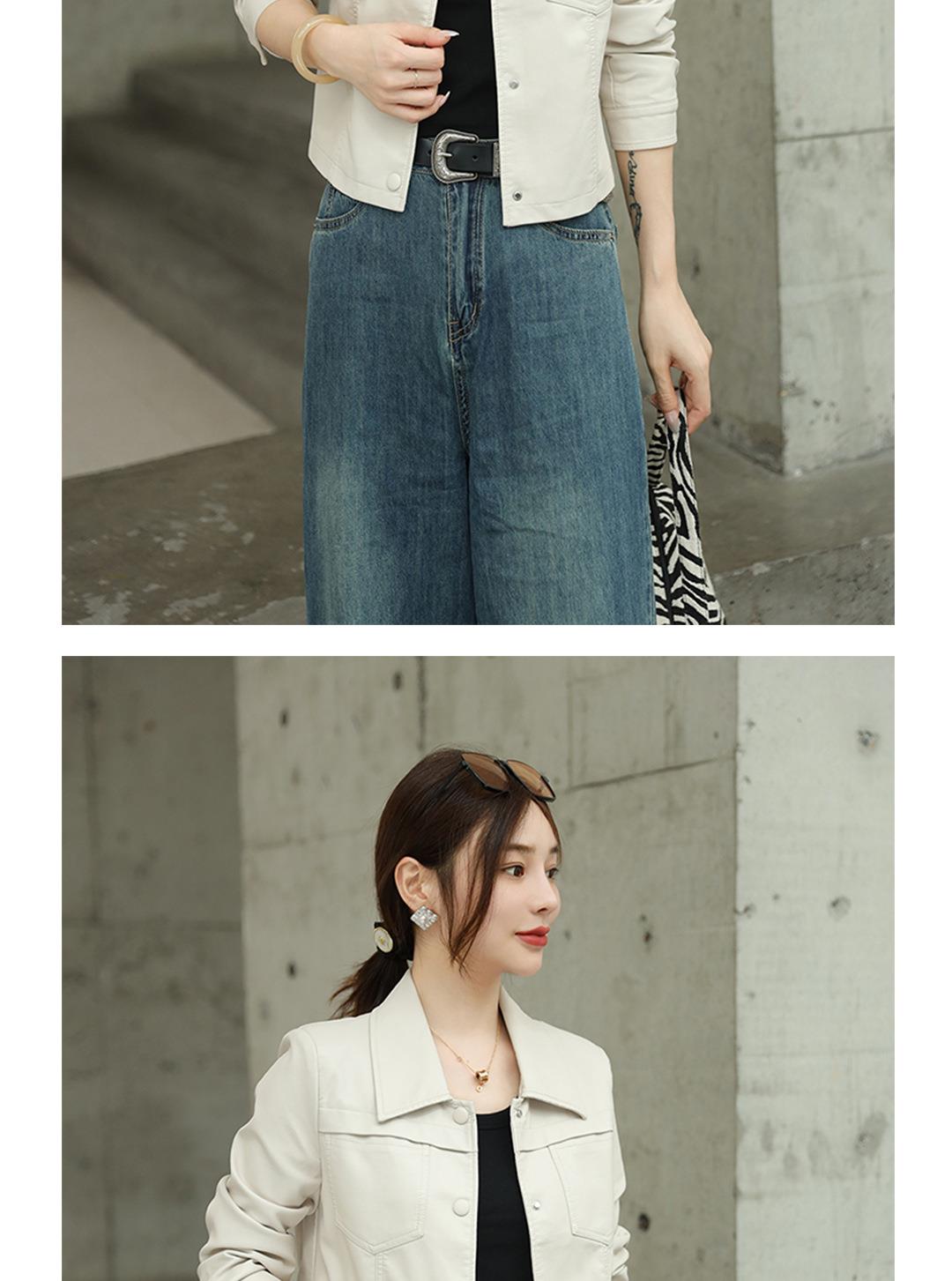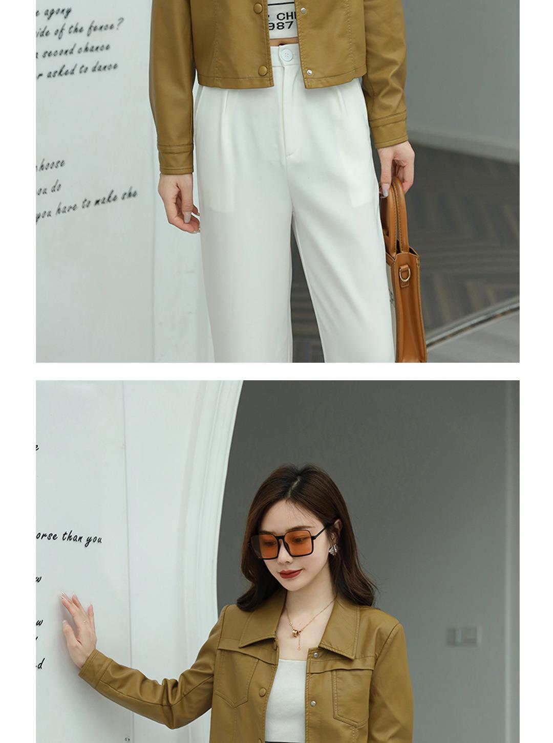 2023秋季新款皮衣外套女韩版翻领短款水洗PU皮衣修身皮夹克