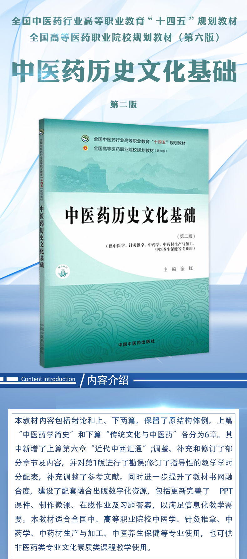 中医药历史文化基础 第2二版 全国中医药行业高等职业教育十四五规划教材 金虹 编 供中医学 针灸推拿 中药学 中药材生产与加工等