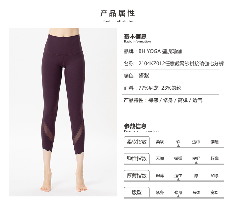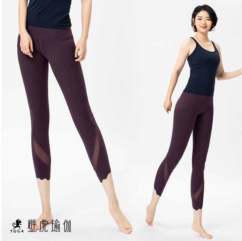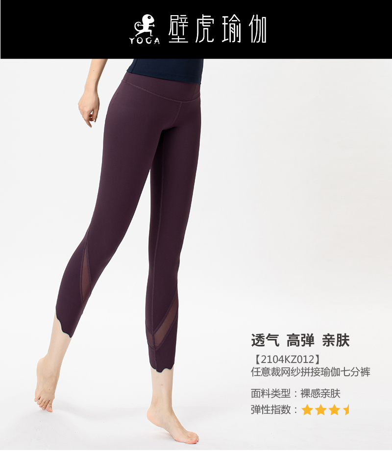 壁虎瑜伽《2104KZ012》任意裁网纱拼接瑜伽七分裤