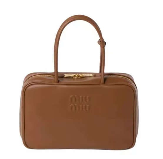 MIU MIU缪缪 Beau 镀金色五金配件正面压纹刻字徽标拉链开合 小牛皮 保龄球包单肩手提包 大号