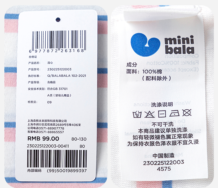 【99元任选3件】【商场同款】迷你巴拉女宝宝背心速干纯棉不闷汗婴儿萌趣打底