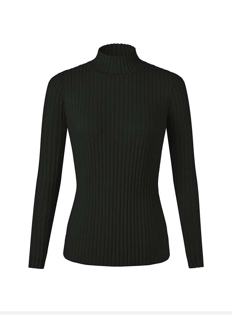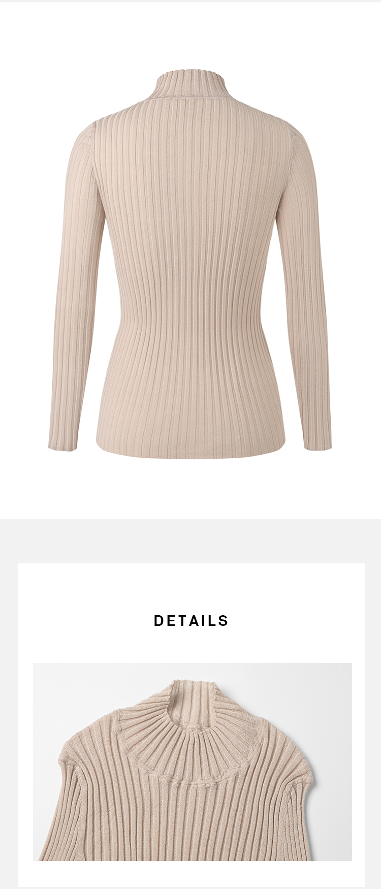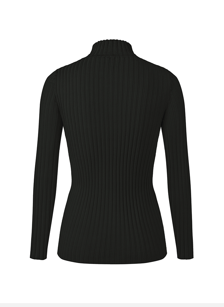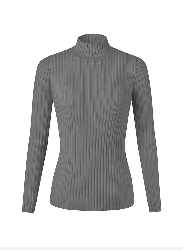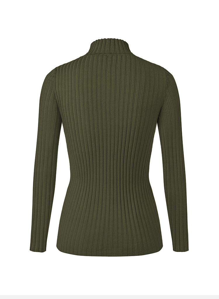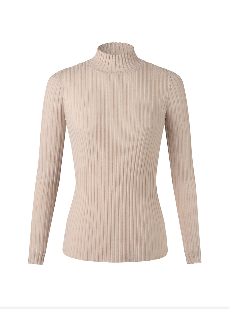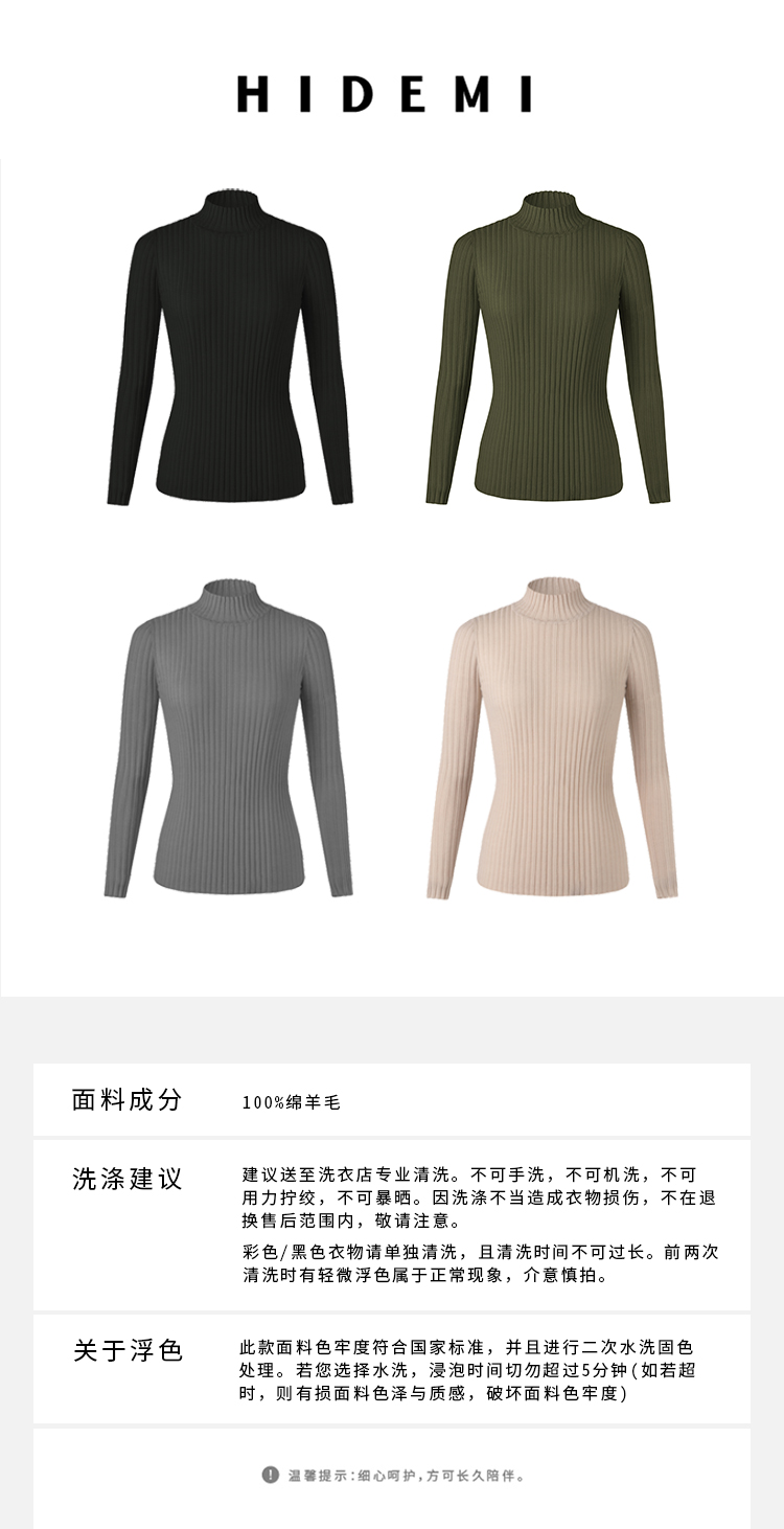 HIDEMI 美利奴极细羊毛坑条收身显瘦针织打底衫 浅米色/灰色/黑色/军绿色