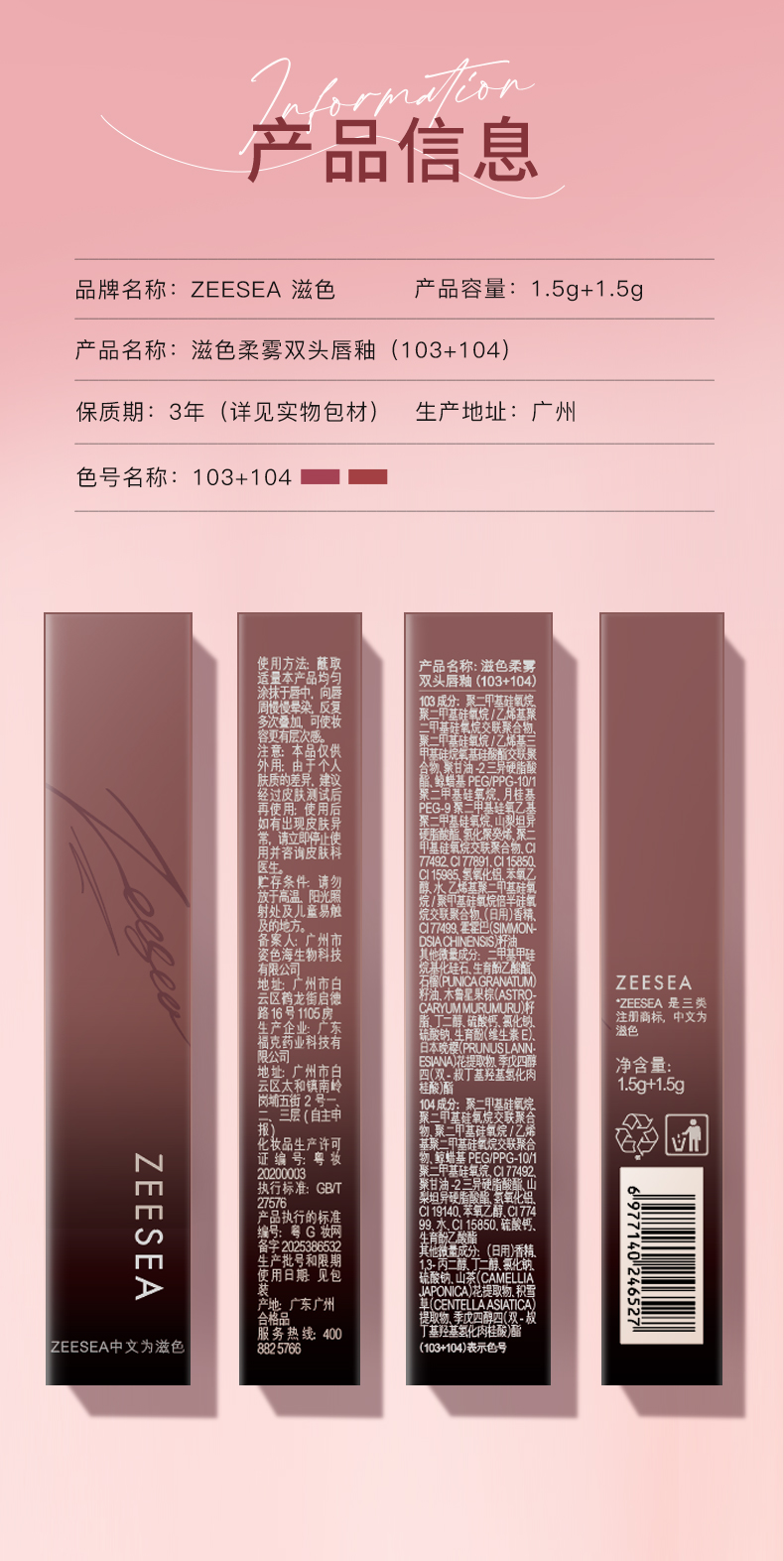 [双头唇釉]【到手价13.3元 | 39.9元任选3件】滋色柔雾双头唇釉(103+104)(任选3件,拍下立减)