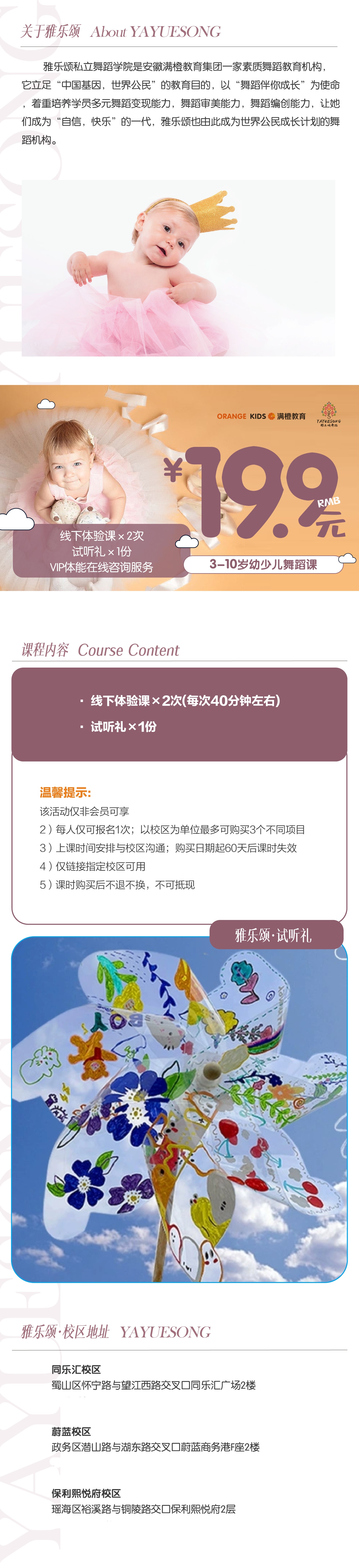 「雅乐颂舞蹈课2节+到店赠涂鸦风车」培养孩子多元舞蹈变现能力,适合3—10岁儿童!