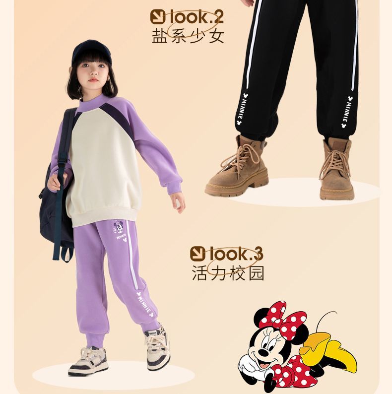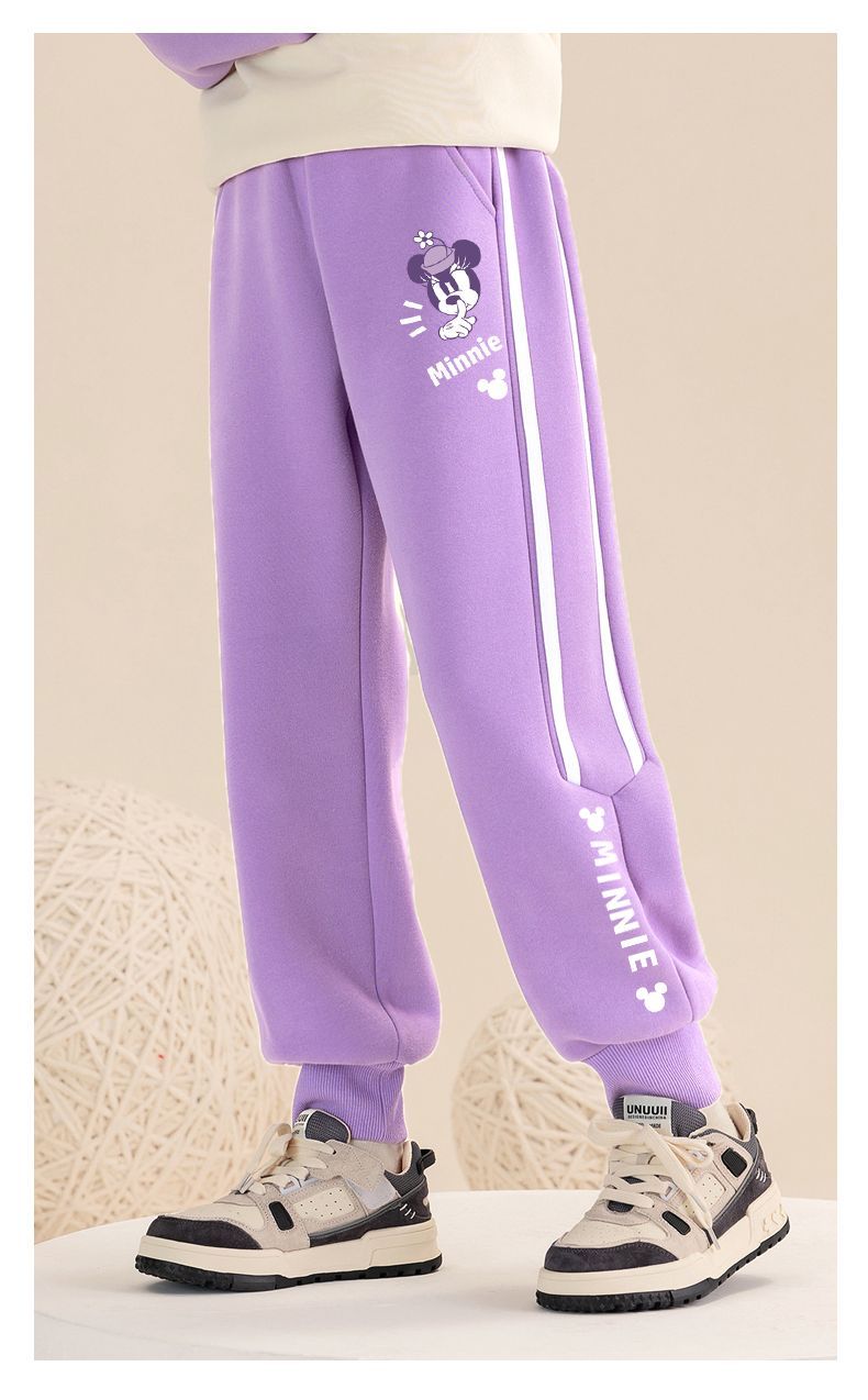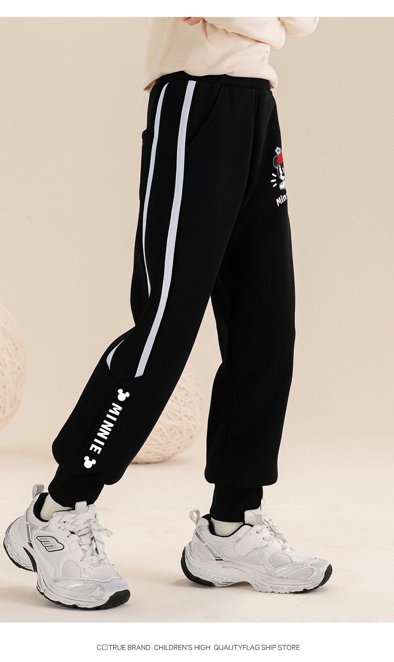 迪士尼女童加绒裤子一体绒外穿2024新款女大童运动裤冬季加厚卫裤