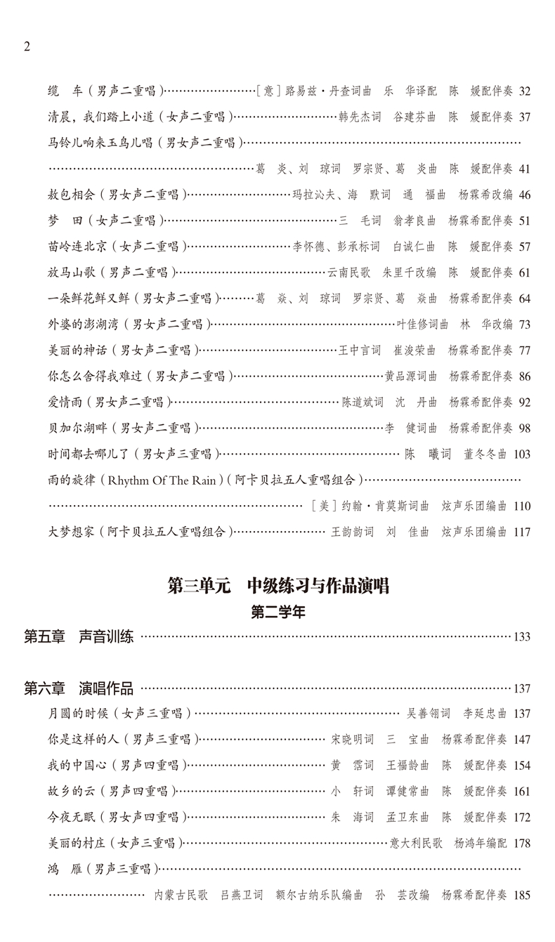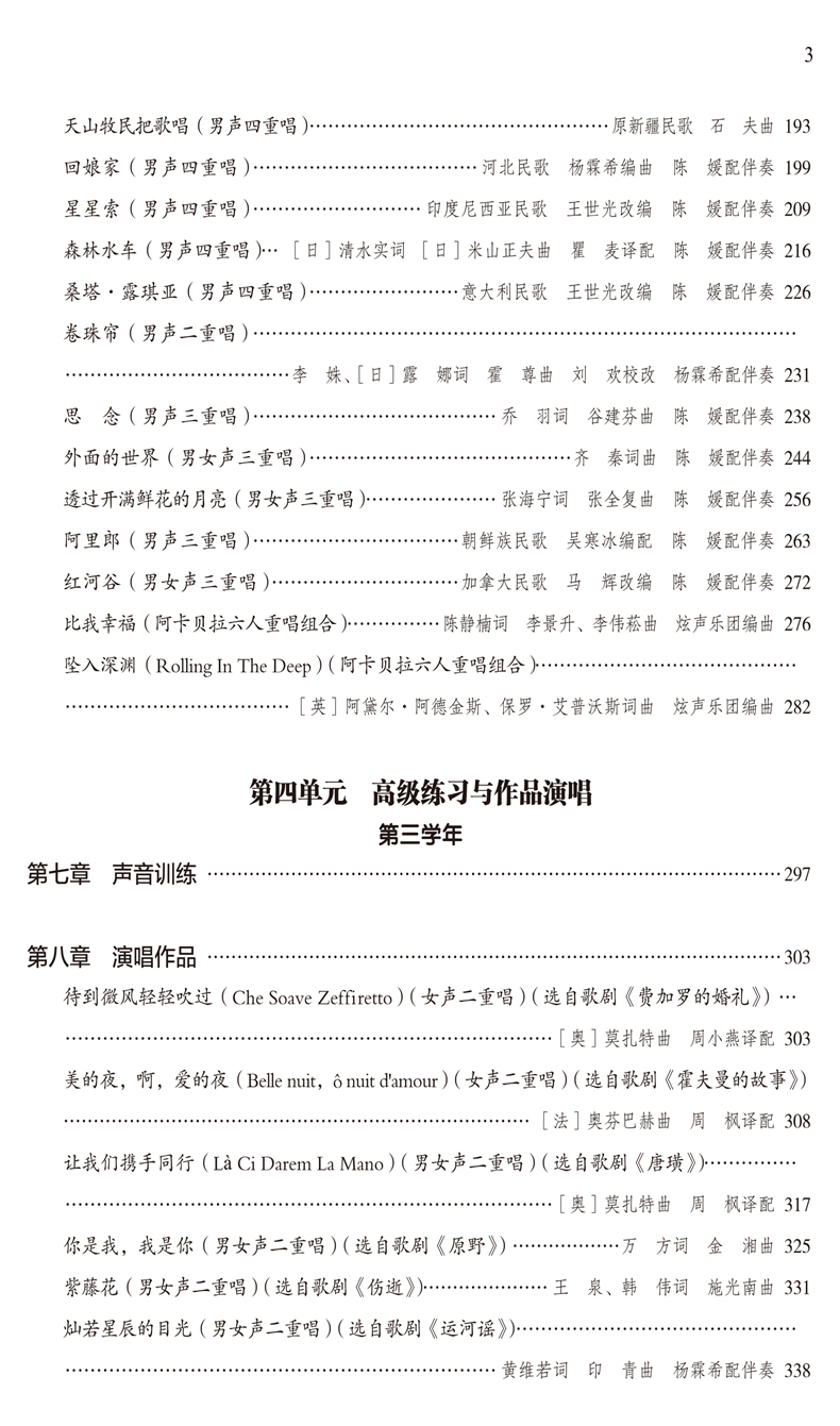 本卷教材以遵循声乐教育规律为宗旨,以学生身心发展为依据,以培养高素质、高技能的实用性音乐表演人才为目的,在编写过程中突出专业性和实用性,强调理论与实践相结合,尤其重视实践教学,尽量做到深入浅出。此次五卷系列教材的出版,能很好地提高艺术高职院校学生的实际应用能力,增强其就业竞争力及岗位适应能力,并弥补了全国艺术职业院校声乐专业暂缺规范、系统教材的遗憾,对实现高等艺术职业教育的培养目标具有积极地促进作用。