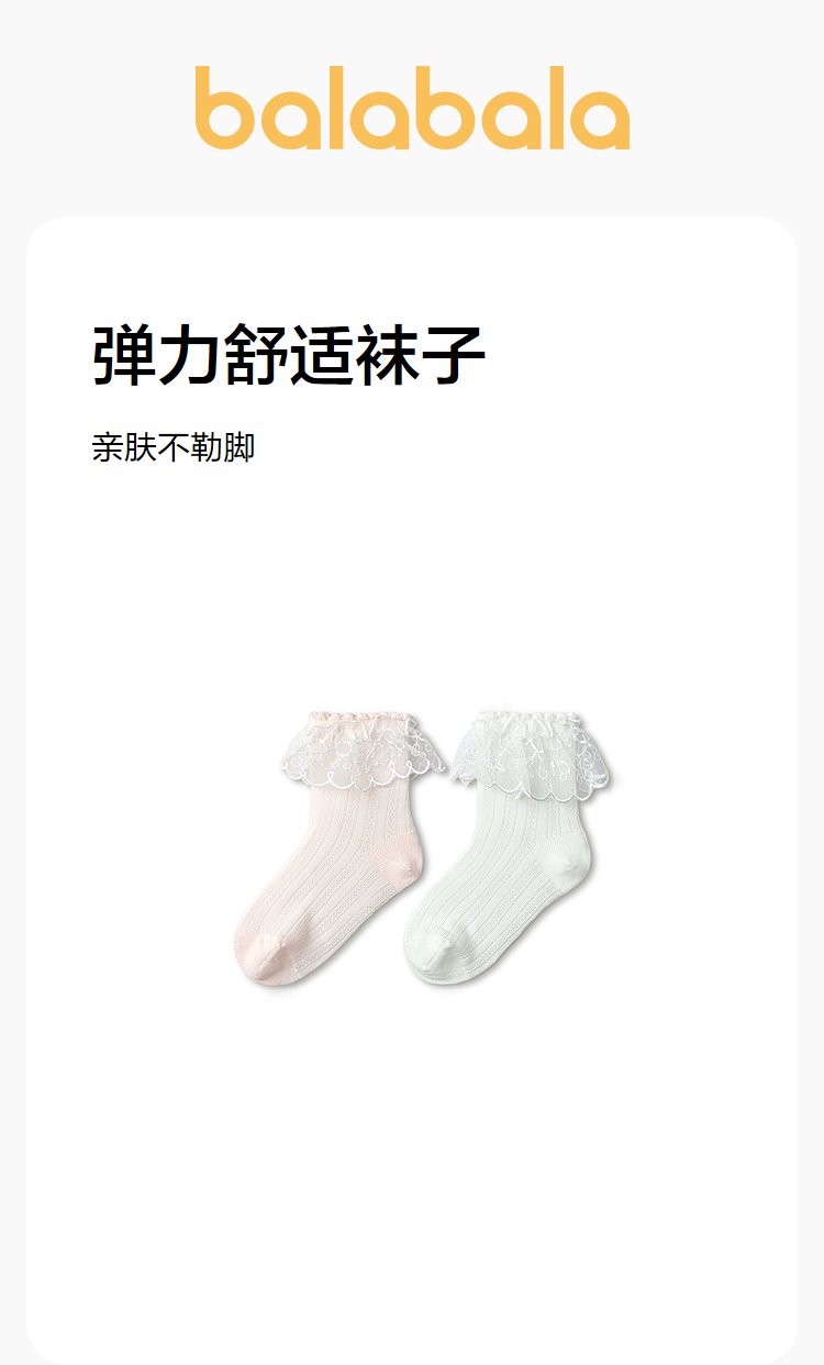 【商场同款】巴拉巴拉宝宝袜子夏新款网眼透气薄短袜公主袜两双装