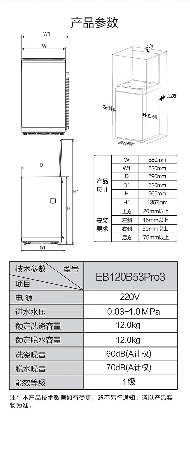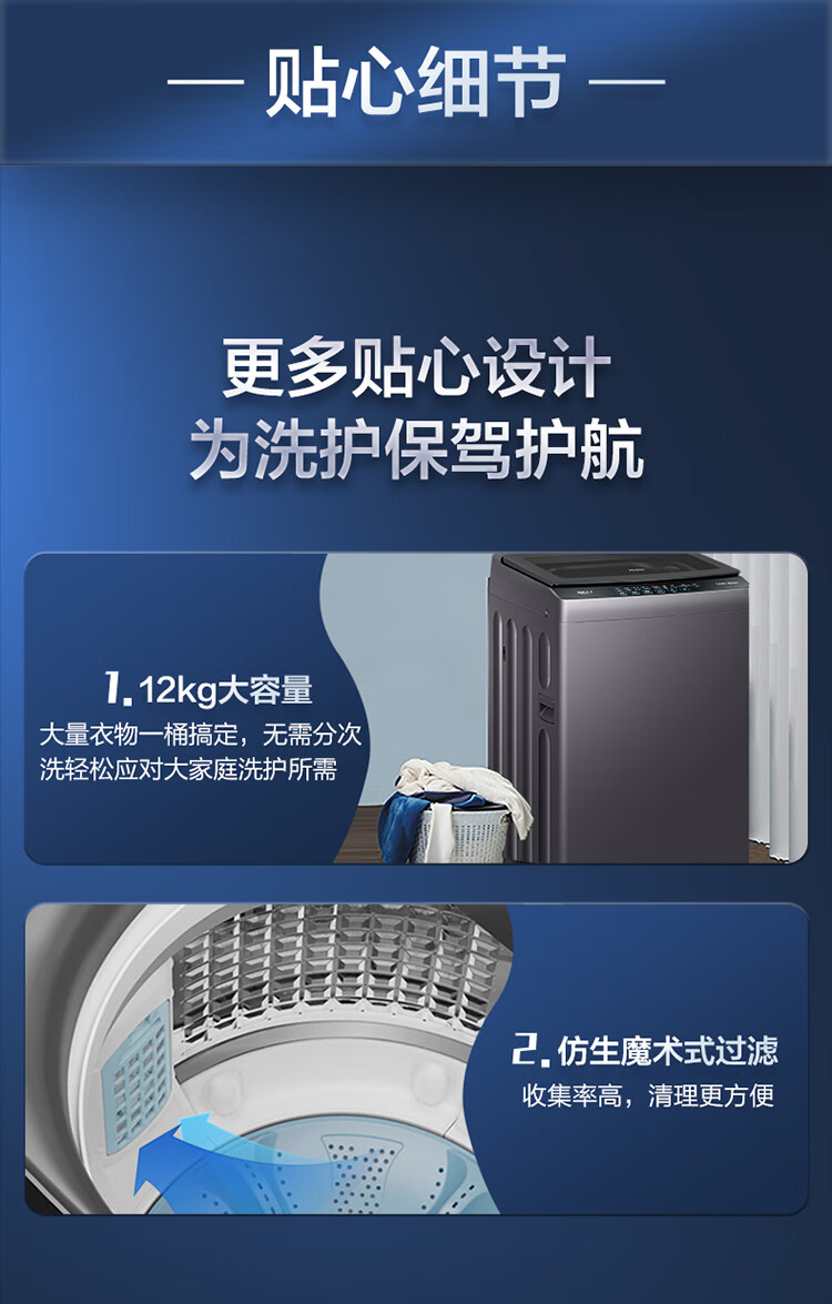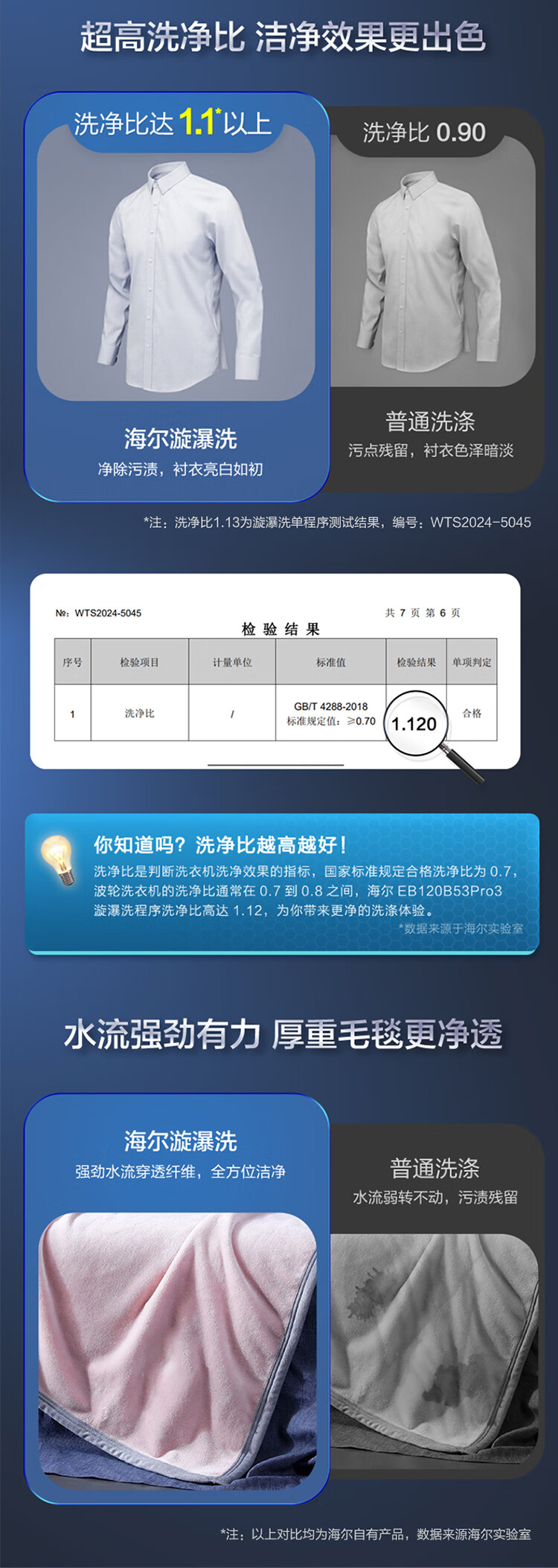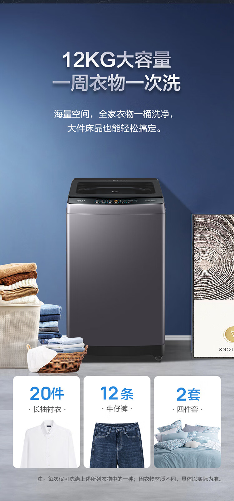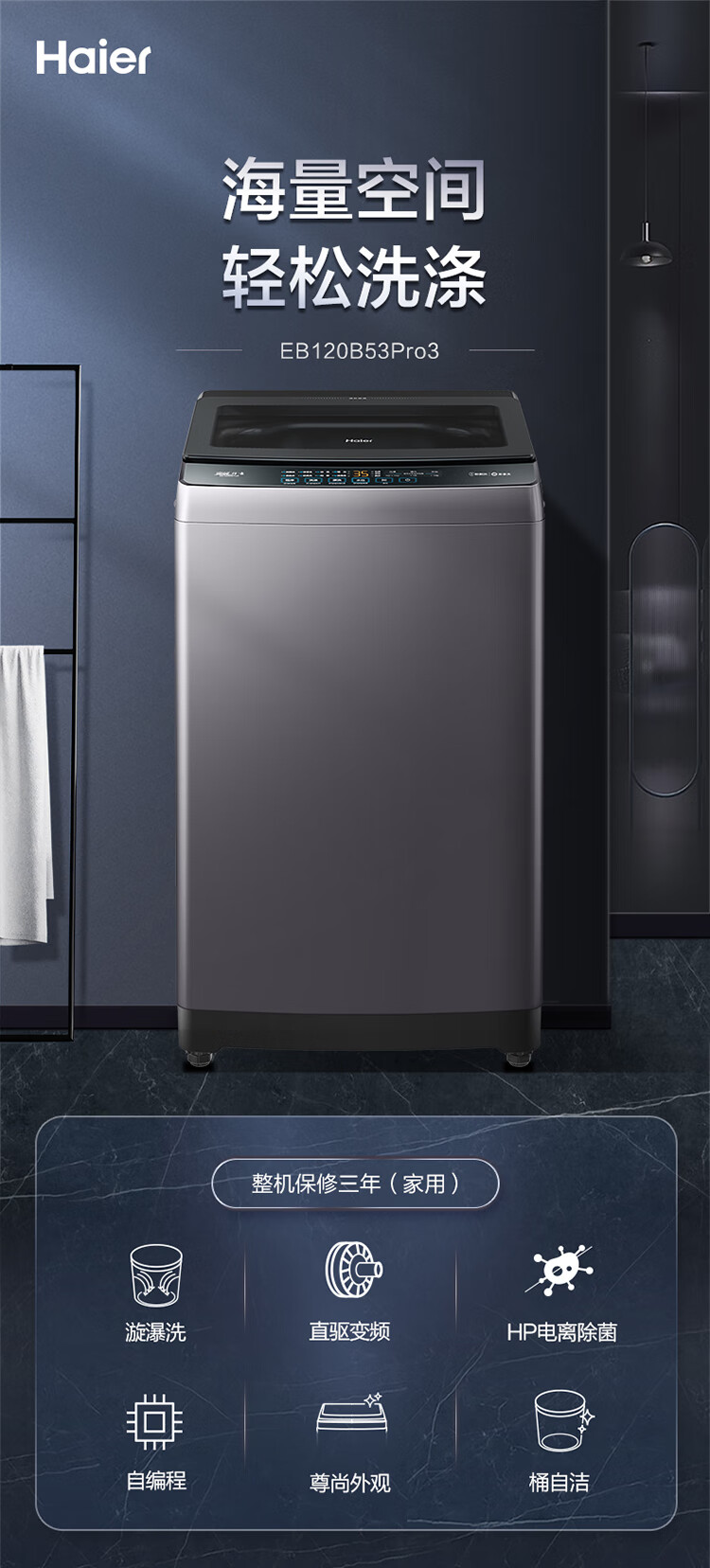 海尔12kg大容量 波轮洗衣机 直驱变频 强效漩瀑洗 洗净比可达1.1 EB120B53Pro3