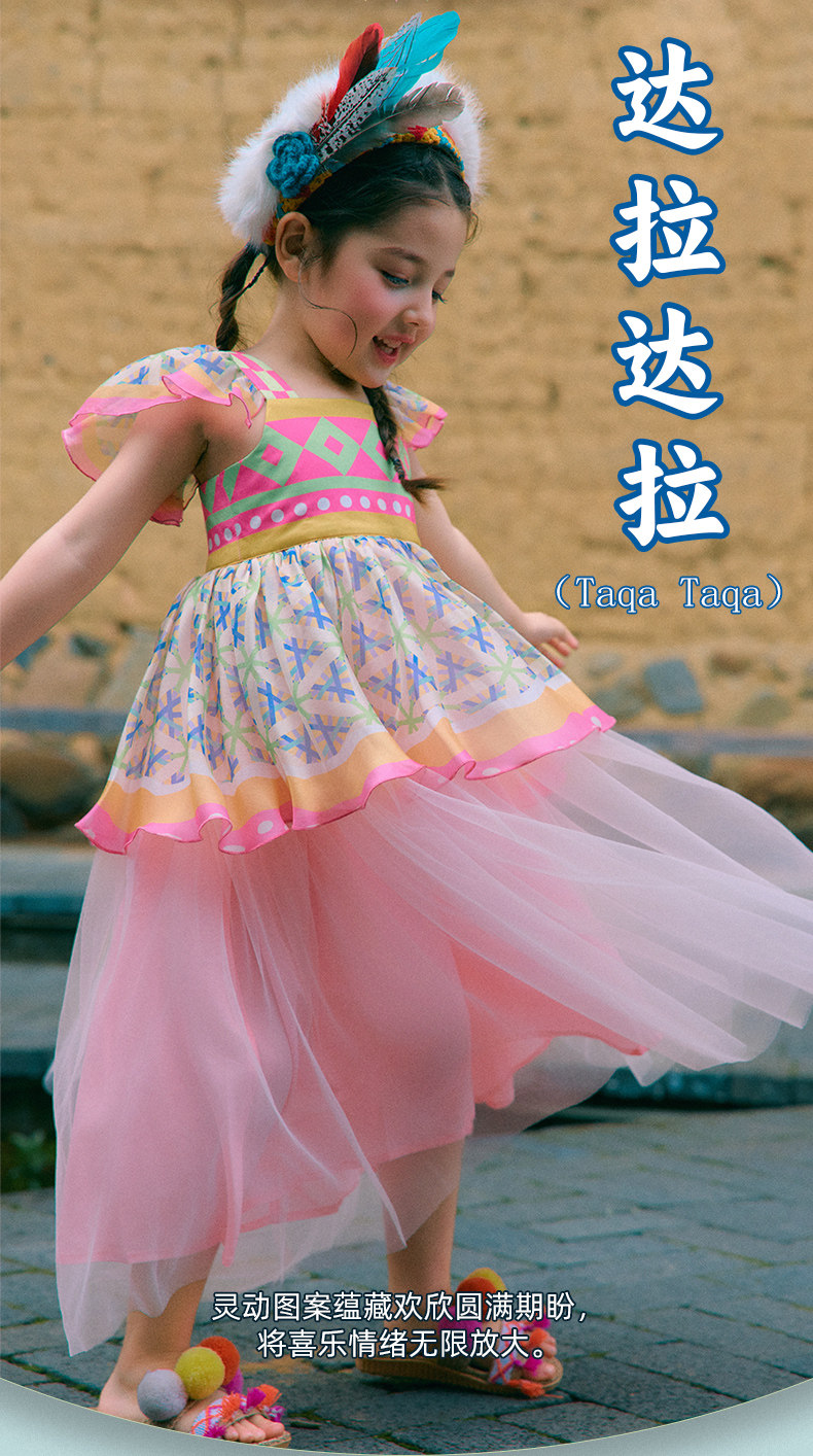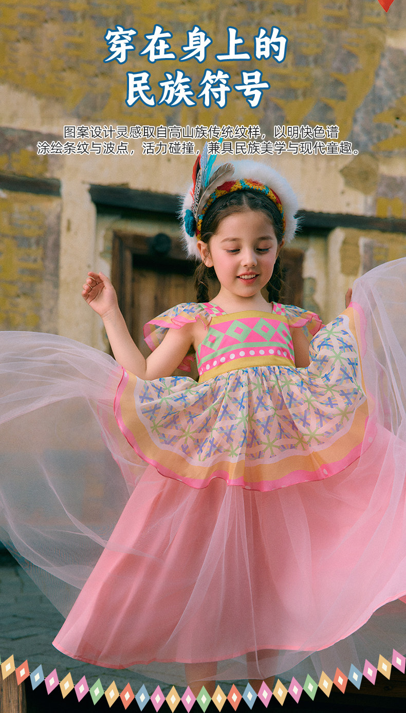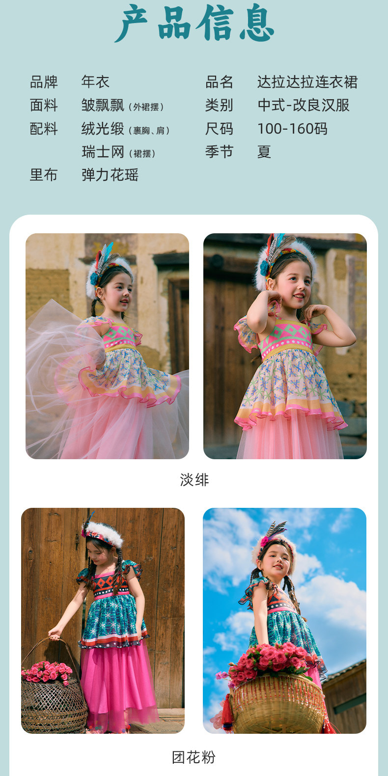 年衣童装儿童连衣裙2026年新款夏装民族风小飞袖中大童演出服长裙