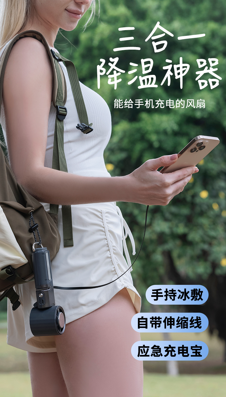 LORO高速风扇 ,充电宝+高效冷风,三合一高速风扇