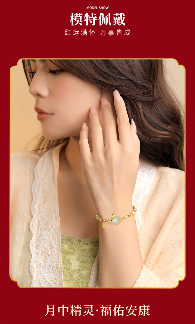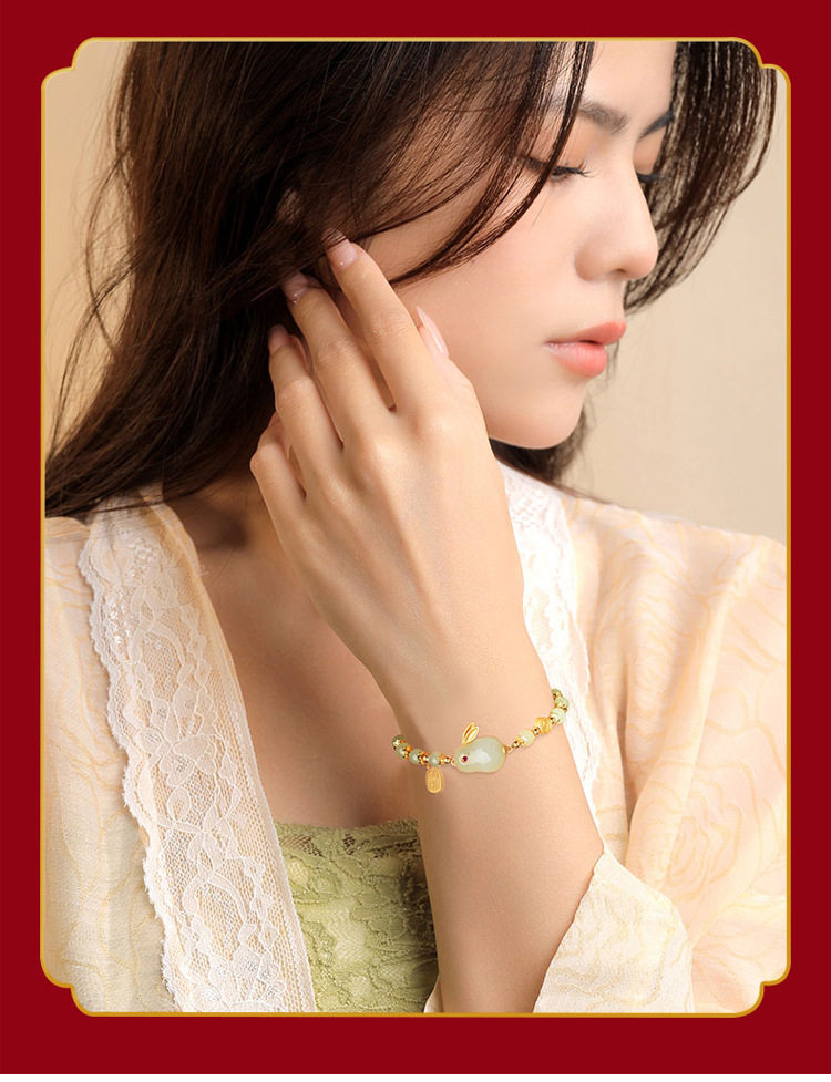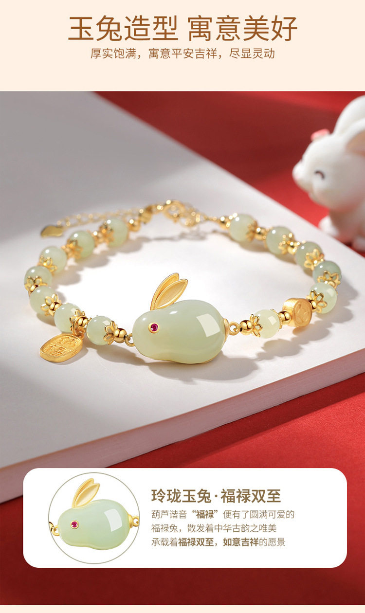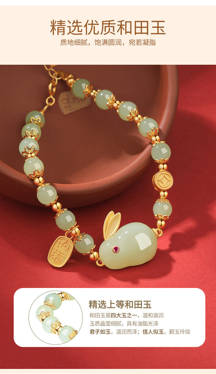 招财纳福玉兔和田玉手链女生款轻奢小众女士福牌手串手镯生日礼物