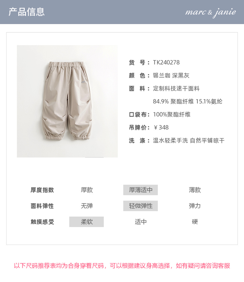 【吸湿速干】马克珍妮男童休闲速干裤降落伞裤2024春装新款240278