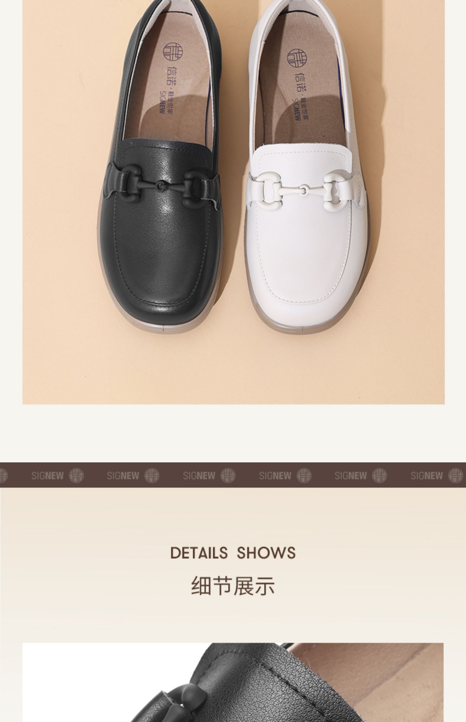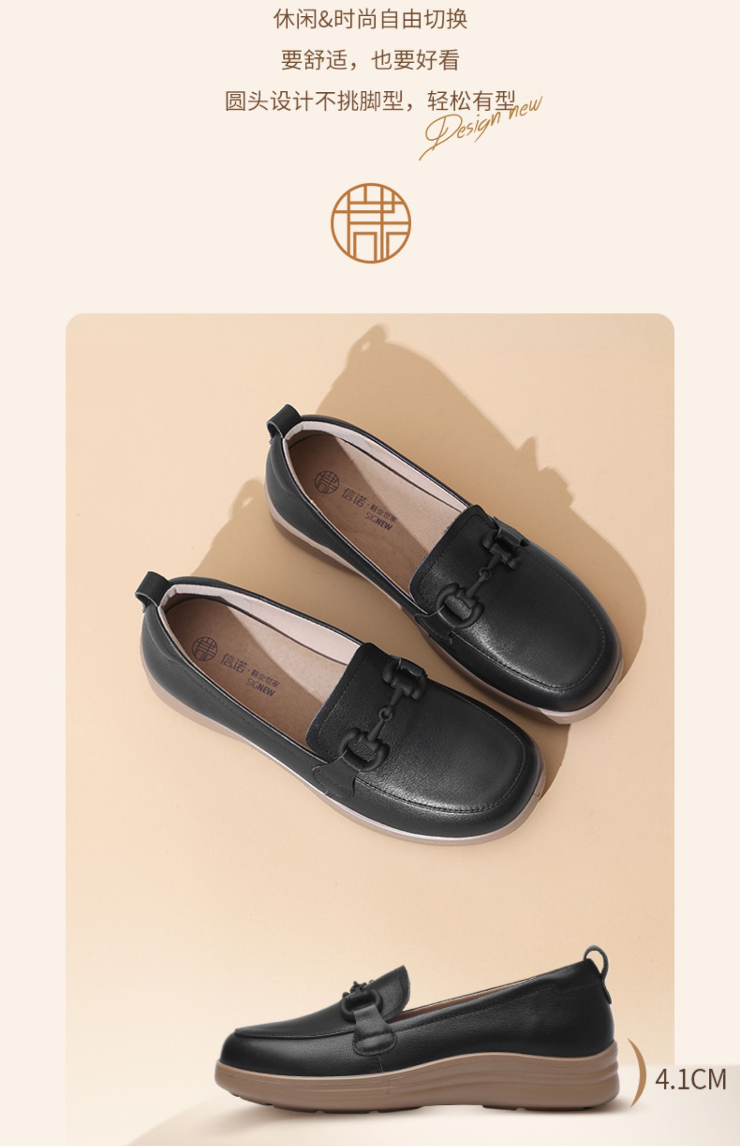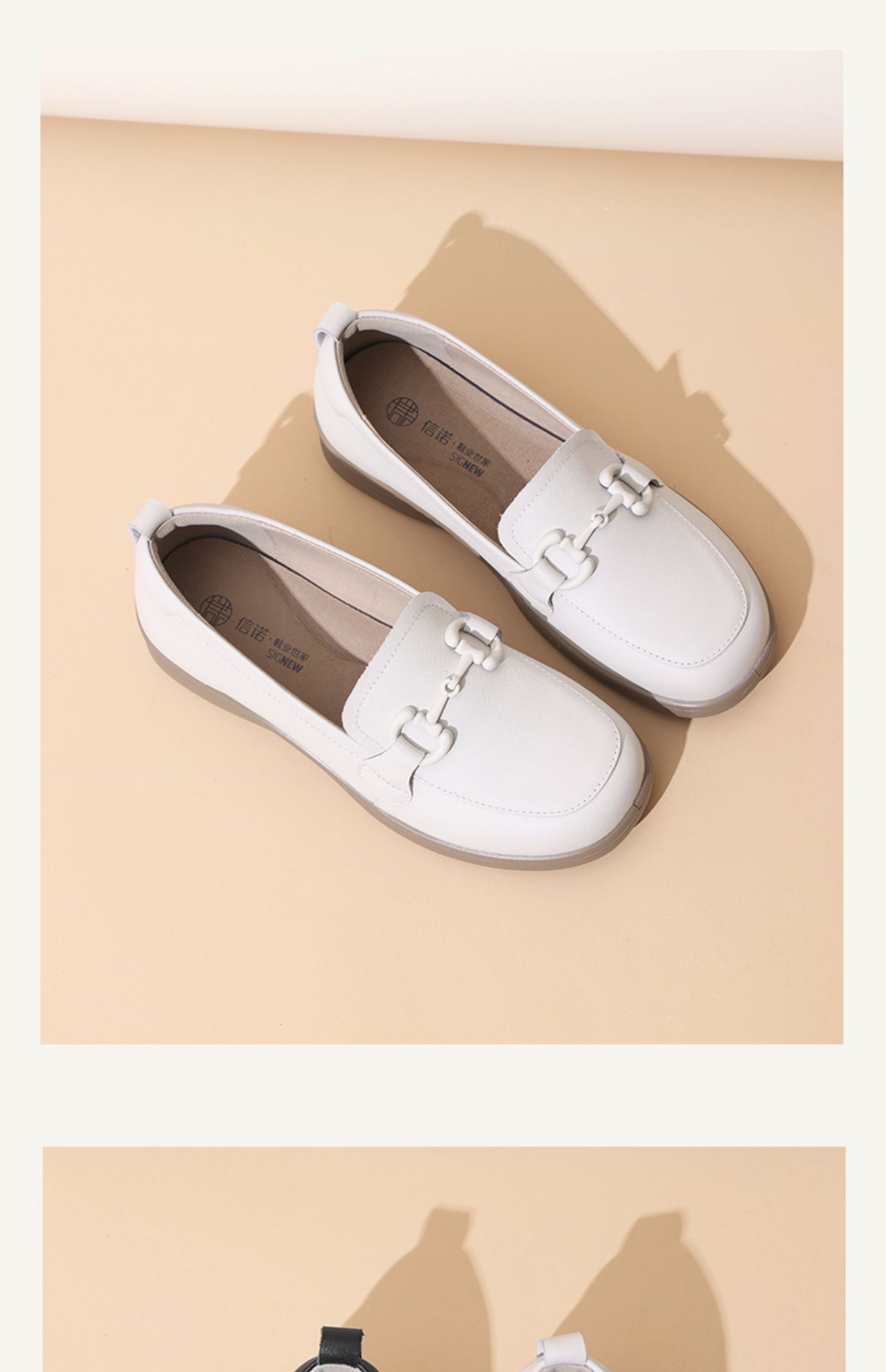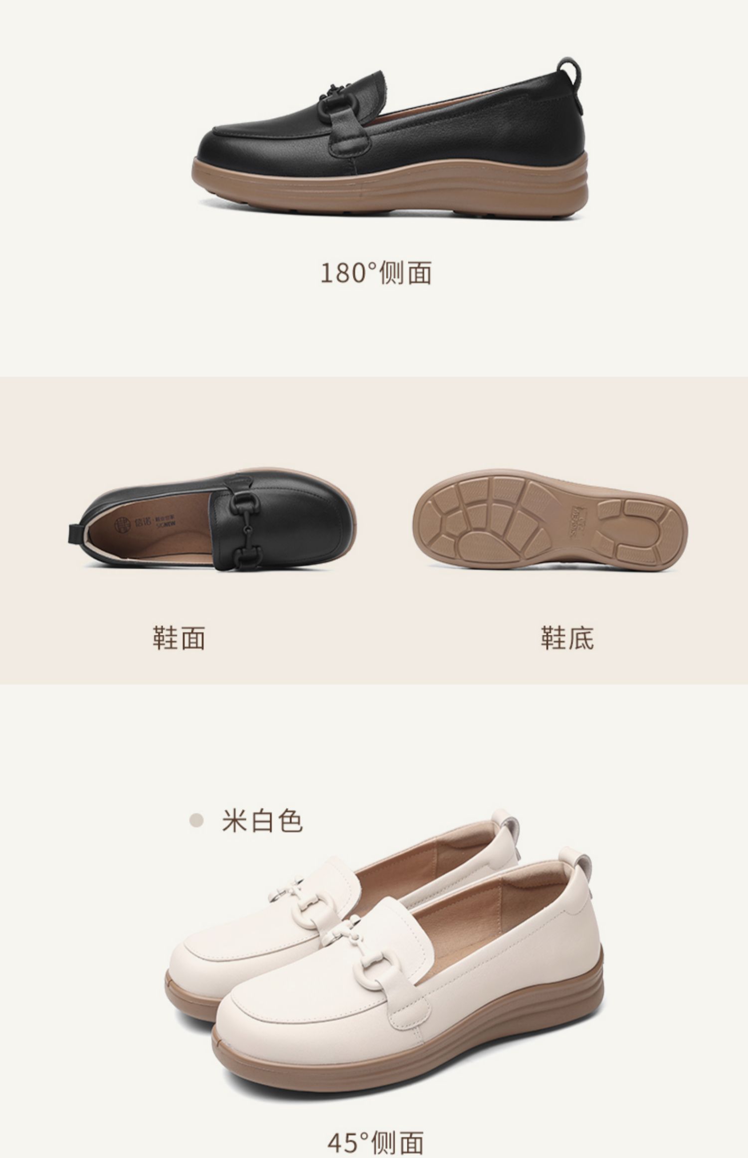 信诺超软乐福鞋女士2025新款春季真皮妈妈鞋中老年舒适不累脚单鞋5C8166-7