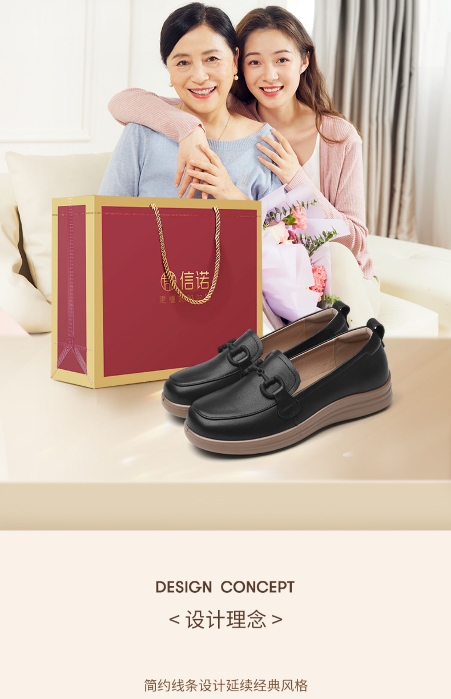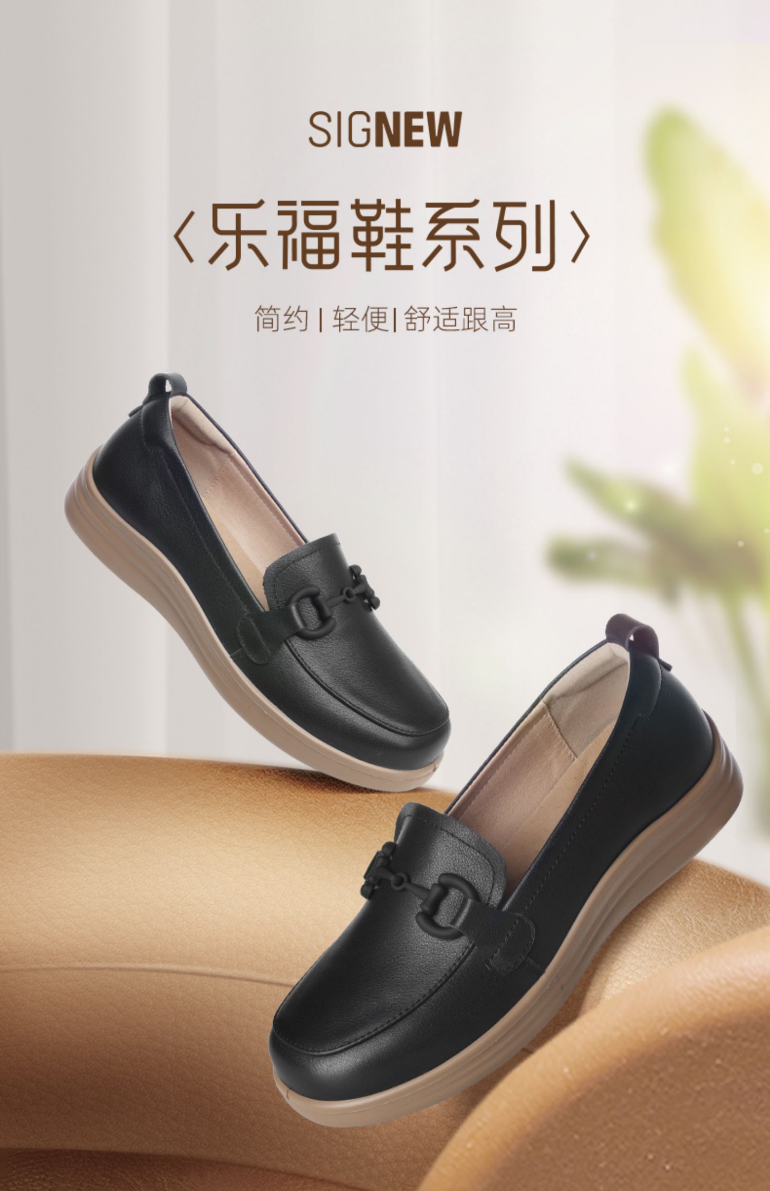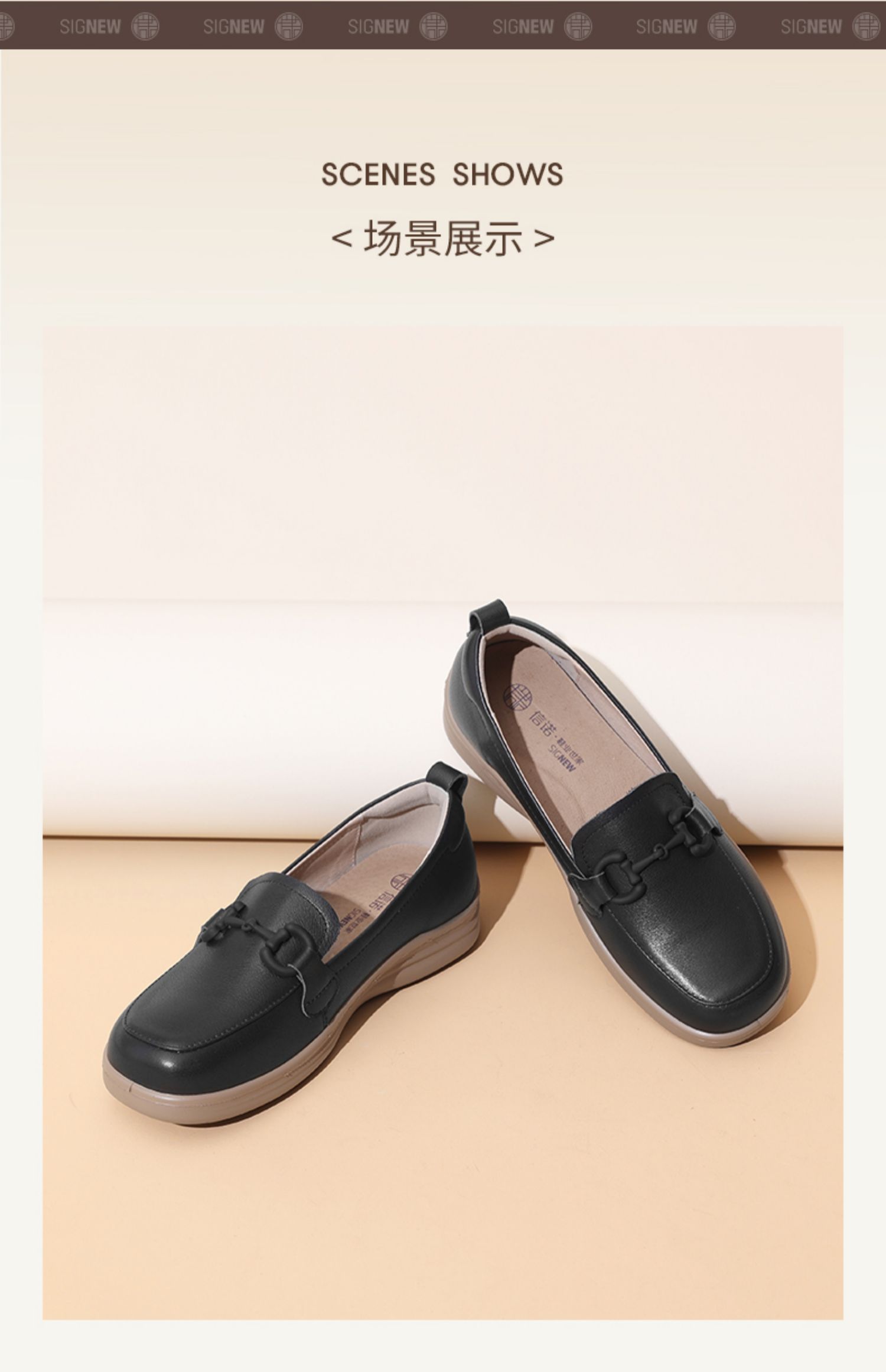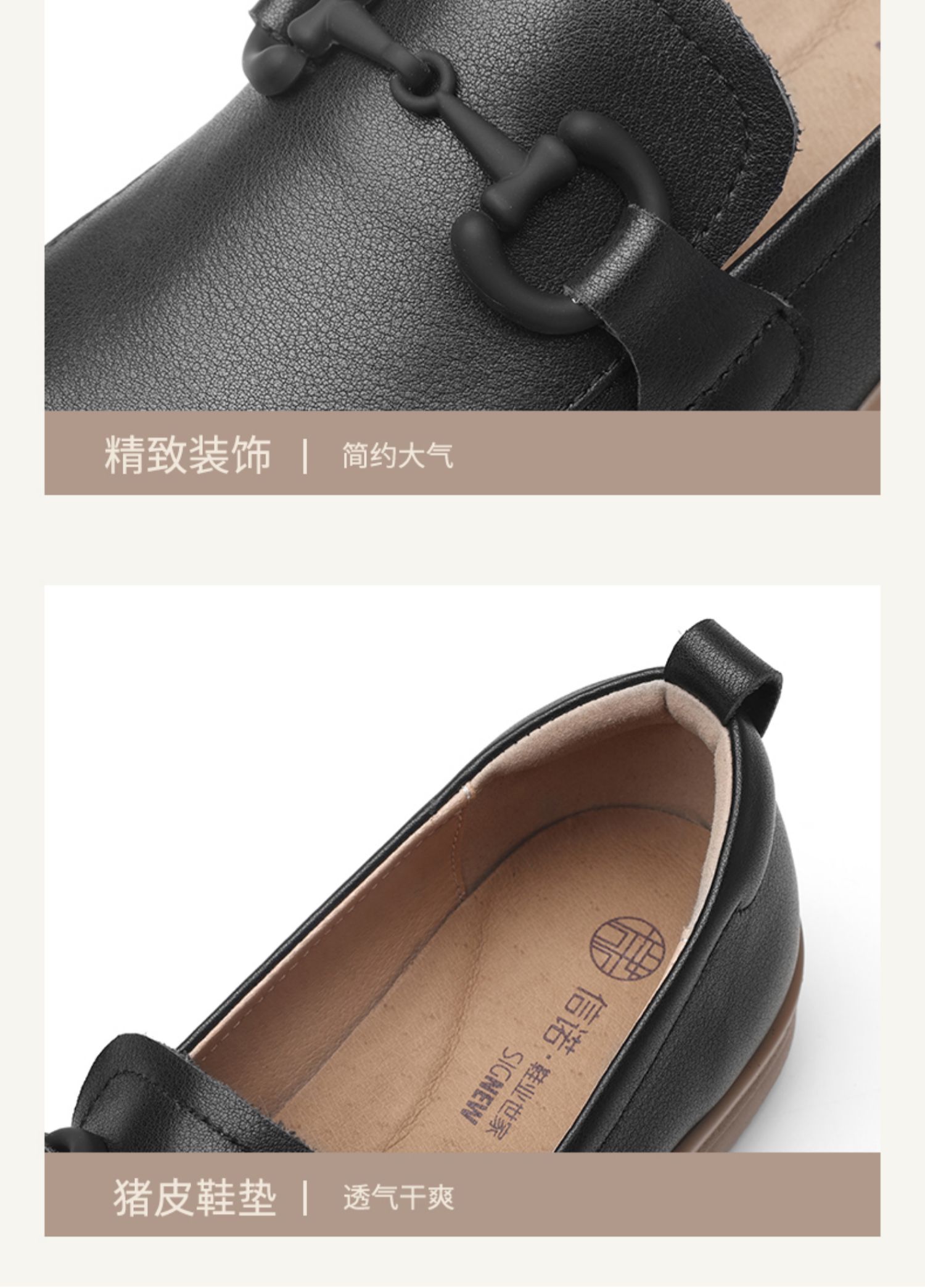 信诺超软乐福鞋女士2025新款春季真皮妈妈鞋中老年舒适不累脚单鞋5C8166-7