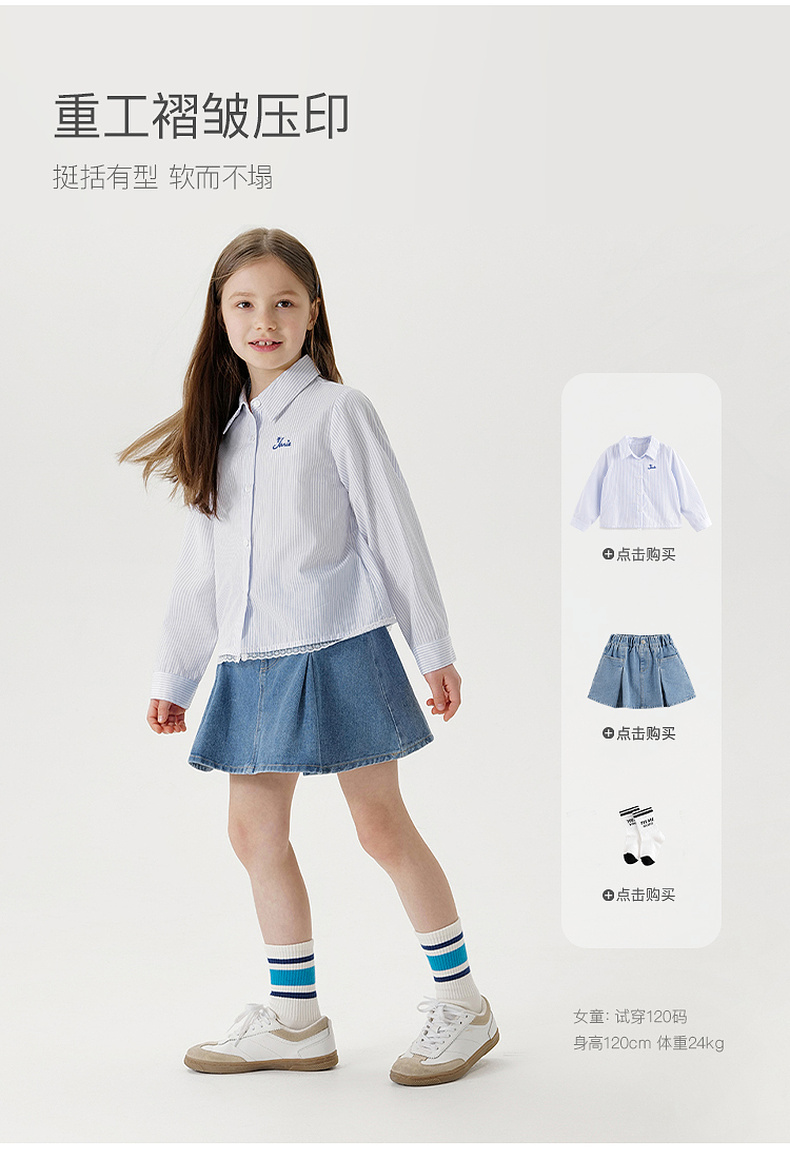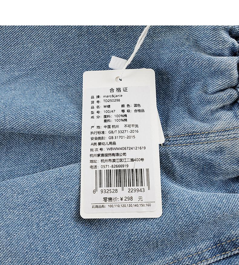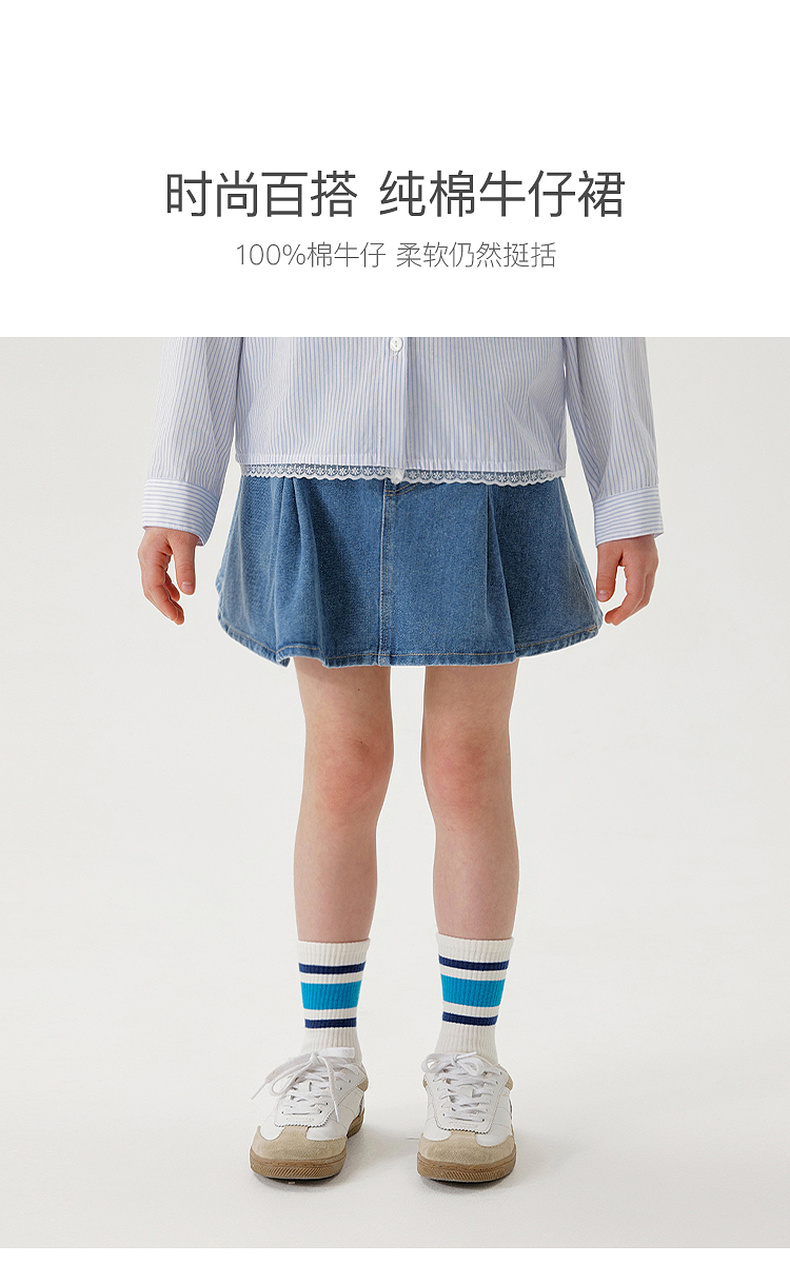 马克珍妮女童时尚牛仔百褶裙 儿童百搭短裙半身裙春夏新款250298